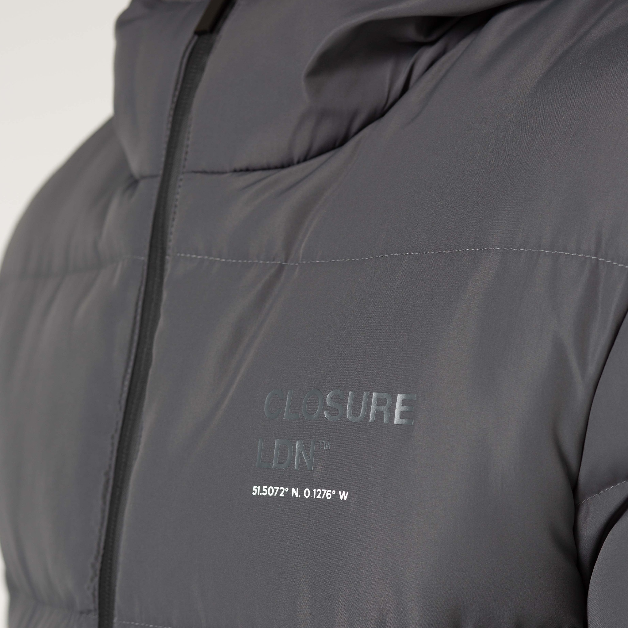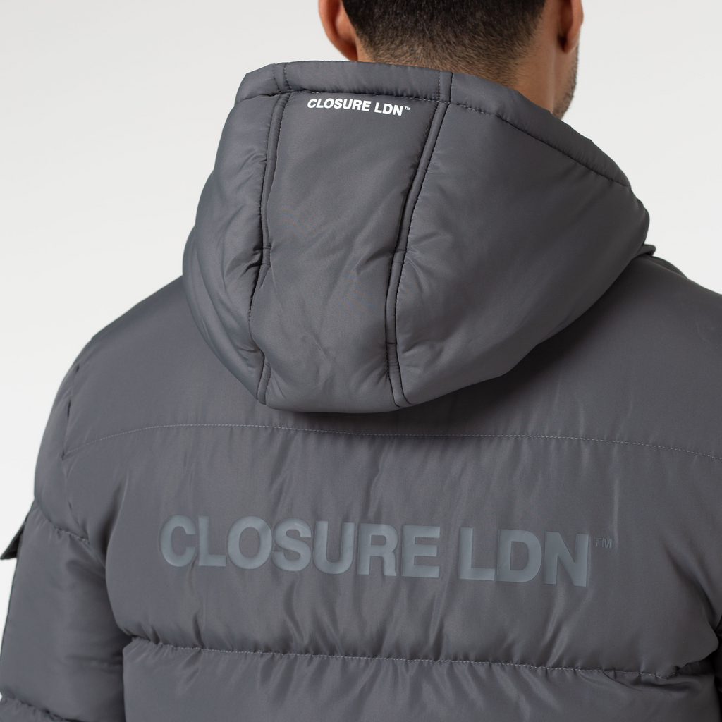 Branded LDN Pocket Puffer Jacket | Charcoal