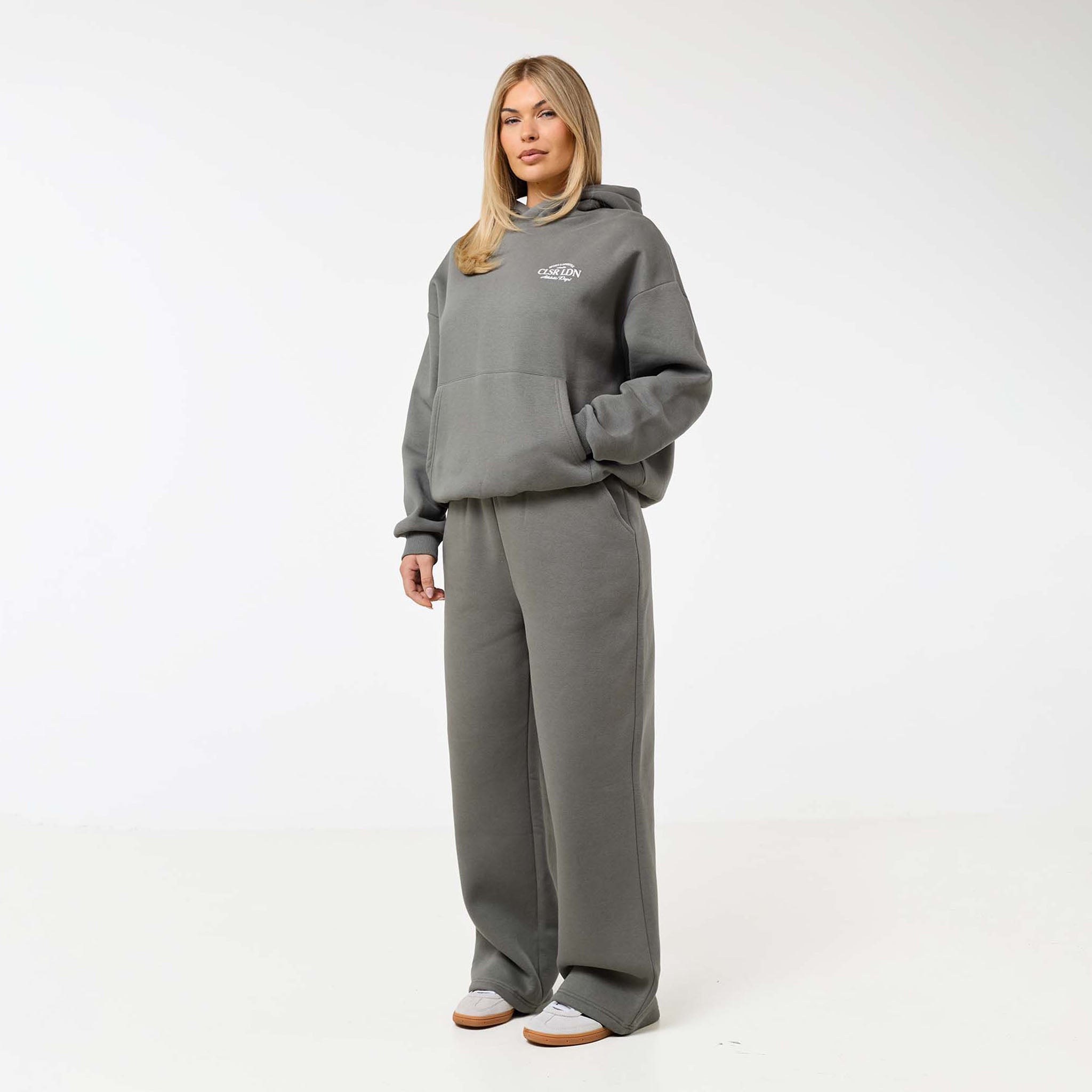 Elevate your casual wear with the Athletic Department Tracksuit in a subtle olive shade. This two-piece set blends modern style with effortless comfort for lounging in style. The pullover hoodie features our signature logo on the chest and back, with ribbed cuffs and hem for a clean finish. Paired with the relaxed fit open hem joggers crafted from substantial 300gsm brushed fleece, this tracksuit is designed to be worn anywhere. The joggers have a stylish cut-and-sew waistband and side slant pockets, making them both functional and fashionable. Wear them together for a coordinated look or mix and match for versatile styling.