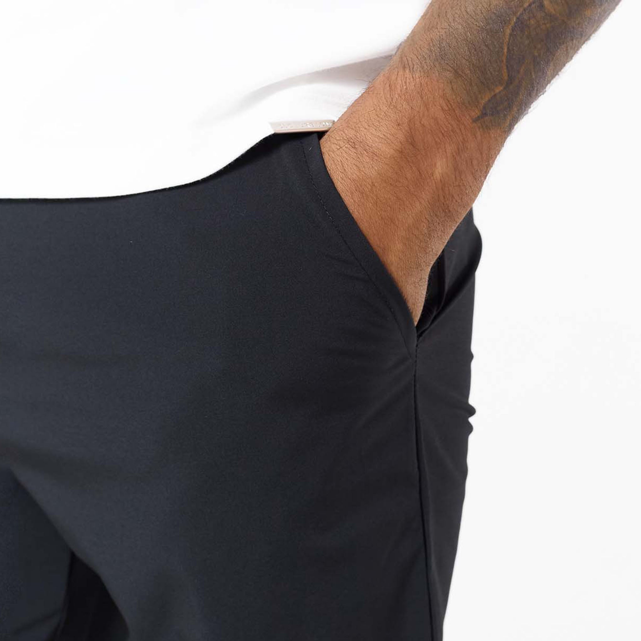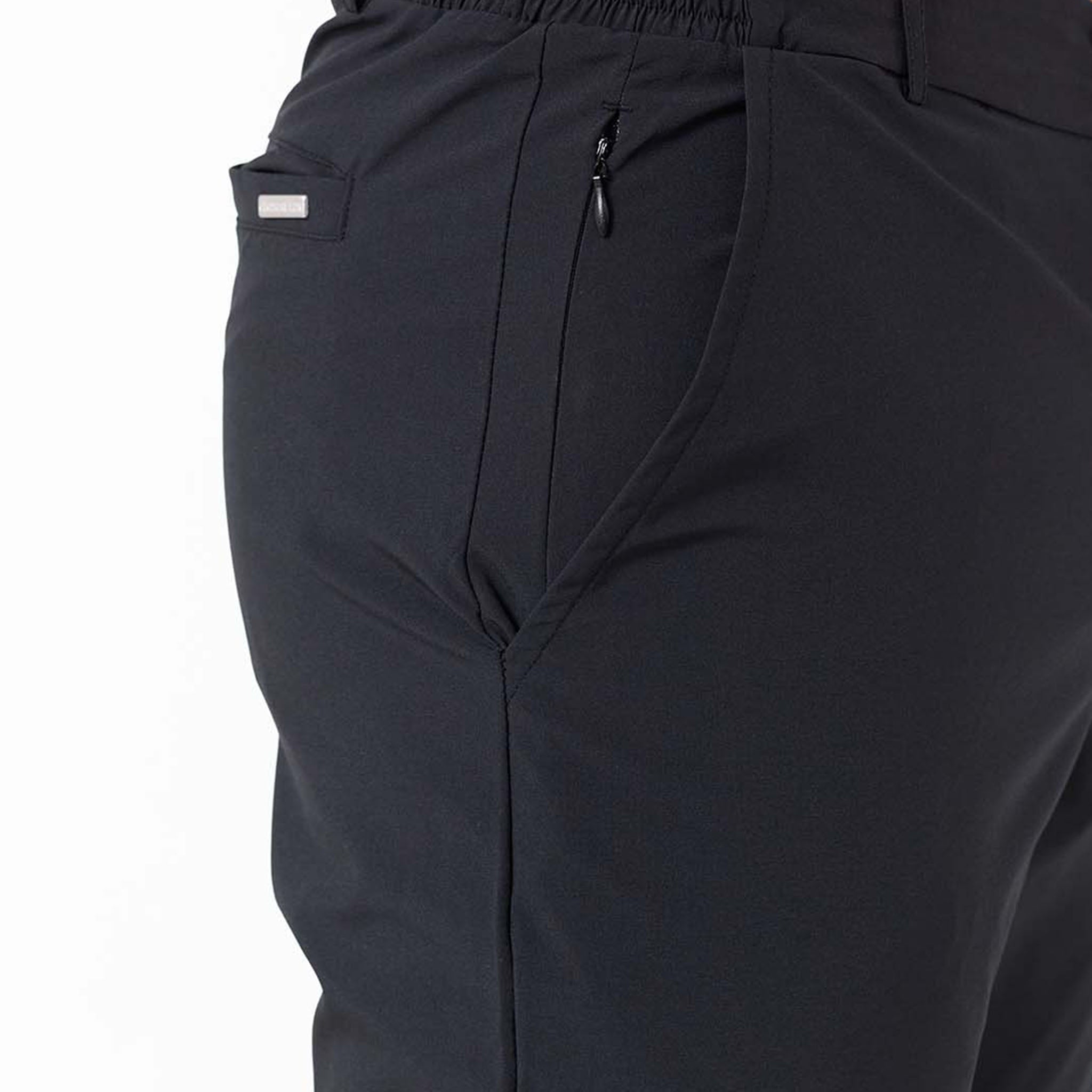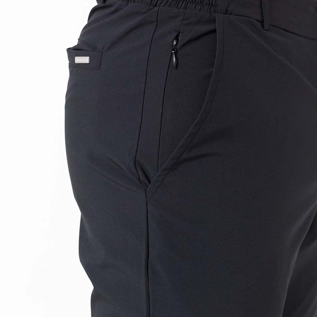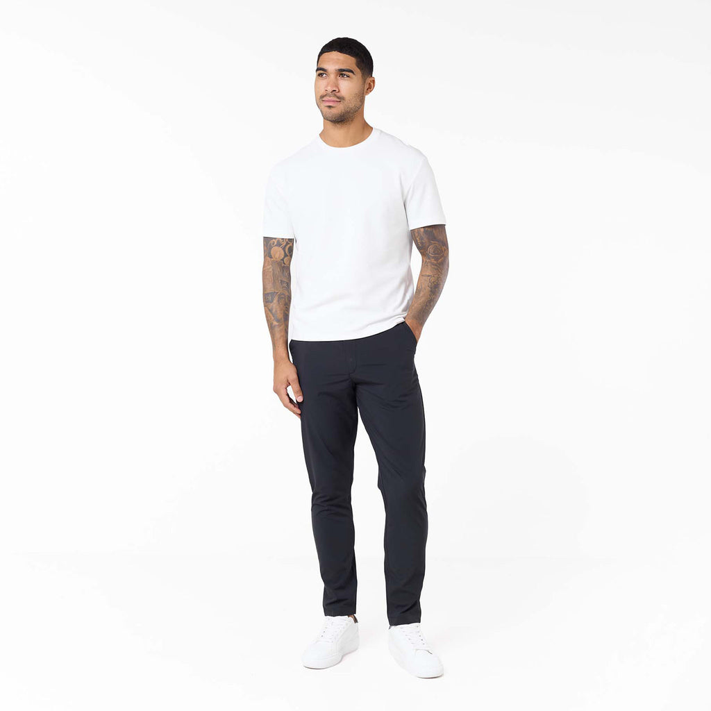 Discover the new staple Smart Tech Pant in classic black, these smart chino trousers seamlessly blend style and comfort. An open hem and self-turn hem allow you to create a perfectly tailored fit, while the front slanted pockets are enhanced with a clean, single stitch for a sharp look. For added security, a concealed pocket with an autolock keeps your essentials safe. The elasticated waistband panel ensures all-day comfort, and classic details like belt loops and a zip fly stitch provide a polished finish. With rear welt pockets and a branded metal badge, these trousers are the ideal choice for any occasion where you need to look and feel your best. Seamlessly transition between smart and casual looks, as their versatile design pairs effortlessly with everything from a structured overshirt or smart polo to a simple tee and trainers.