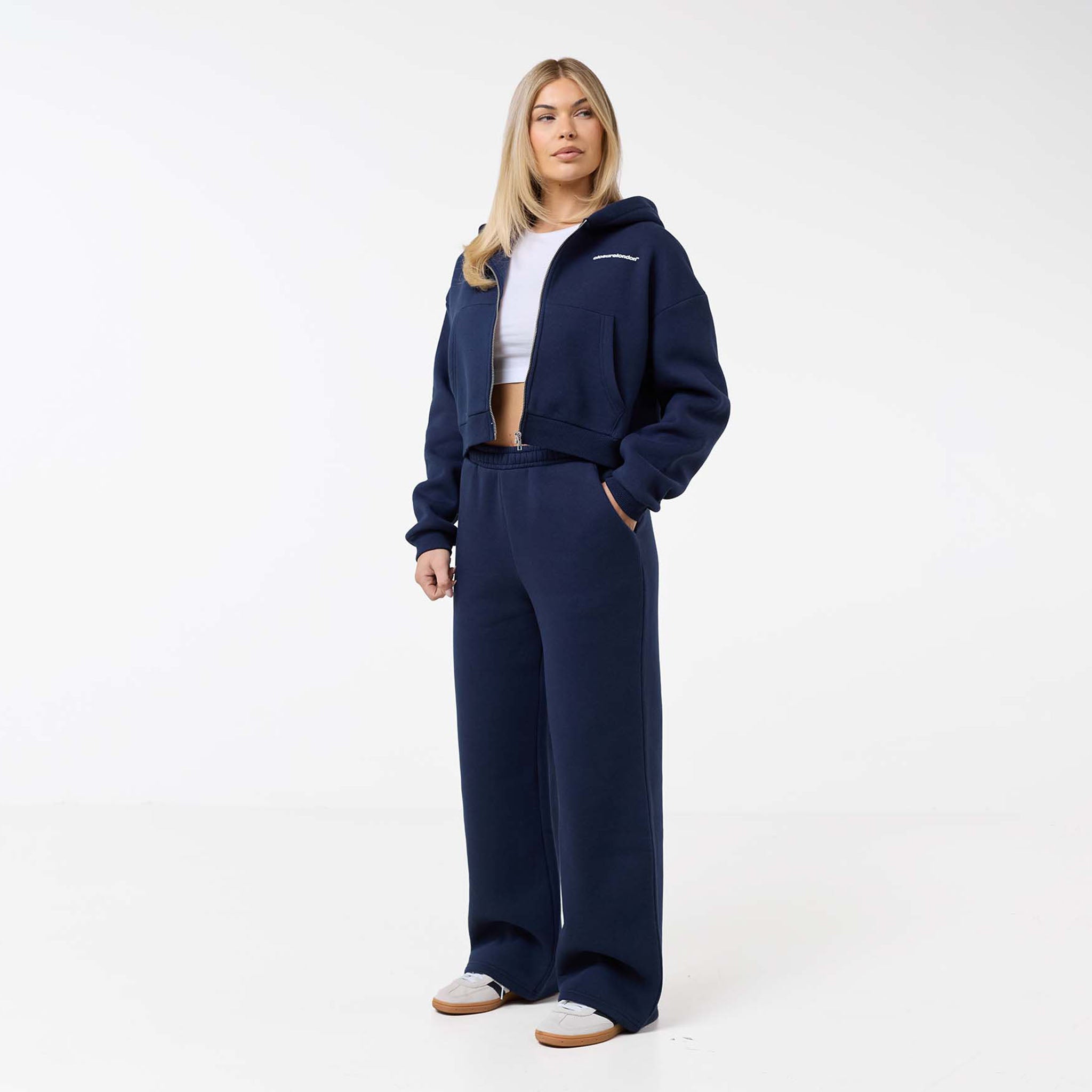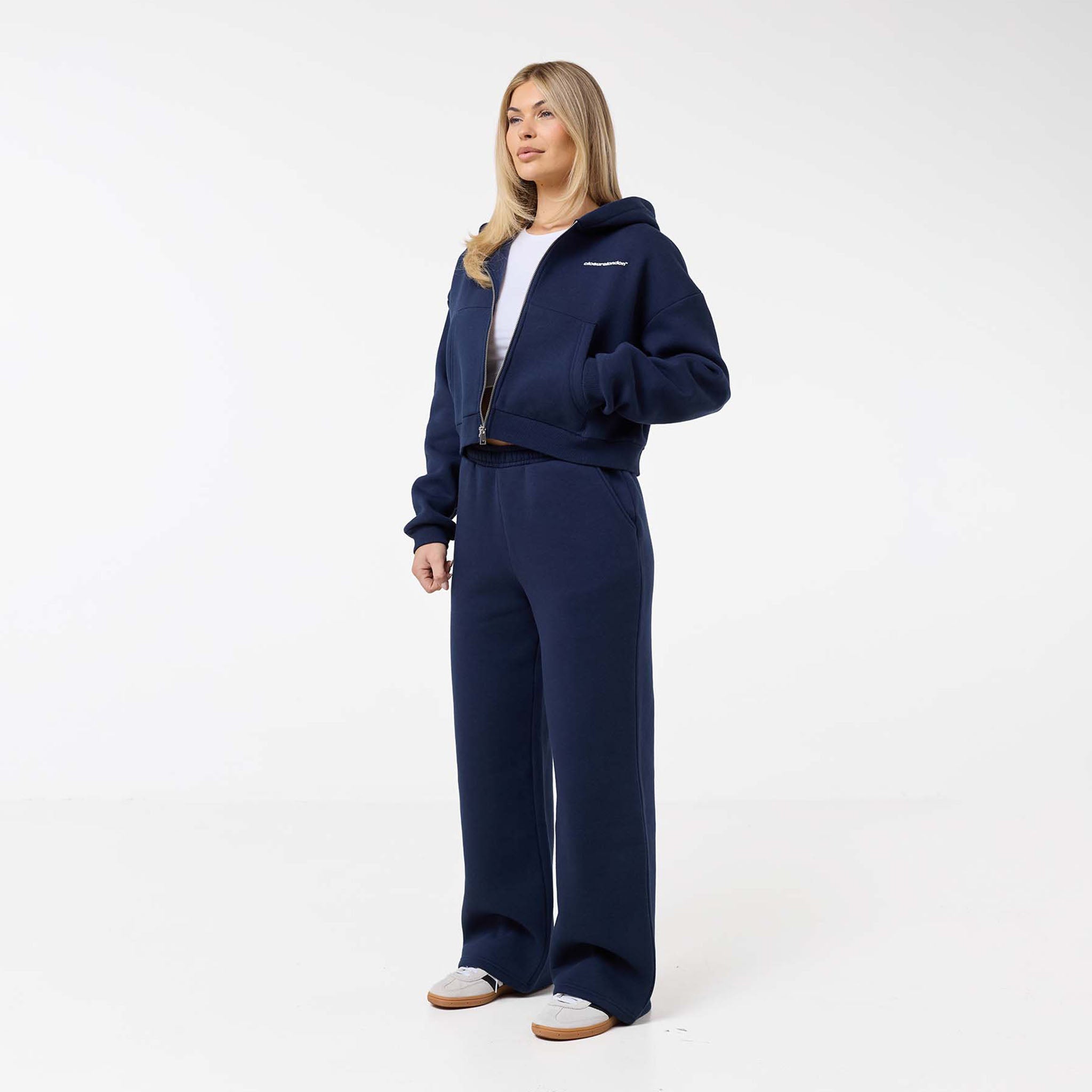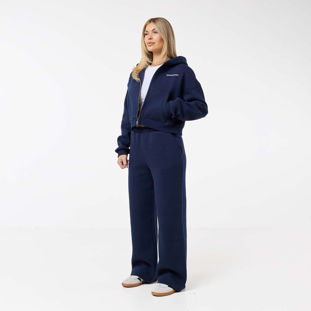 Introducing your new go to effortless style, the Stacked Crop Tracksuit in timeless navy. This modern tracksuit features a cropped zip-up hoodie with a bold rear Closure London graphic, perfectly paired with classic open-hem joggers. Designed with a relaxed fit and an adjustable drawstring hood, this ensemble offers a customisable and flattering look. Crafted from a soft, premium fabric, it ensures you stay comfortable whether you're lounging in style and about or running errands. The ultimate blend of fashion and function, this tracksuit is a key piece for your casual collection.