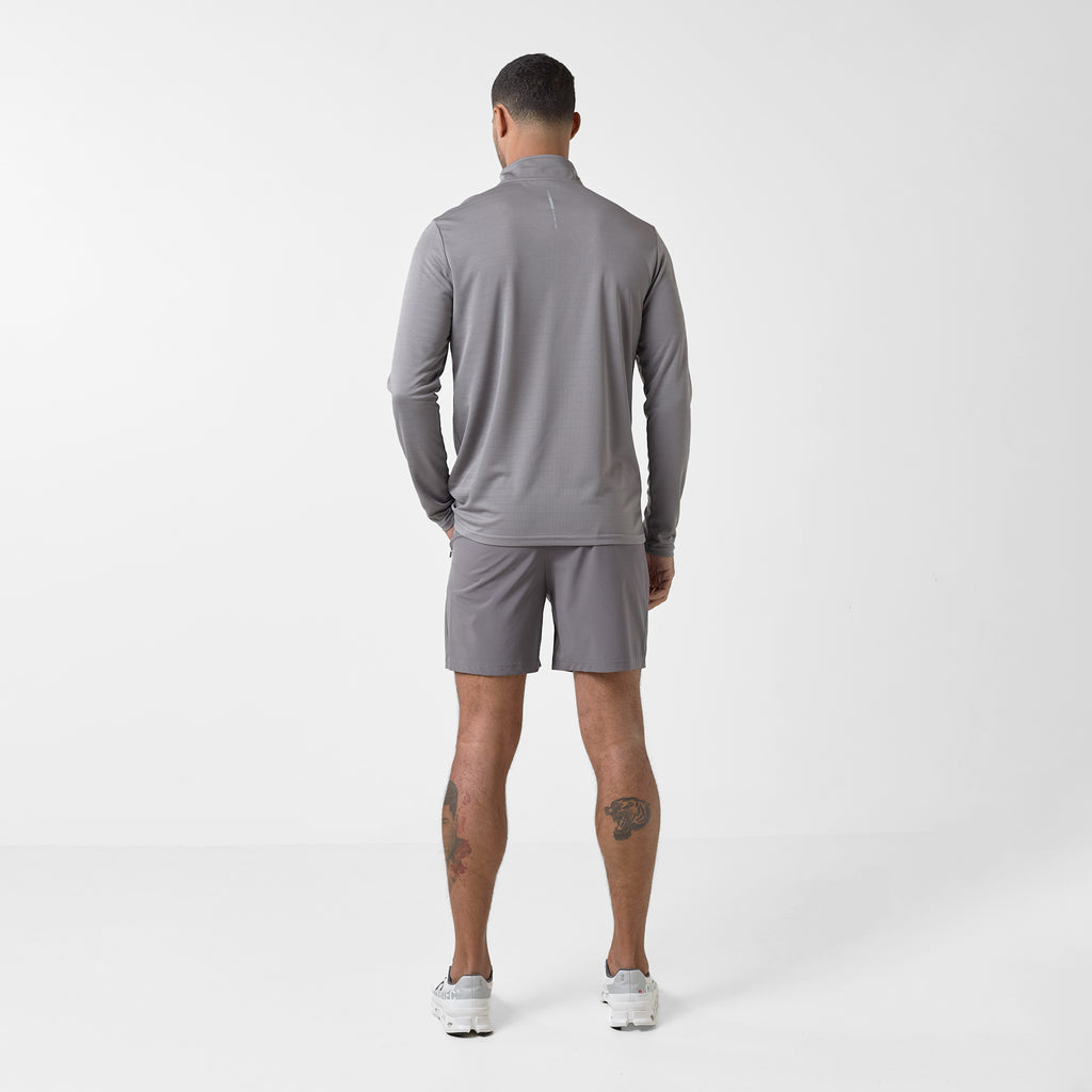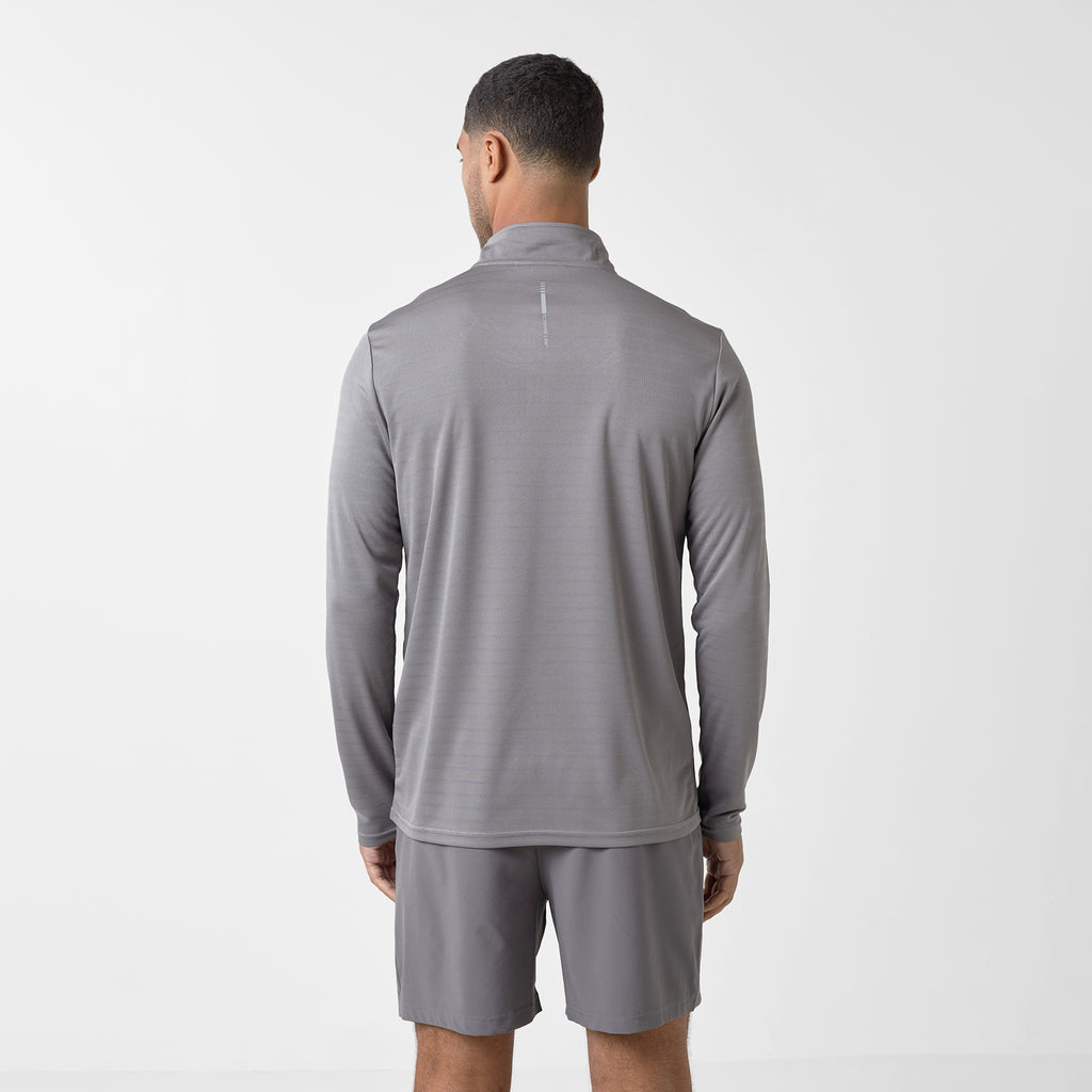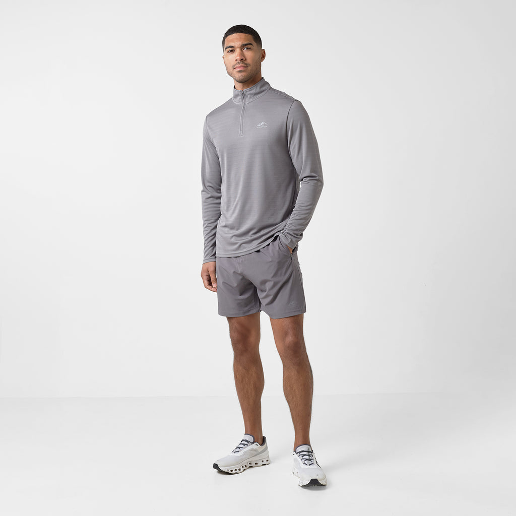 Discover the Core 1/4 Zip Performance Top in mid grey. An auto-lock zip puller ensures secure closure, complemented by the reinforced twin-stitched hem, which ensures lasting resilience and a sharp aesthetic. A subtle chest logo detail adds a touch of premium branding, making this piece ideal for workouts, casual outings, or layering, reflecting superior craftsmanship and performance-driven design. Crafted with meticulous precision and a focus on performance, this garment promises to enhance both your athletic pursuits and your everyday style, whether you're tackling a workout, exploring outdoor trails, or simply seeking a sophisticated, casual look.