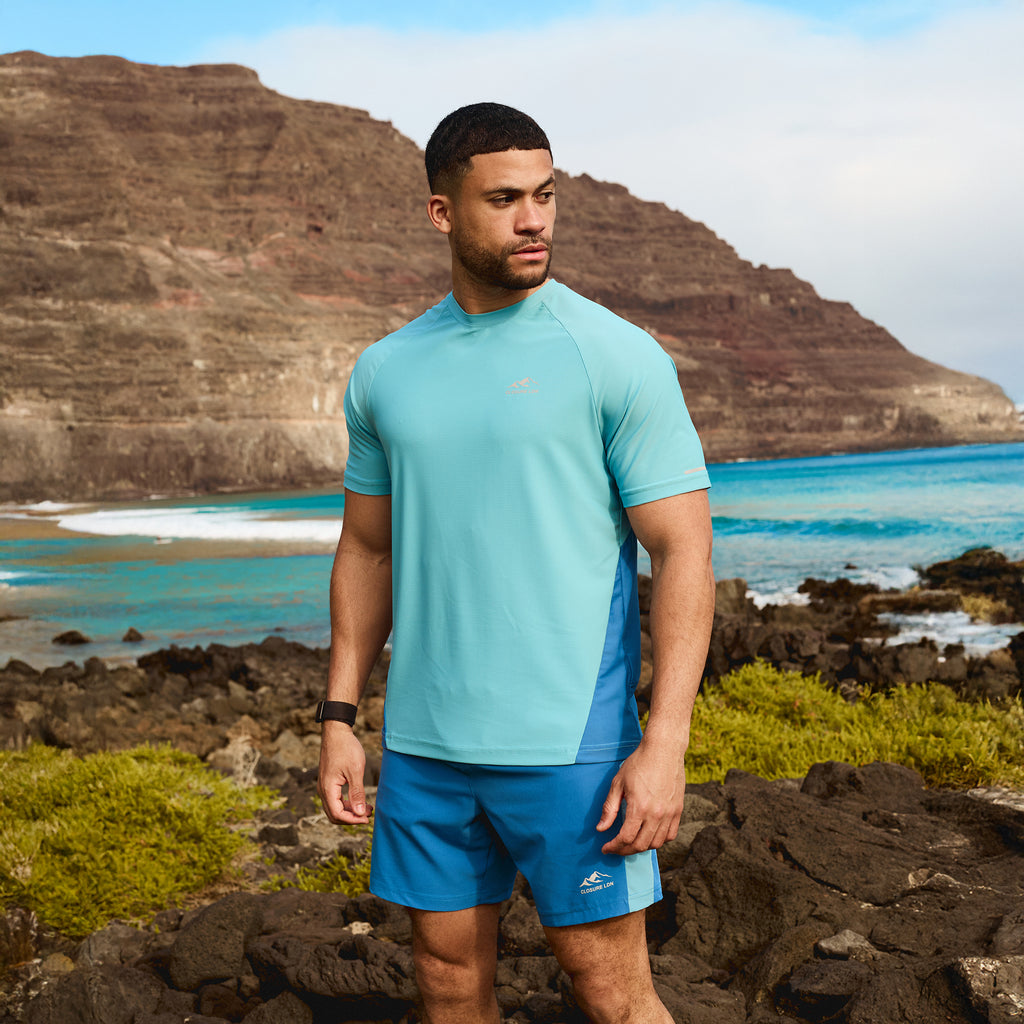 Introducing the Colourblock Training Twinset in Light Blue, a performance-driven duo designed for both style and function. This set includes a short-sleeve performance t-shirt and matching shorts, both crafted with thoughtful details to enhance your workout.