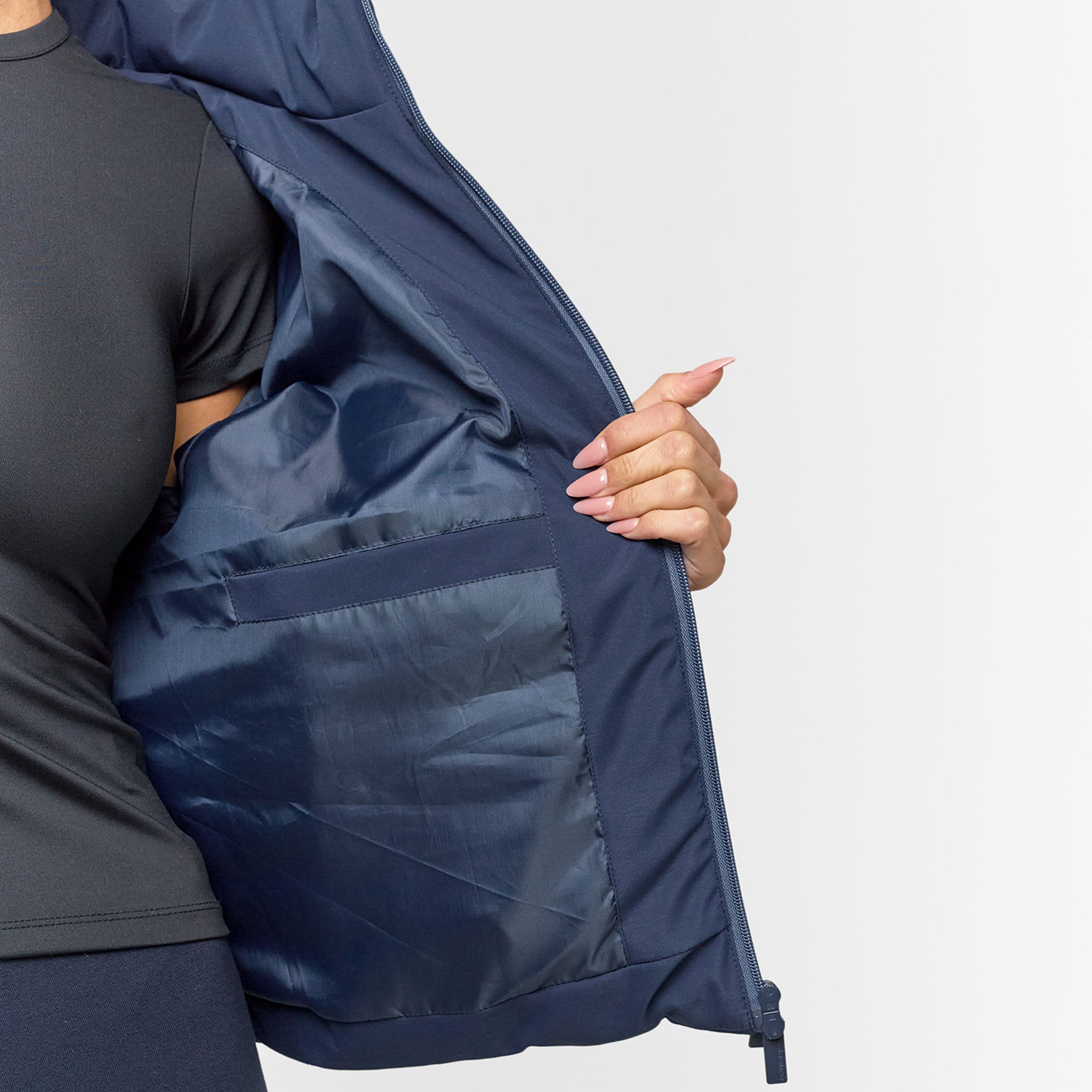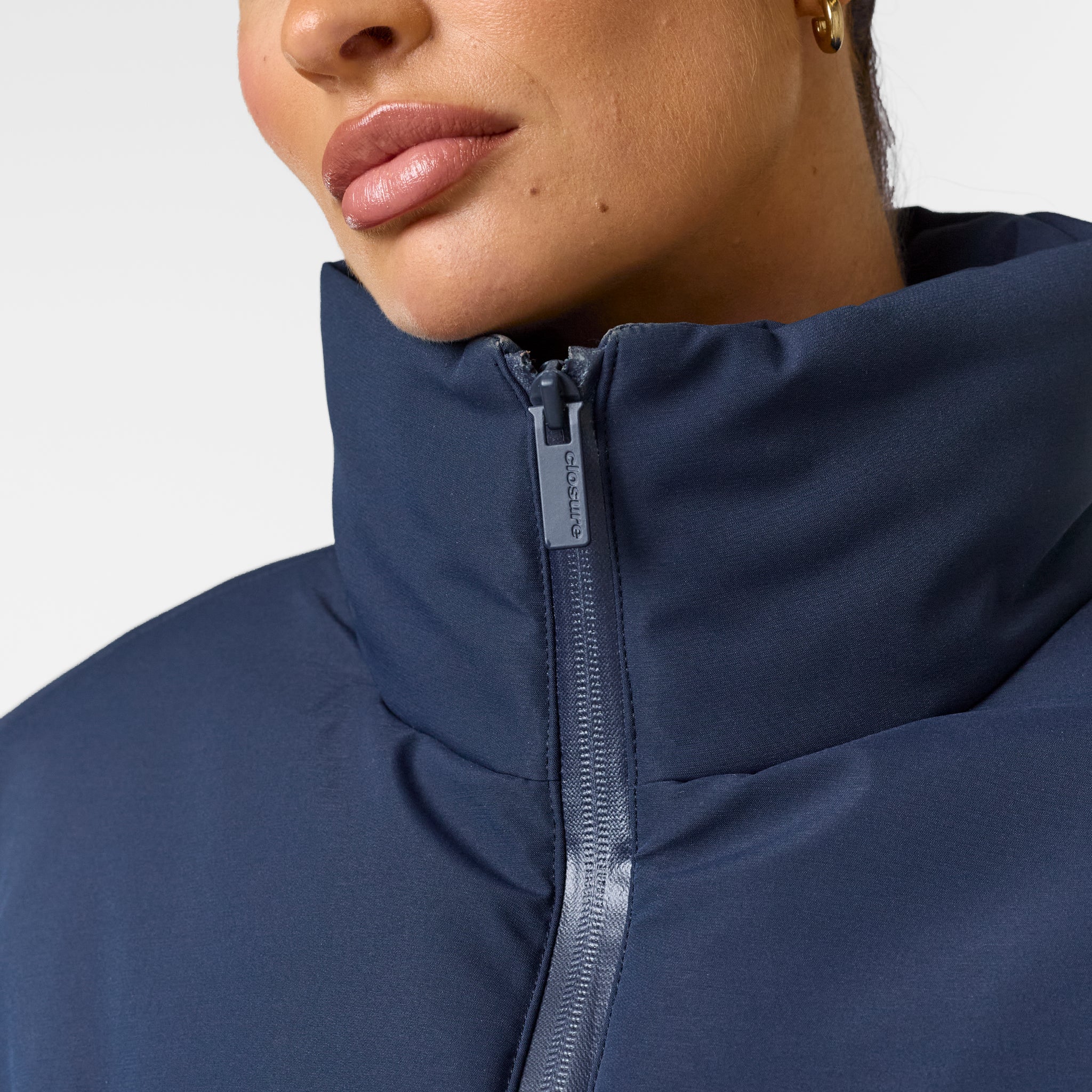 Introducing the Closure London Women's Navy Puffer Jacket – your new essential for elevating your winter wardrobe. Crafted in a versatile navy hue, this jacket features a sophisticated funnel neck and a quilted design throughout the body and sleeves, ensuring optimal warmth. The distinctive Closure London logo on the chest adds a touch of brand recognition, while the double-ended branded zipper offers flexibility in styling. For a snug and personalised fit, utilise the bungee drawcord and adjuster on the inside of the hem. This jacket is perfect for adding a stylish touch to your loungewear or for giving you that much-needed extra warmth in chilly weather.