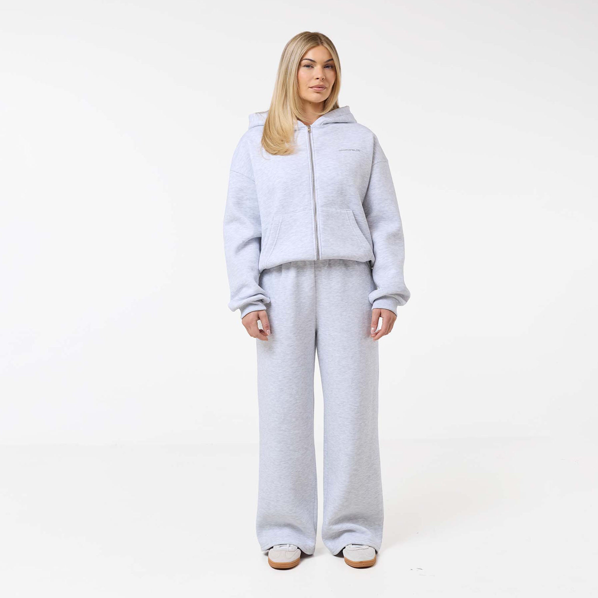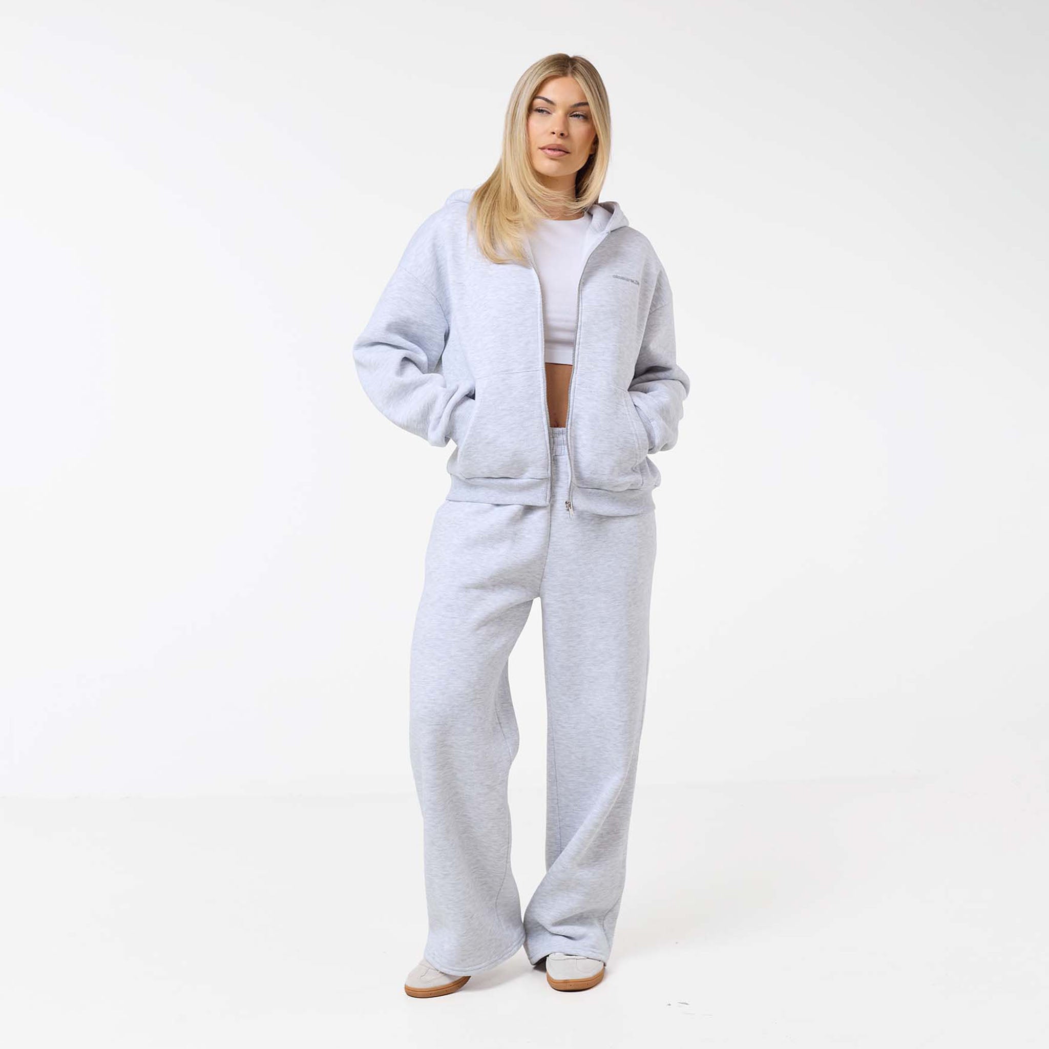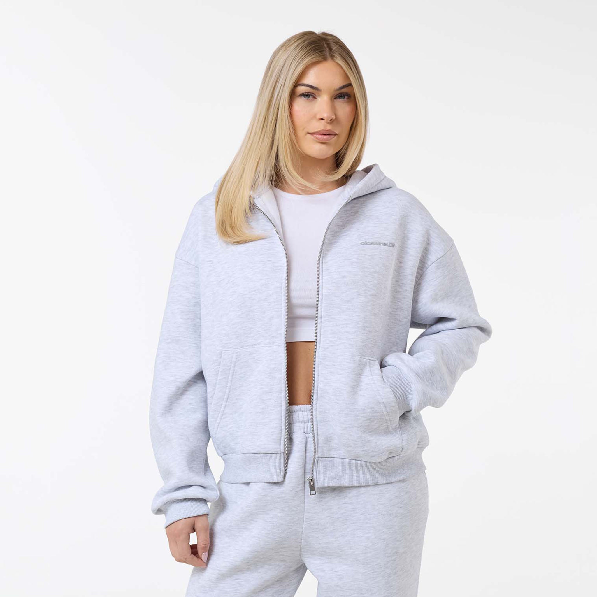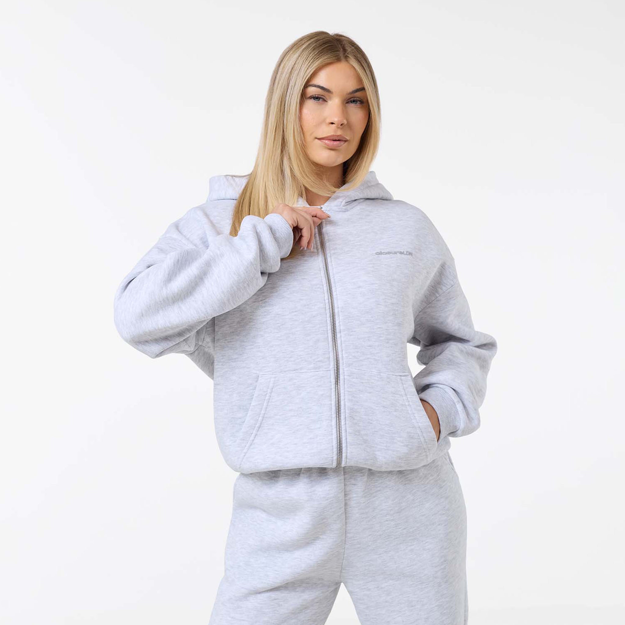 Step into effortless style with the Tonal Core Zip Open Hem Tracksuit in versatile grey marl. Crafted from an ultra-soft 300GSM brushed fleece, this two-piece set provides ultimate comfort and everyday warmth. The Full Zip Hoodie features a functional double-ended zipper, a cozy lined hood, and classic ribbed trims, subtly branded with the Closure LDN chest logo. Paired with the Core Open Hem Joggers to perfect the loungewear look, boasting a relaxed fit, convenient slant pockets, and a unique cut-and-sew waistband. This tracksuit is the essential addition to any casual wardrobe, offering a cohesive, contemporary silhouette.