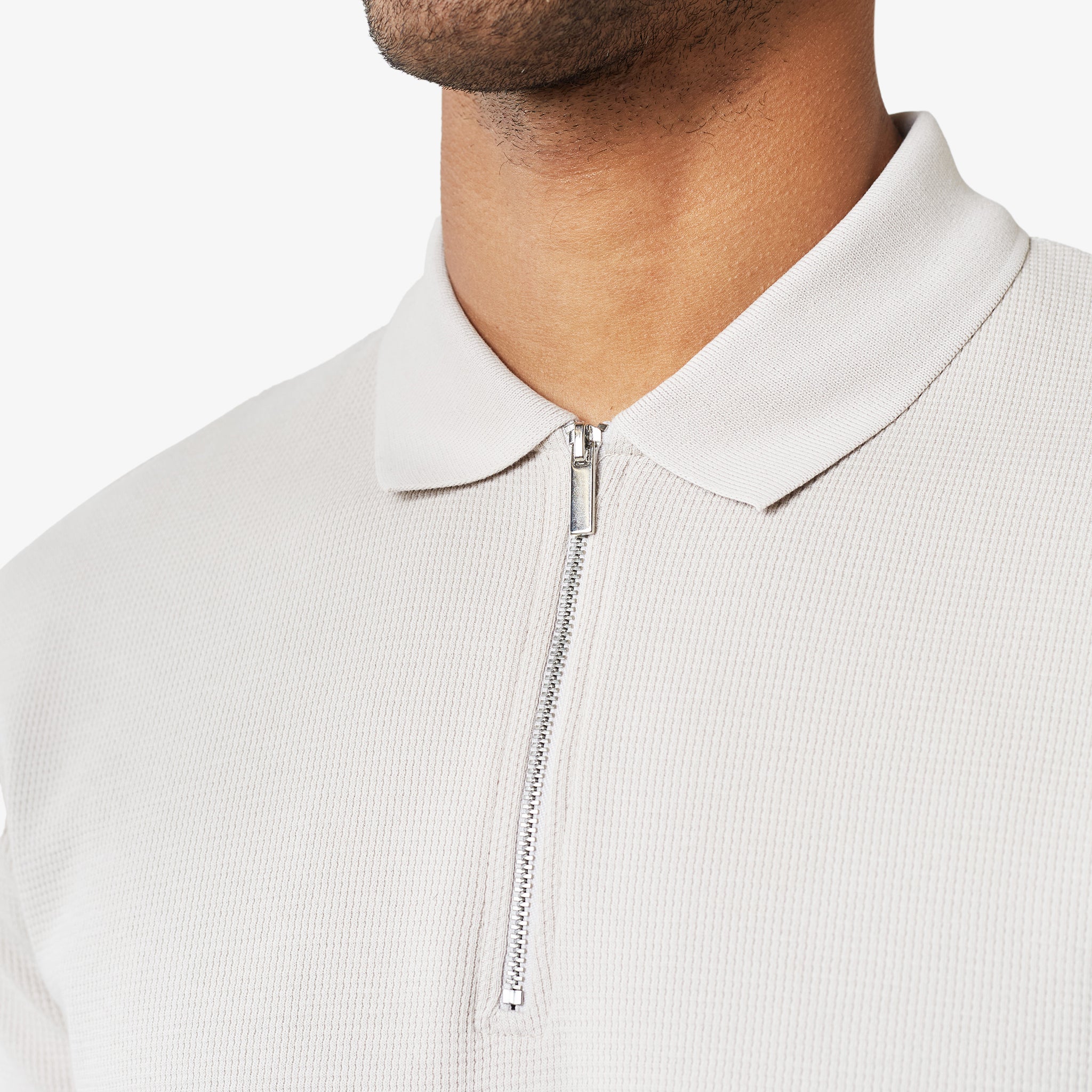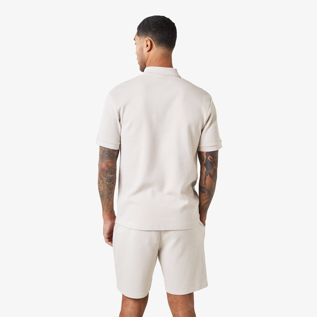 Waffle Knit Zip Polo | Stone