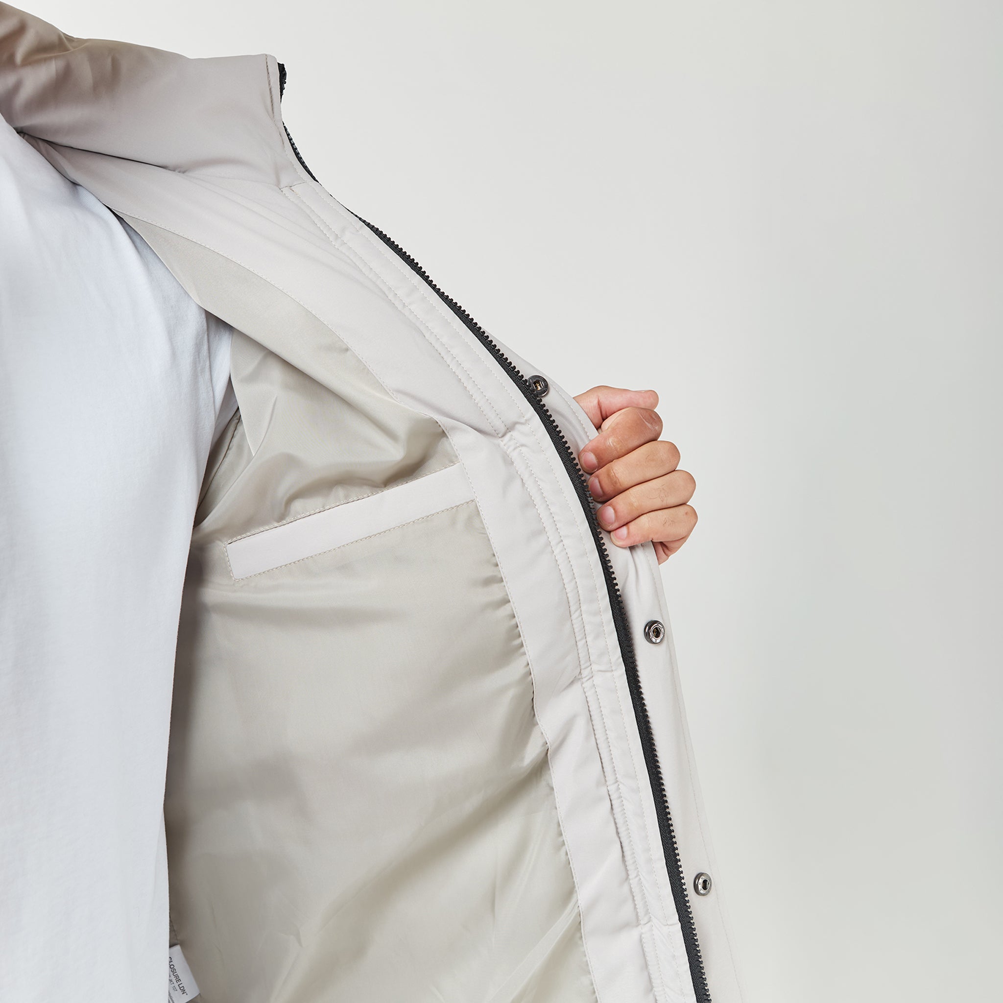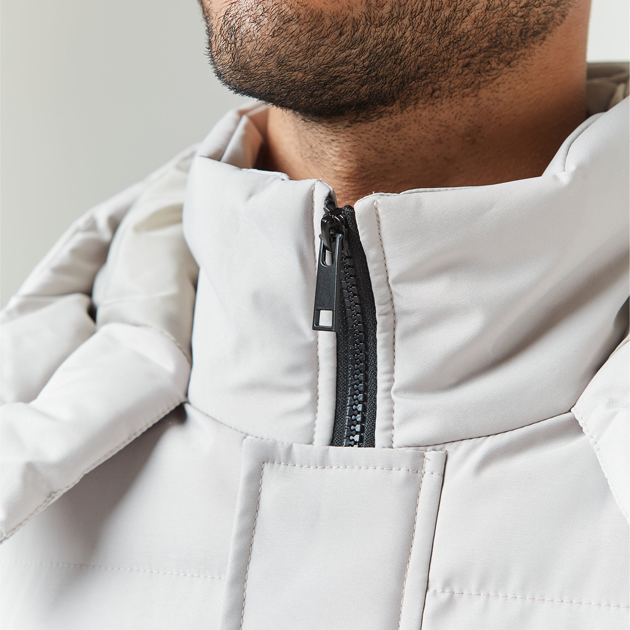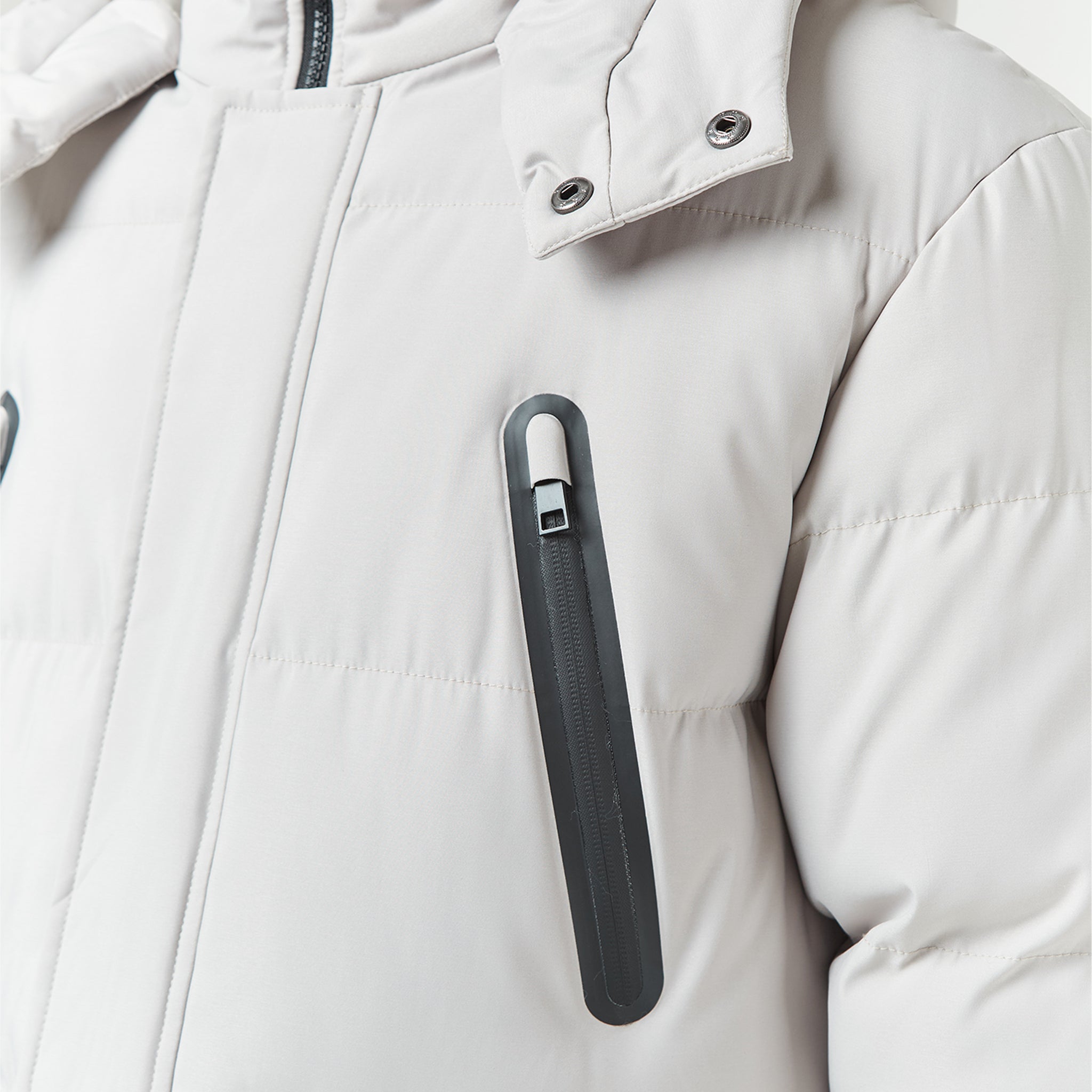 - Quilted padded hood with poly shell lining