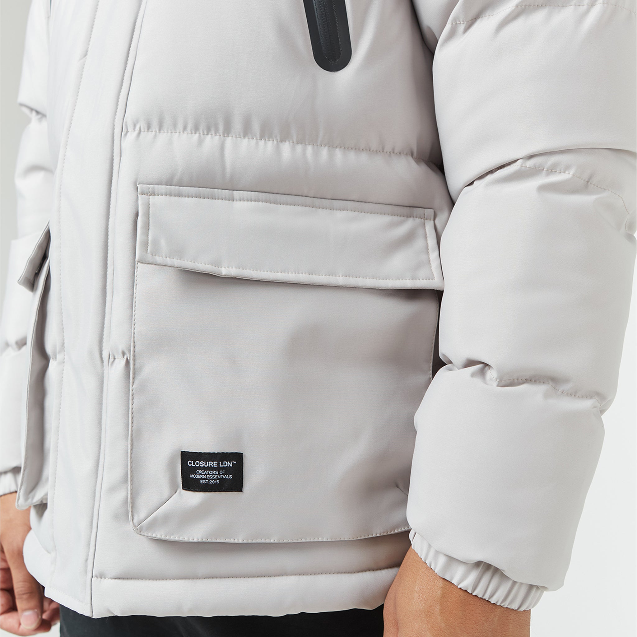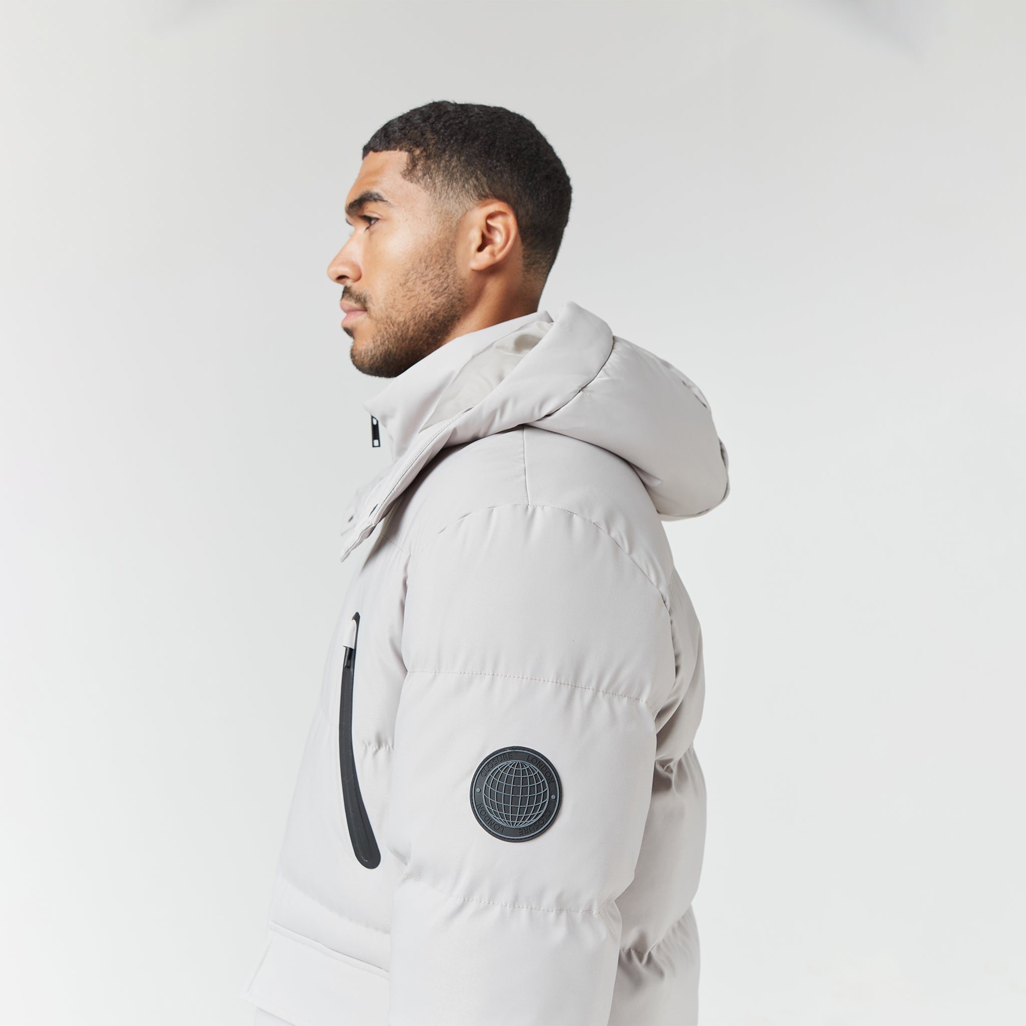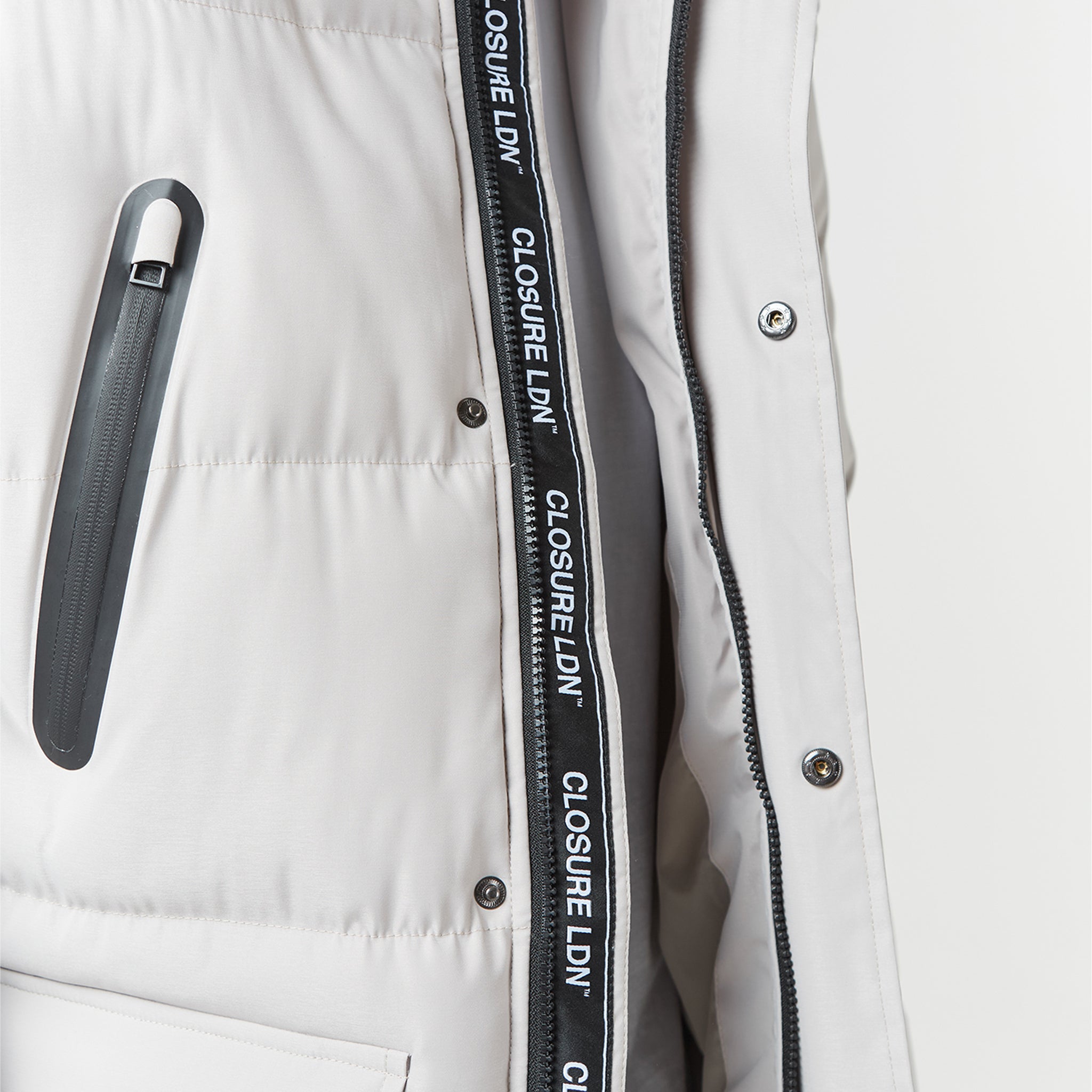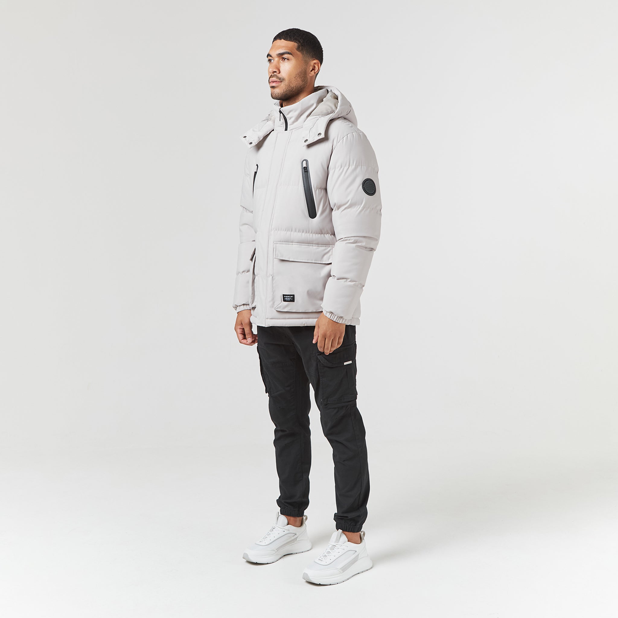 - Quilted padded hood with poly shell lining