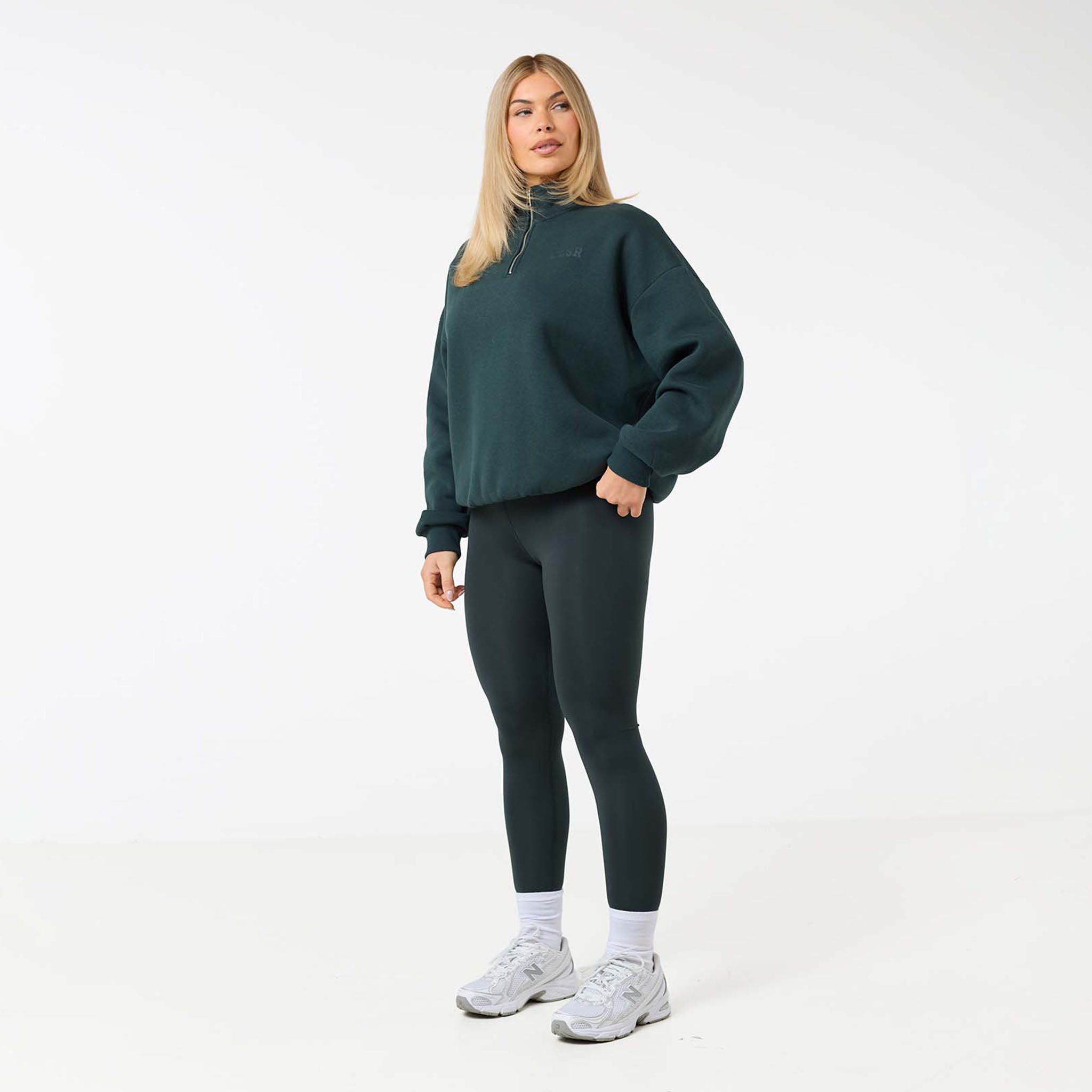 Introducing the Second Skin Legging in a n on trend pine green shade. Experience a second-skin feel and a supportive, compressive fit that sculpts your silhouette. Perfect for both high-intensity workouts and casual days, these leggings are crafted with a no-side-seam design for ultimate comfort and a sleek finish. The 4-way stretch fabric provides complete freedom of movement, and the squat-proof design ensures you feel confident during any activity. A subtle tonal gel logo adds a touch of signature branding. The deep green hue is ideal for autumn and pairs effortlessly with our new 1/4 zip and full-zip hoodies and matching accessories like a tote bag for a cohesive, put-together outfit.