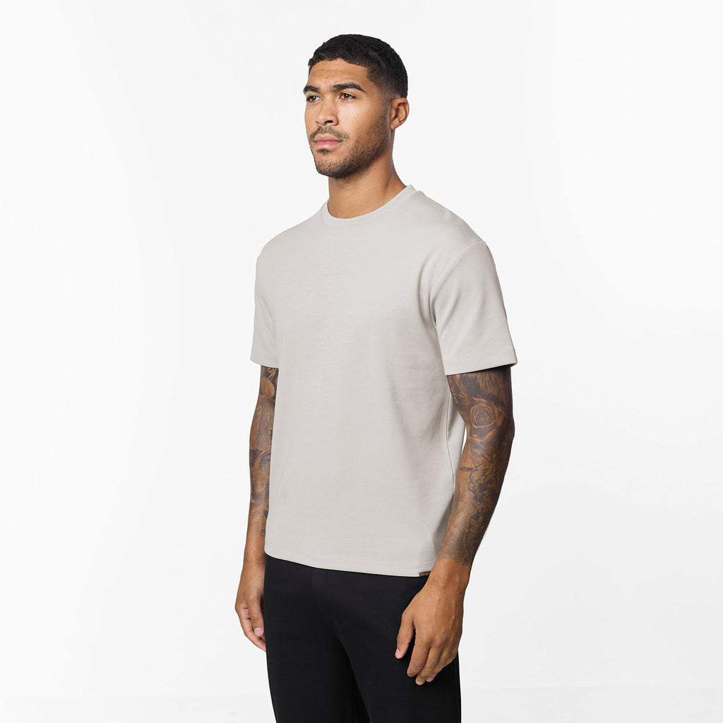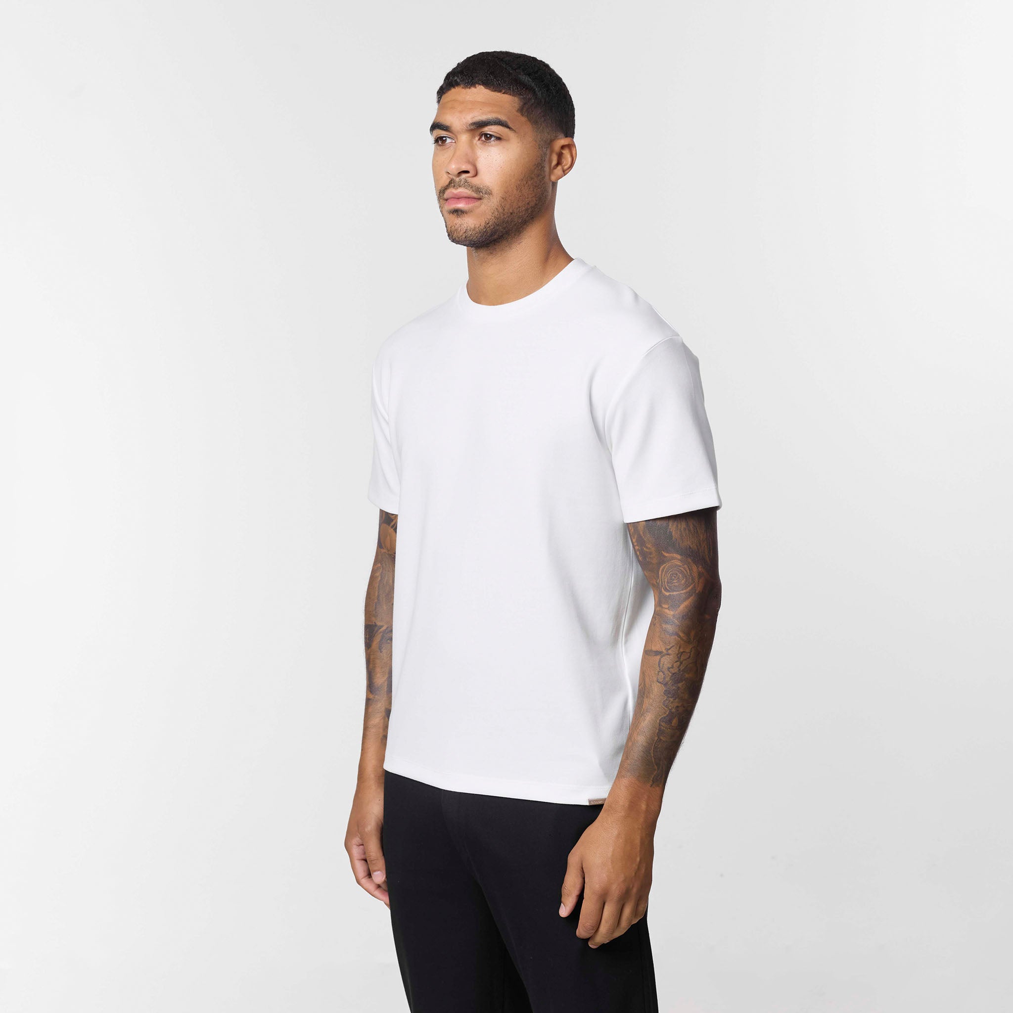 Elevate your essential wardrobe with the Smart Scuba T-Shirt Three-Pack. This set includes three timeless tees, one in a sophisticated stone and another in versatile black and one in classic white, embodying understated luxury. Crafted from the finest scuba fabric, each t-shirt offers an exceptionally soft feel and a structured silhouette that drapes impeccably. Experience unparalleled comfort and versatile style, easily dressed up for evening or paired with the matching shorts for a refined casual look. This meticulously crafted three-pack is a must-have for any modern individual who values both comfort and style.