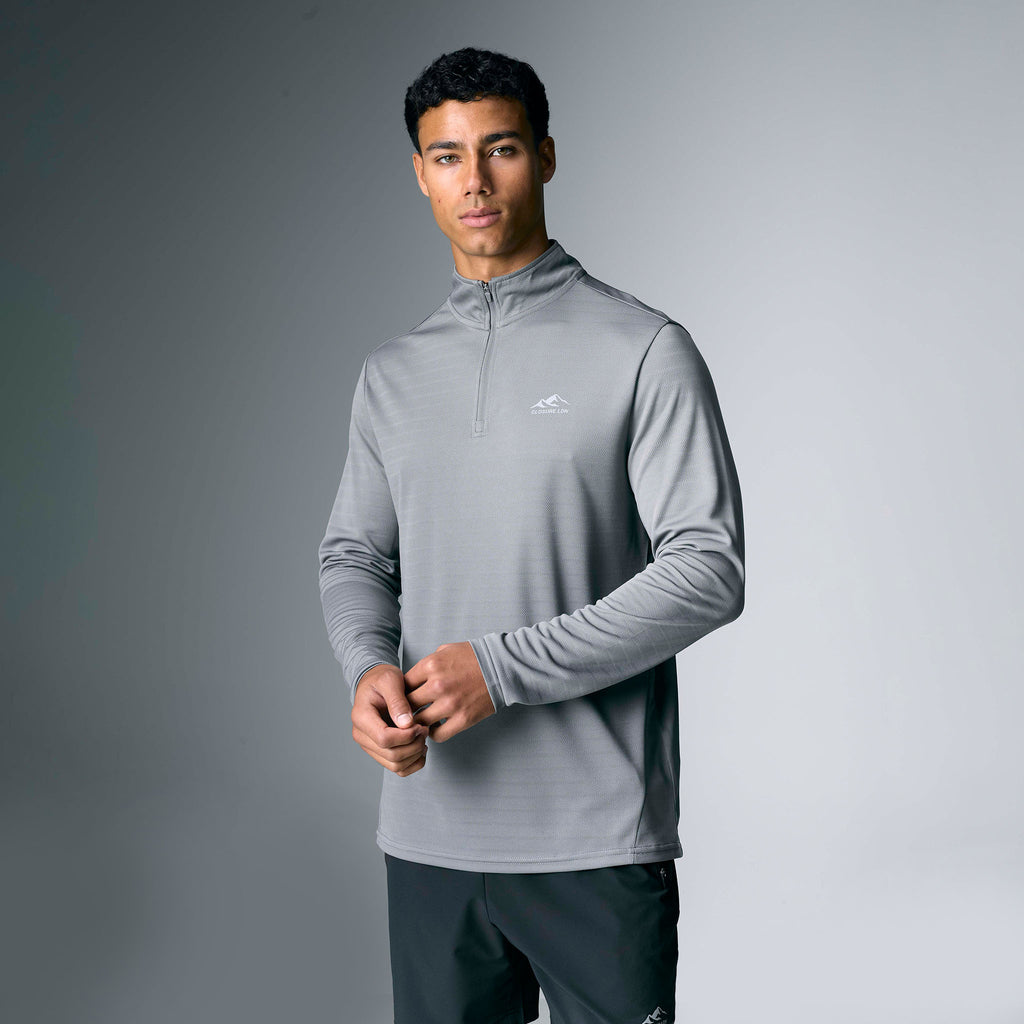 Discover the Core 1/4 Zip Performance Top in mid grey. An auto-lock zip puller ensures secure closure, complemented by the reinforced twin-stitched hem, which ensures lasting resilience and a sharp aesthetic. A subtle chest logo detail adds a touch of premium branding, making this piece ideal for workouts, casual outings, or layering, reflecting superior craftsmanship and performance-driven design. Crafted with meticulous precision and a focus on performance, this garment promises to enhance both your athletic pursuits and your everyday style, whether you're tackling a workout, exploring outdoor trails, or simply seeking a sophisticated, casual look.