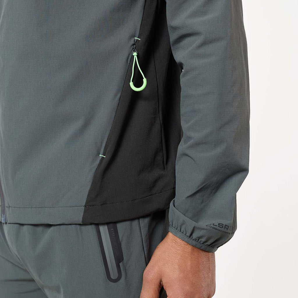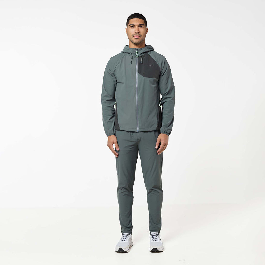 Experience dynamic style and comfort with our Cyclone Contrast Tracksuit in forest/neon green. The jacket features a self-fabric 3-piece hood, distinctive cut and sew panels on the chest and body, and raglan seams for superior movement. Functionality is key with a concealed zip pocket, coated reverse nylon coil zip, elasticated cuffs, a branded dual hem adjuster, a contrast rear yoke, and a reflective back logo. The matching pants offer premium performance with a faux fly stitch, elasticated waistband and flat poly drawcords, heat seal pockets, zipped hems with autolock pullers, a rear leg cut and sew panel, and a reflective logo print at the back.