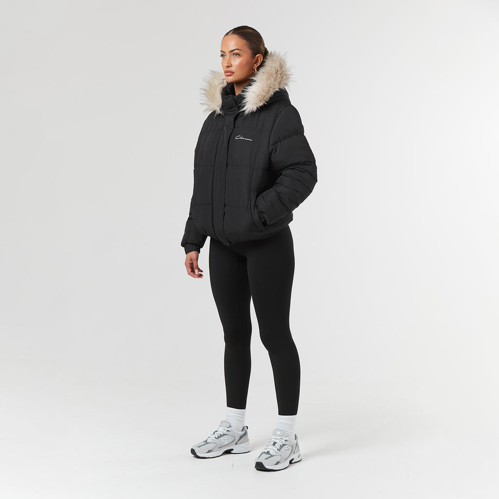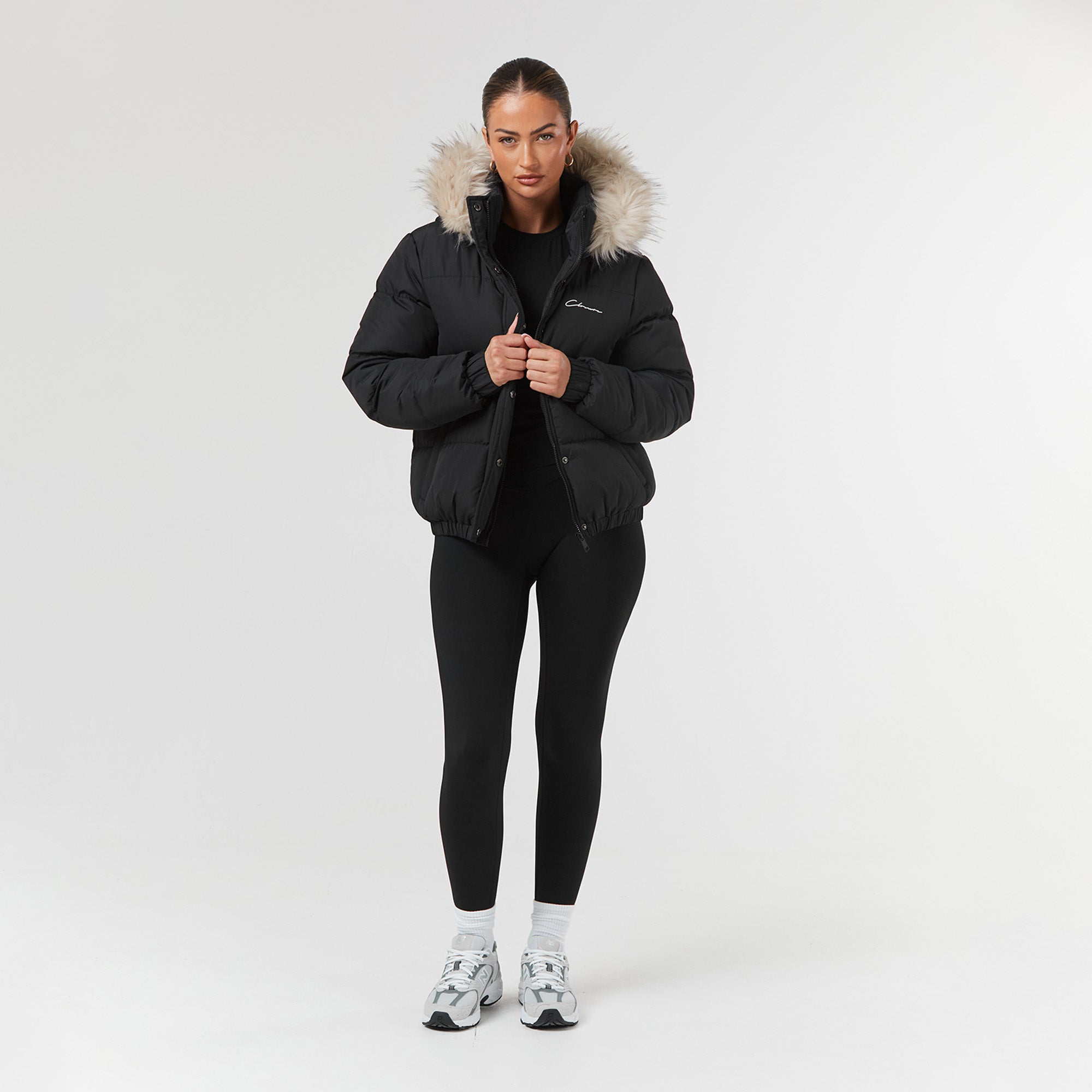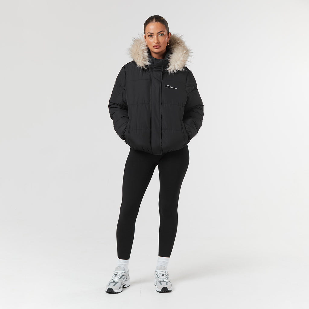 Stay undeniably warm on chilly days with our Cropped Puffer Jacket. This on-trend piece features a flattering cropped silhouette and plush faux fur trim for a touch of luxury. The down-alternative filling provides exceptional insulation without weighing you down. While the cropped length complements high-waisted bottoms, while the wadded funnel collar adds a touch of sophistication.