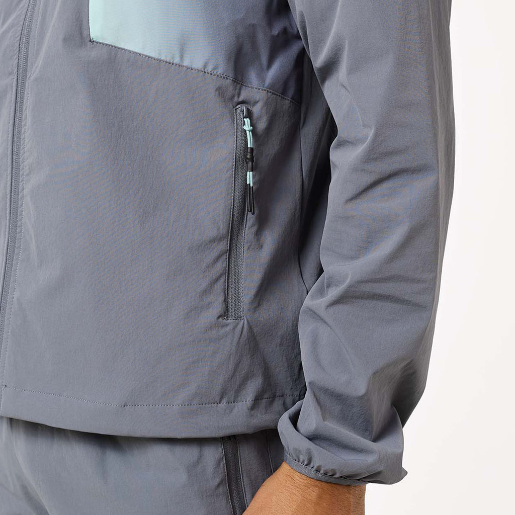 Experience dynamic style with the Gradient Motion Tracksuit in Charcoal/Mint, a perfect blend of modern design and comfort. The jacket features a functional hood with rear bungee and adjuster, a standout Closure London high-build 3D print on the chest, and eye-catching front and rear cut-and-sew panels. It's equipped with a smooth reverse nylon coil main zip, practical zip pockets with contrasting nylon coil zips, and discrete cut-and-sew pockets with concealed in-seam zips. Elastic binding on the cuffs, a rear Closure London transfer print, and bar tack detailing round out its distinctive features. The coordinating pants offer supreme comfort with an elasticated waistband, faux fly stitch, and flat poly drawcords with rubber-dipped ends. They also include a secure reverse nylon coil zip pocket, a Closure transfer print at the side front, and a bold rubber 3D high-build print to the rear.