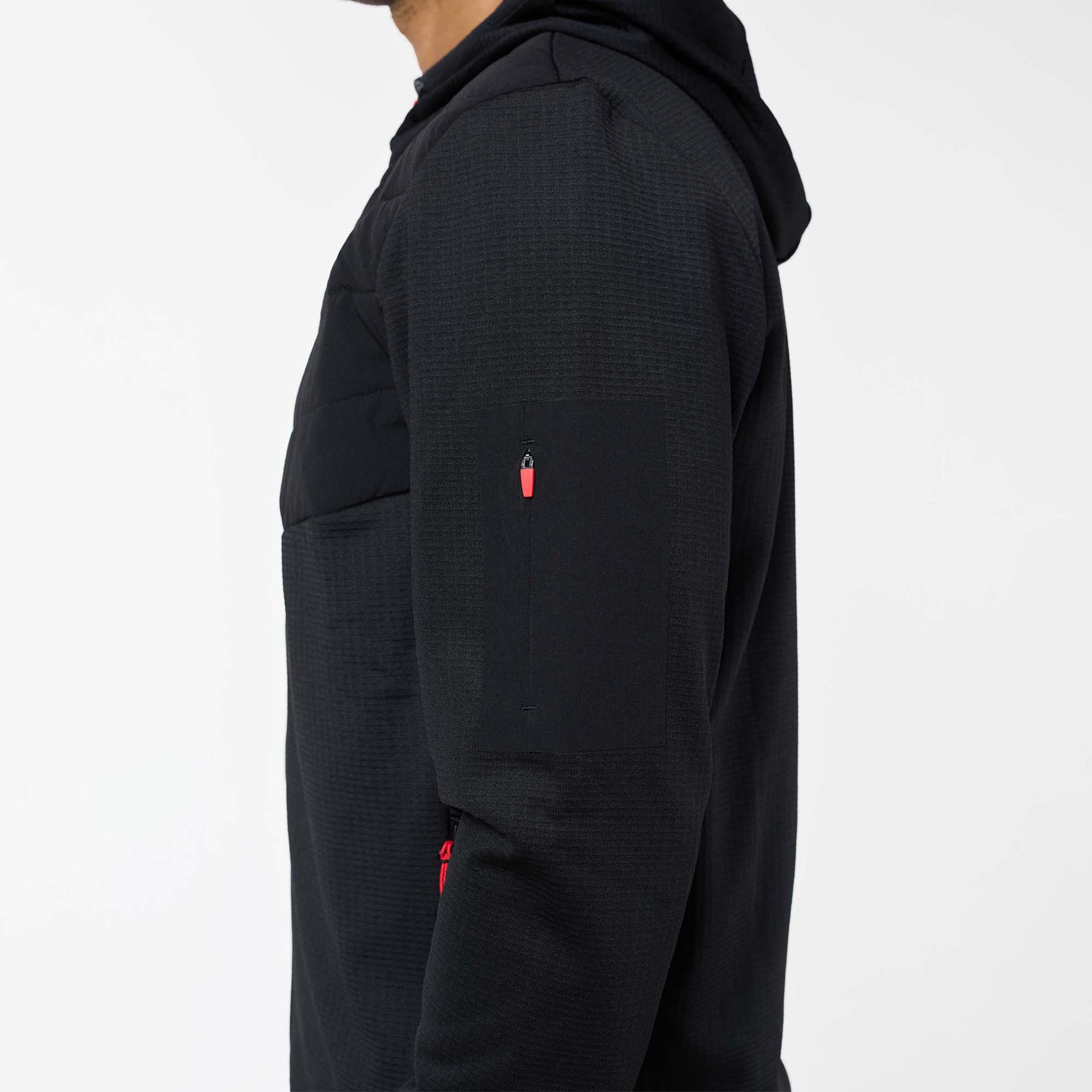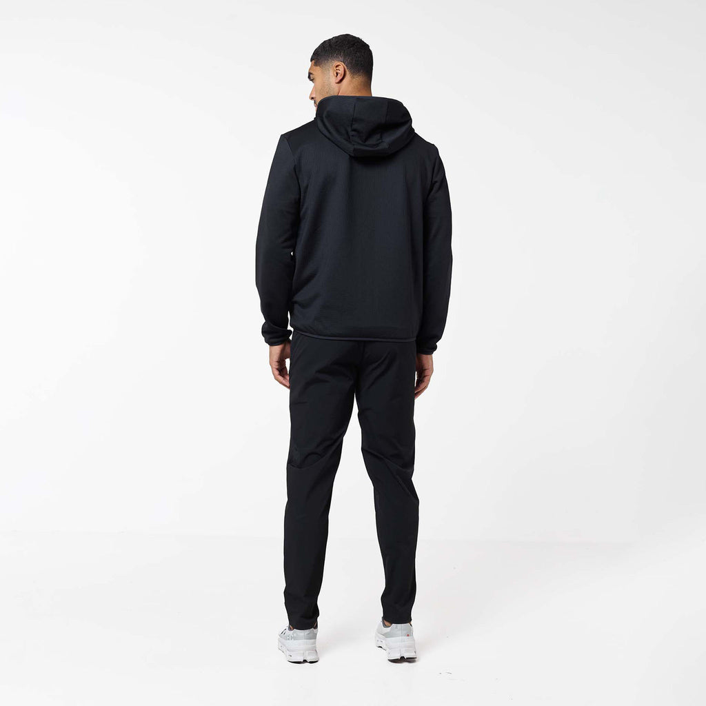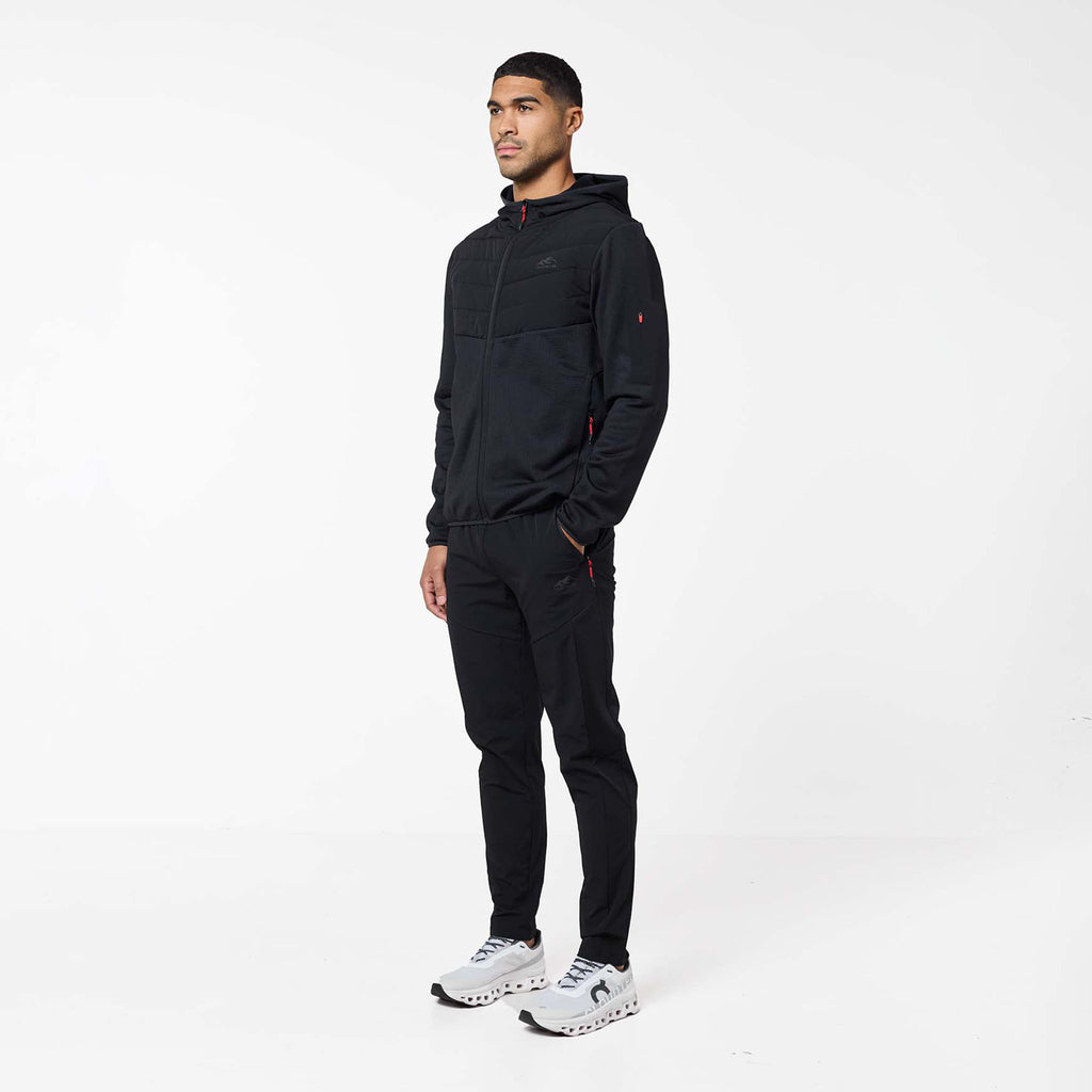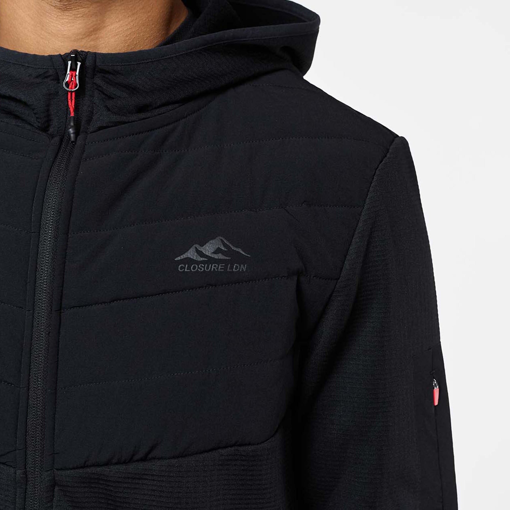 Unwind in ultimate comfort and modern style with our men's Quilted Fleece Tracksuit in versatile black. Perfect for relaxed days or active wear, this tracksuit combines soft fleece with distinctive details. Designed for warmth and style, the fleece hoodie features a plush body and a comfortable self-fabric hood. Stand out with unique quilted poly panelling and secure your fit with the zip down fastening, complete with a bungee puller. The matching joggers are crafted for comfort with fleece fabric and feature self-fabric cuffs for a clean finish. They boast a comfortable ribbed self-fabric waistband with drawcords that have rubber dipped ends for a custom fit. A Closure branded transfer print on the chest and bottoms adds signature style, complemented by a contrast cut and sew panel for a modern look.