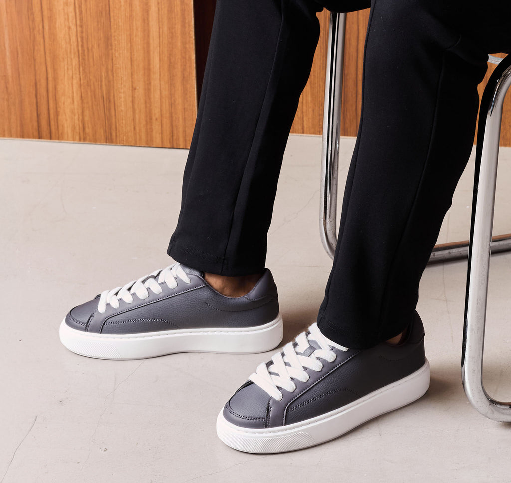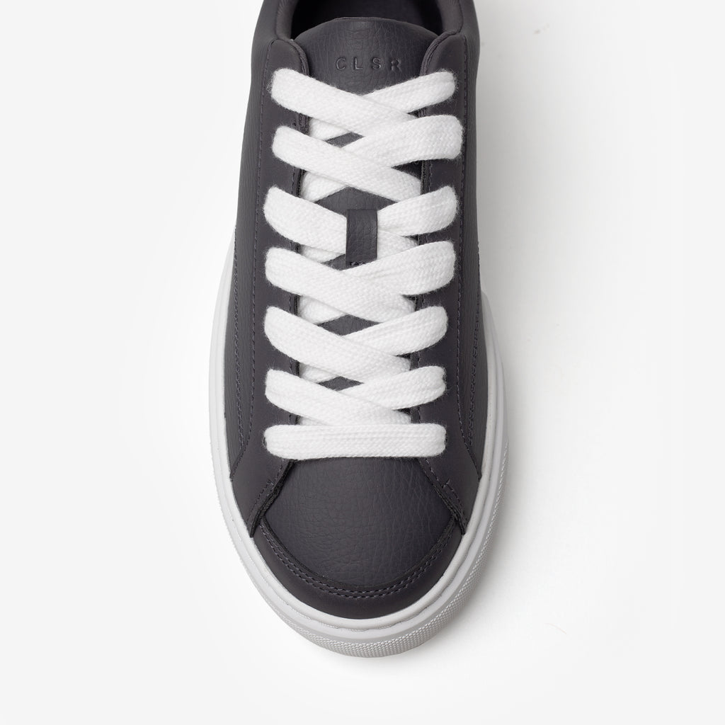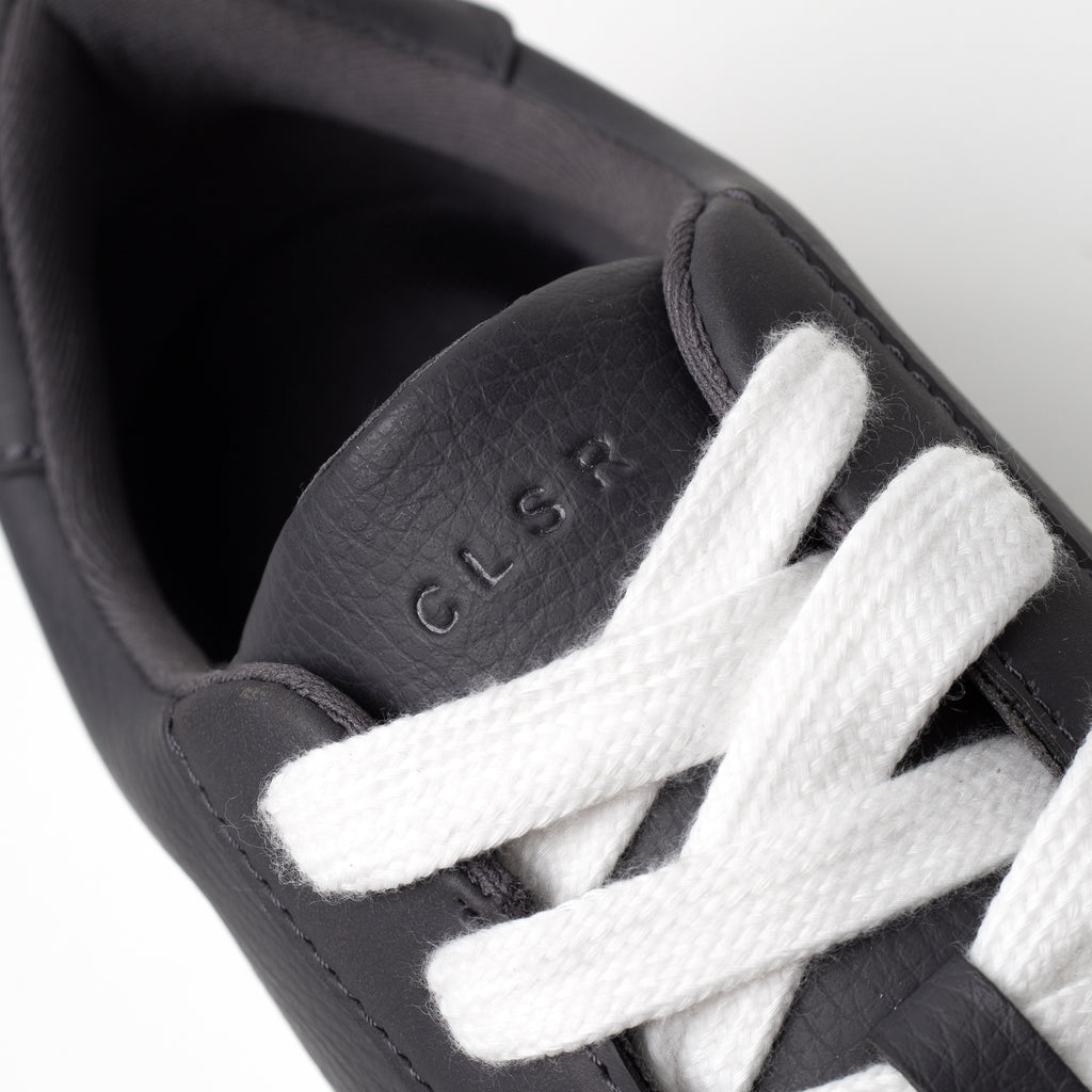 Discover a fresh take on court classics with our the Premium Court Trainer in Charcoal/White. Blending heritage style with a modern edge, these trainers feature sophisticated faux suede lace panels and a striking contrast white cupsole. Secure your fit with the lace-up fastening, while CLSR signature branding graces the tongue. Premium materials like a soft suede back panel and rich tumbled leather elevate the design. Finished with distinctive Closure London heel branding and a custom-engineered Closure LDN outsole, these trainers deliver both style and reliable comfort, an essential style to complete your look.