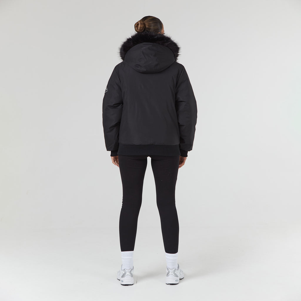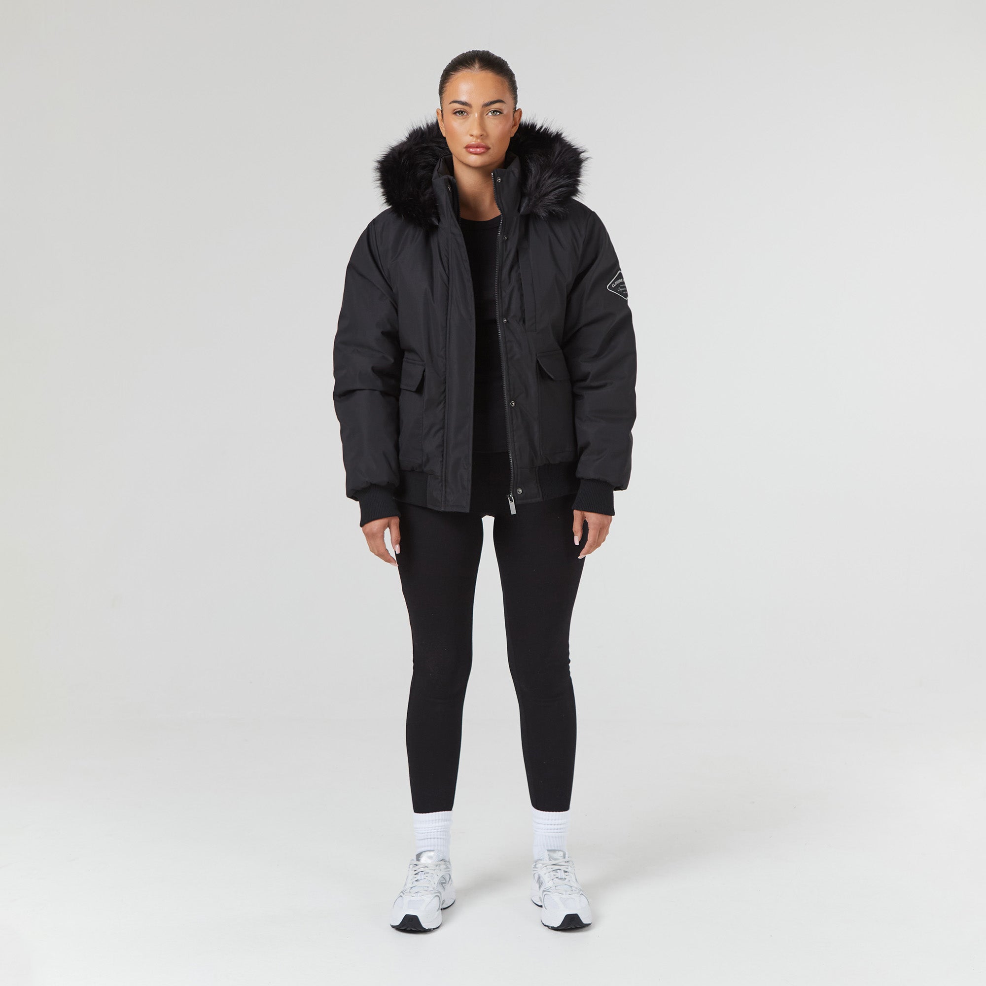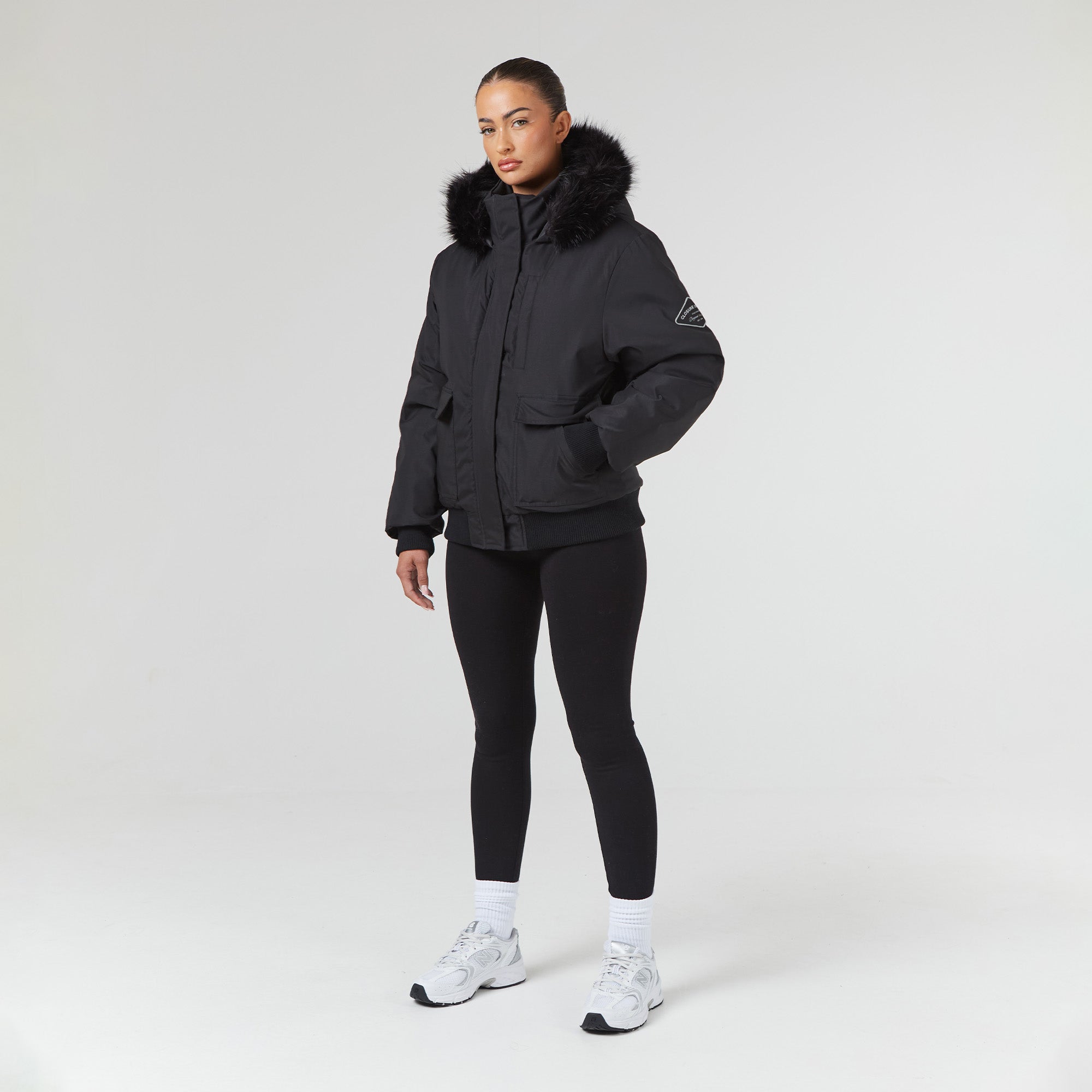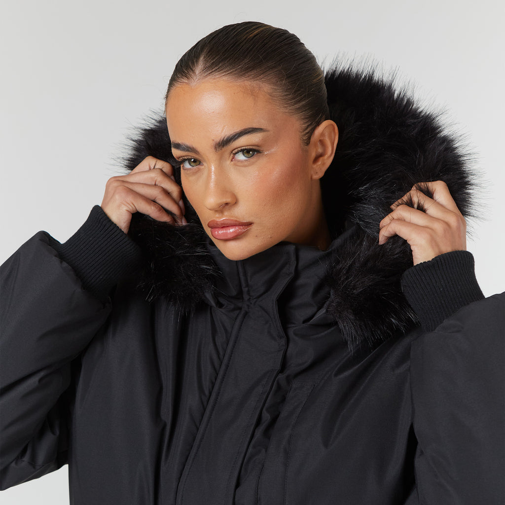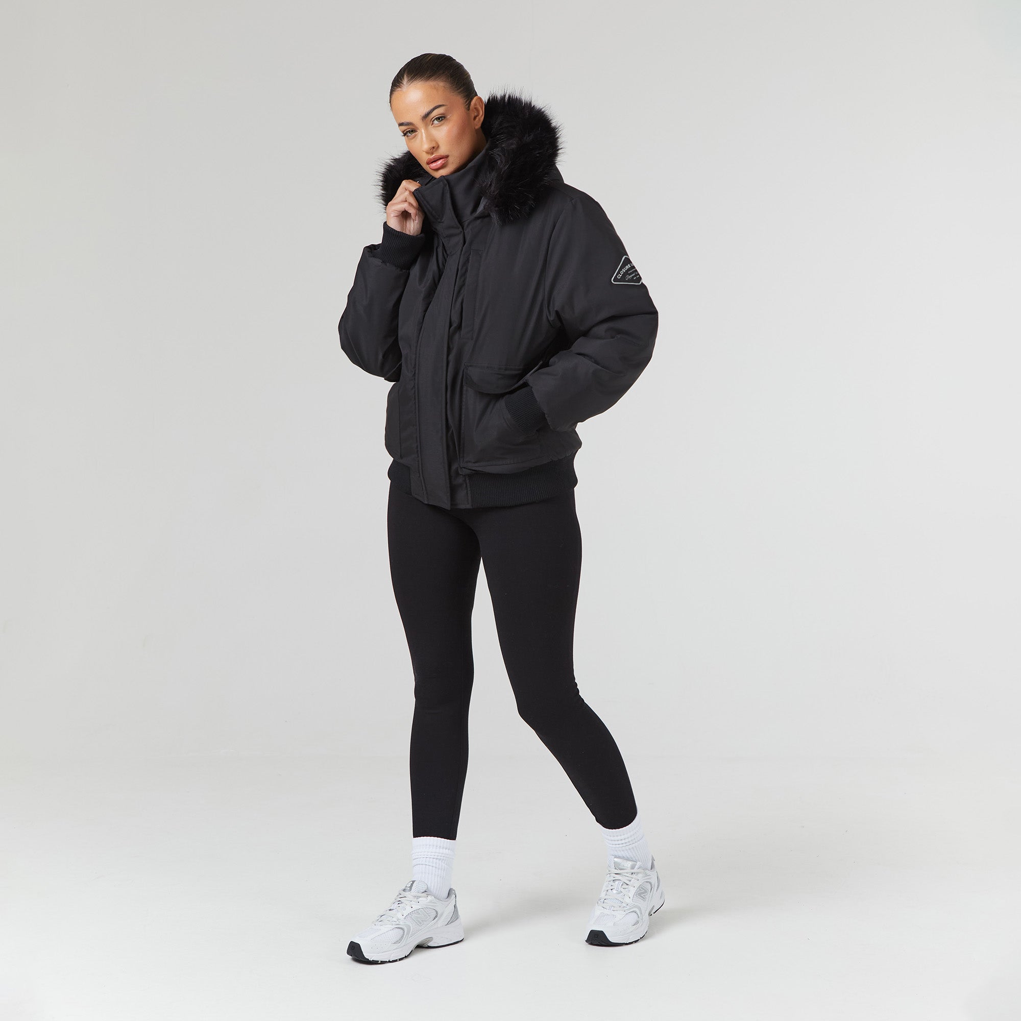 Embrace winter style and warmth with the Cropped Puffer Parka. This statement piece offers all the functionality of a parka with a chic, cropped silhouette. A poly shell lining provides wind protection, while the funnel neck traps heat to keep you comfortable. A plush fur trim on the hood adds a touch of sophistication. The sewn-in hood offers extra protection from the elements, while welt pockets provide convenient storage.