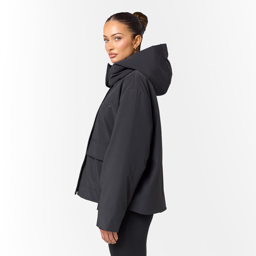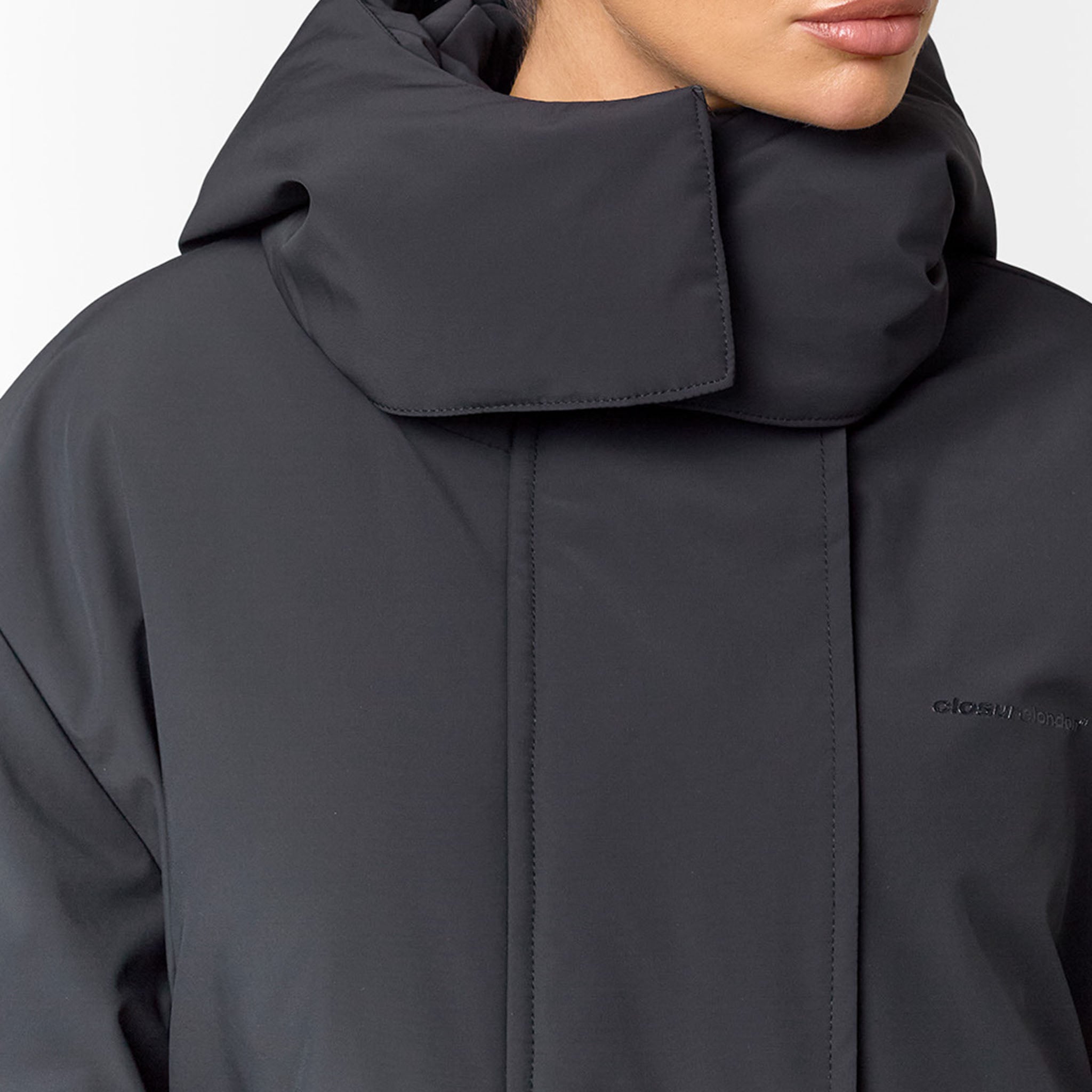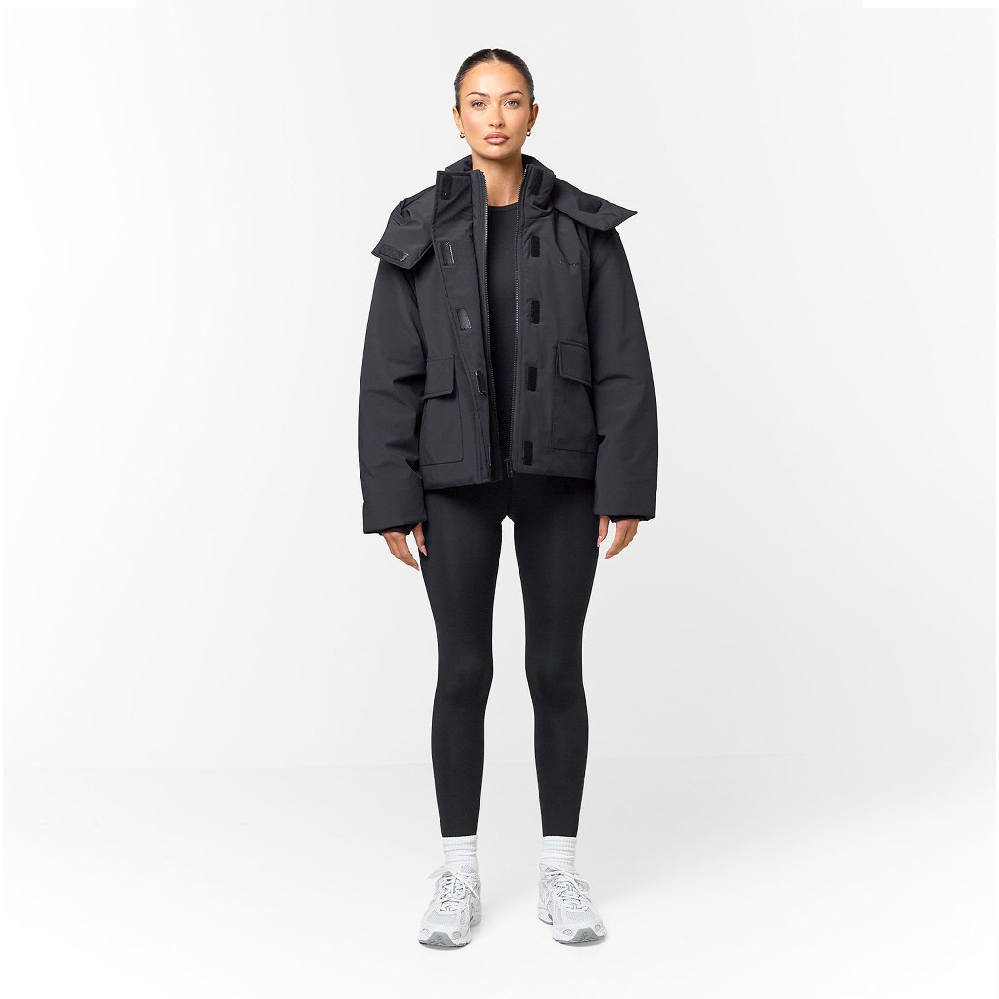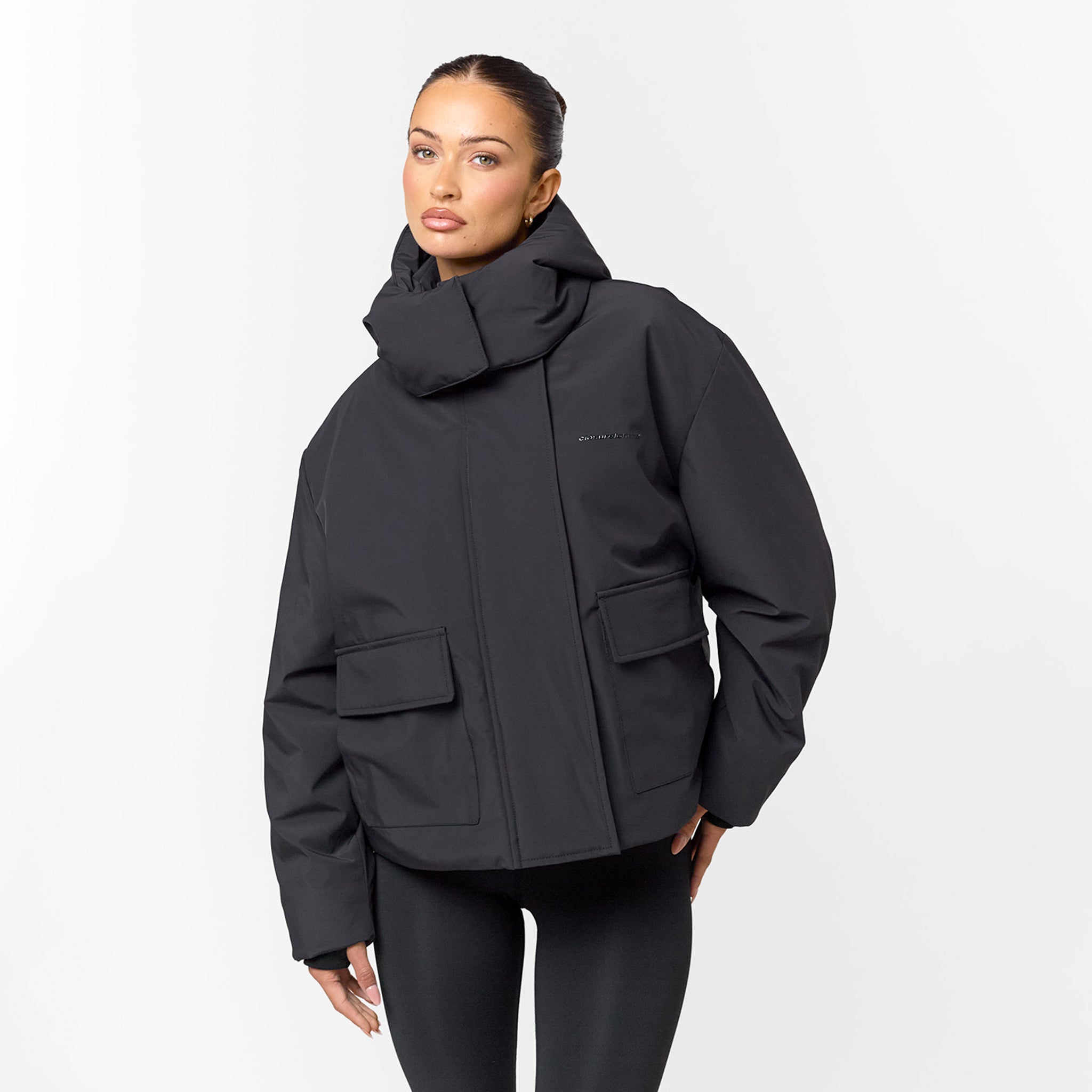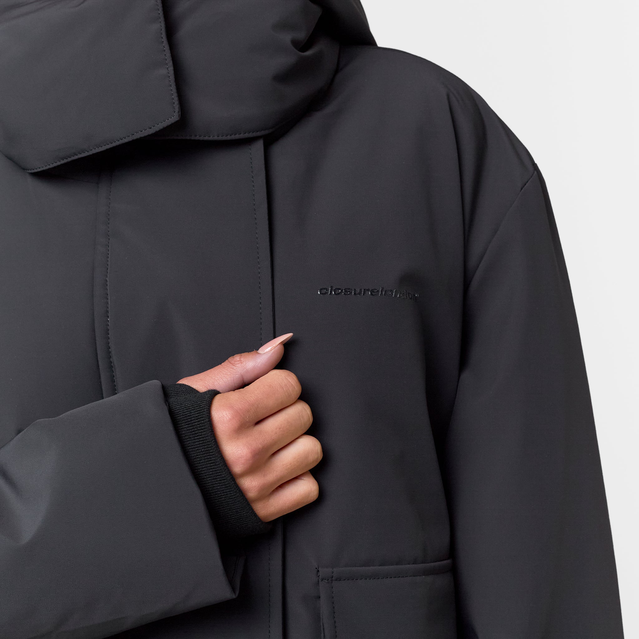 Elevate your outerwear with the Closure London Women's Elevate Padded Jacket in black, designed to give your wardrobe a modern edge. This jacket showcases a trendy cropped silhouette and a striking large funnel neck hood for maximum impact. The front features a clean finish with concealed velcro fastening and a bold wide placket on the centre front. Experience enhanced comfort and warmth from the rib storm cuffs with thumb holes, and secure your essentials in the front pockets, complete with concealed velcro flaps. Achieve your ideal fit and lock in warmth using the bungee drawcord and adjuster at the hem. Adorned with the signature Closure London chest logo, this cropped jacket is a must-have for distinctive style.