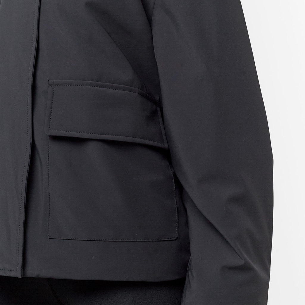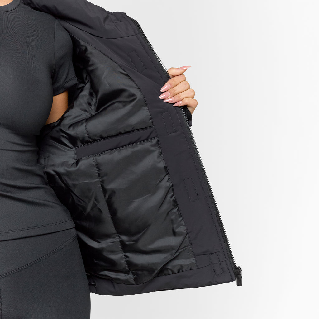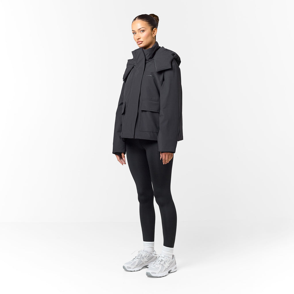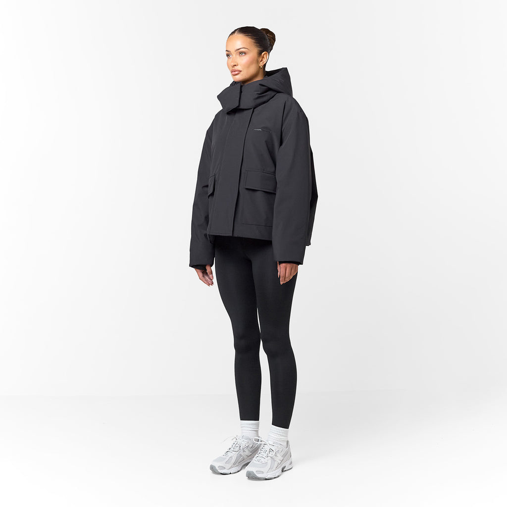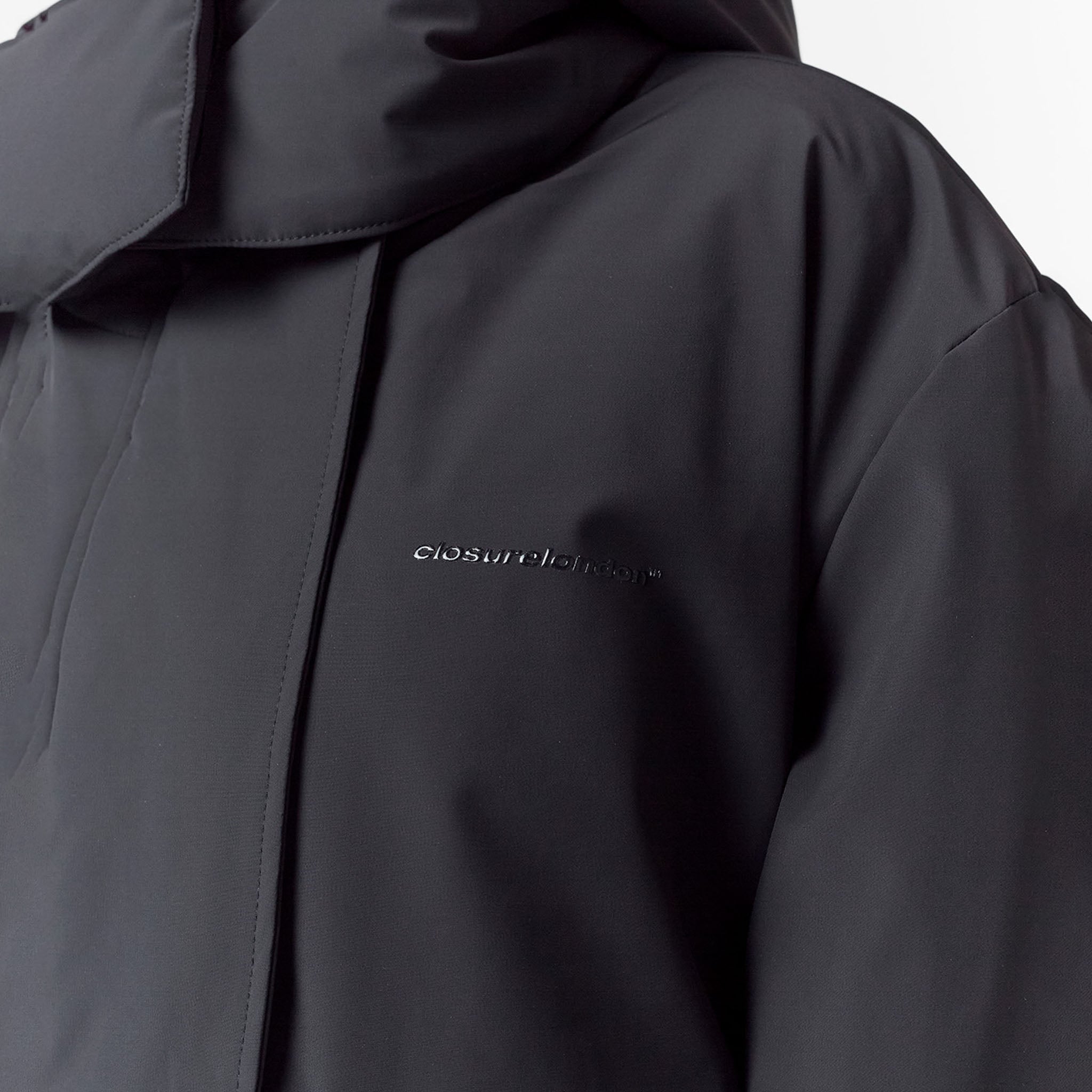 Elevate your outerwear with the Closure London Women's Elevate Padded Jacket in black, designed to give your wardrobe a modern edge. This jacket showcases a trendy cropped silhouette and a striking large funnel neck hood for maximum impact. The front features a clean finish with concealed velcro fastening and a bold wide placket on the centre front. Experience enhanced comfort and warmth from the rib storm cuffs with thumb holes, and secure your essentials in the front pockets, complete with concealed velcro flaps. Achieve your ideal fit and lock in warmth using the bungee drawcord and adjuster at the hem. Adorned with the signature Closure London chest logo, this cropped jacket is a must-have for distinctive style.