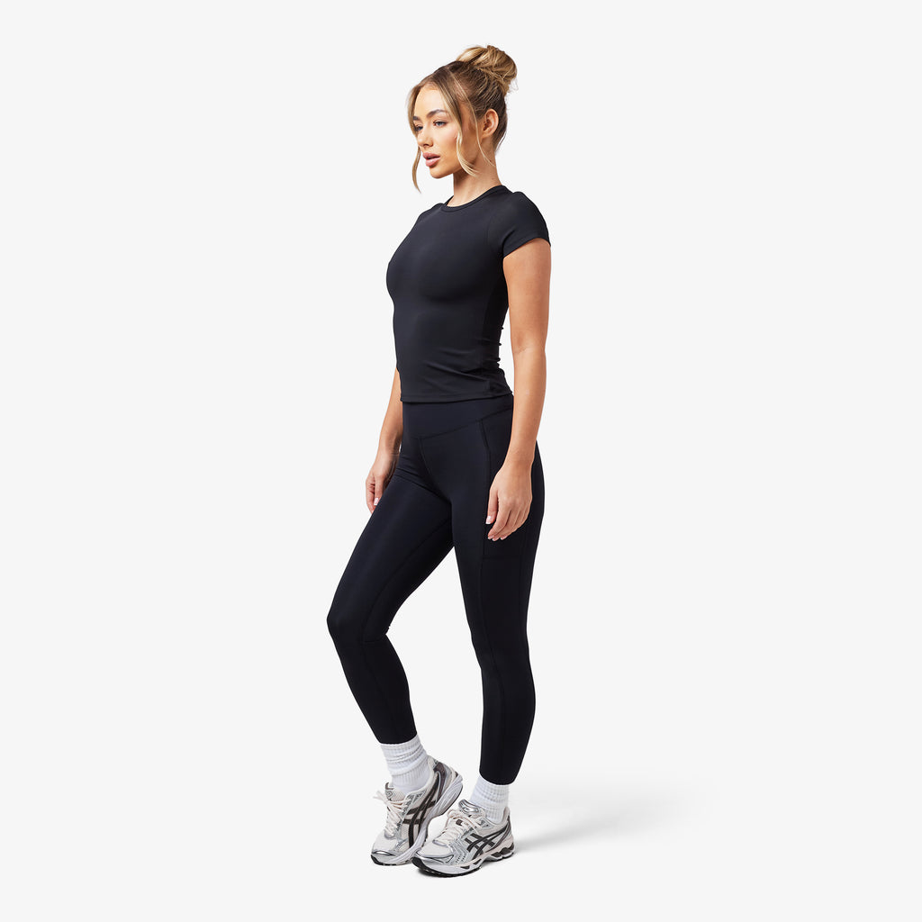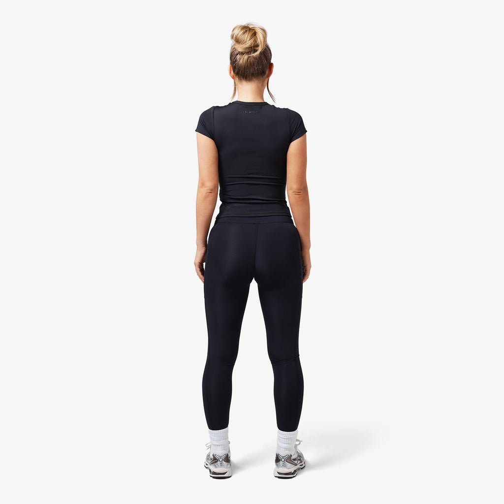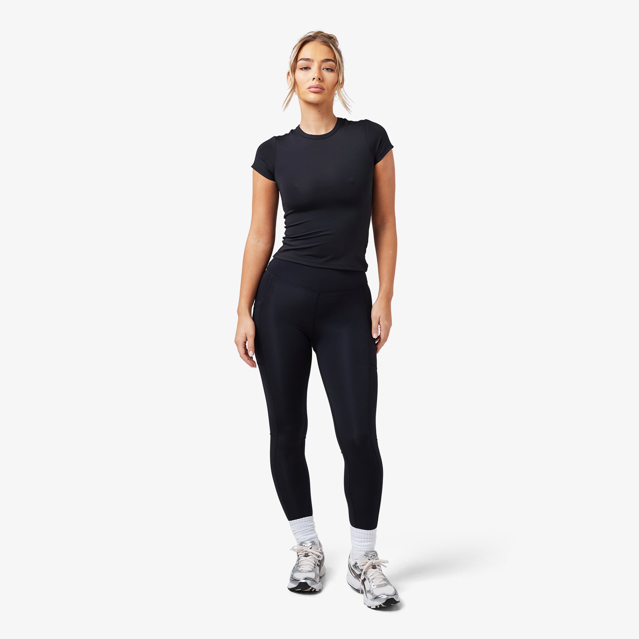 Enhance your performance with the supportive and practical Performance Pocket Legging. The compressive fit and sculpting design provide support and a flattering silhouette. The 4-way stretch fabric and squat-proof construction offer maximum flexibility and confidence during workouts. A double-layer waistband provides added comfort and support, while the cut and sew side panels add a touch of style. A convenient side pocket offers storage for essentials, and a silver reflective logo enhances visibility.