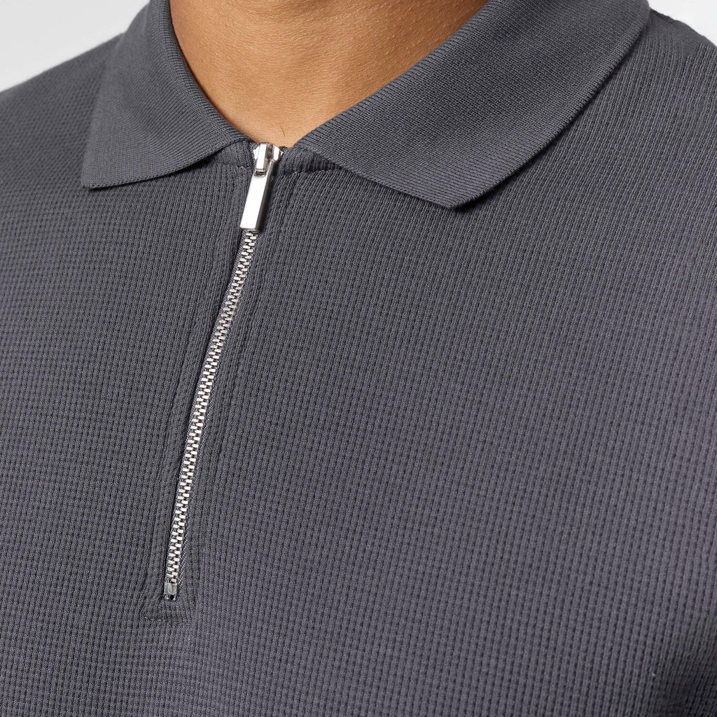 The Waffle Zipped Polo is a modern take on a classic style, combining comfort and functionality. Crafted from a premium waffle knit fabric, this polo offers a relaxed fit and a soft hand feel.