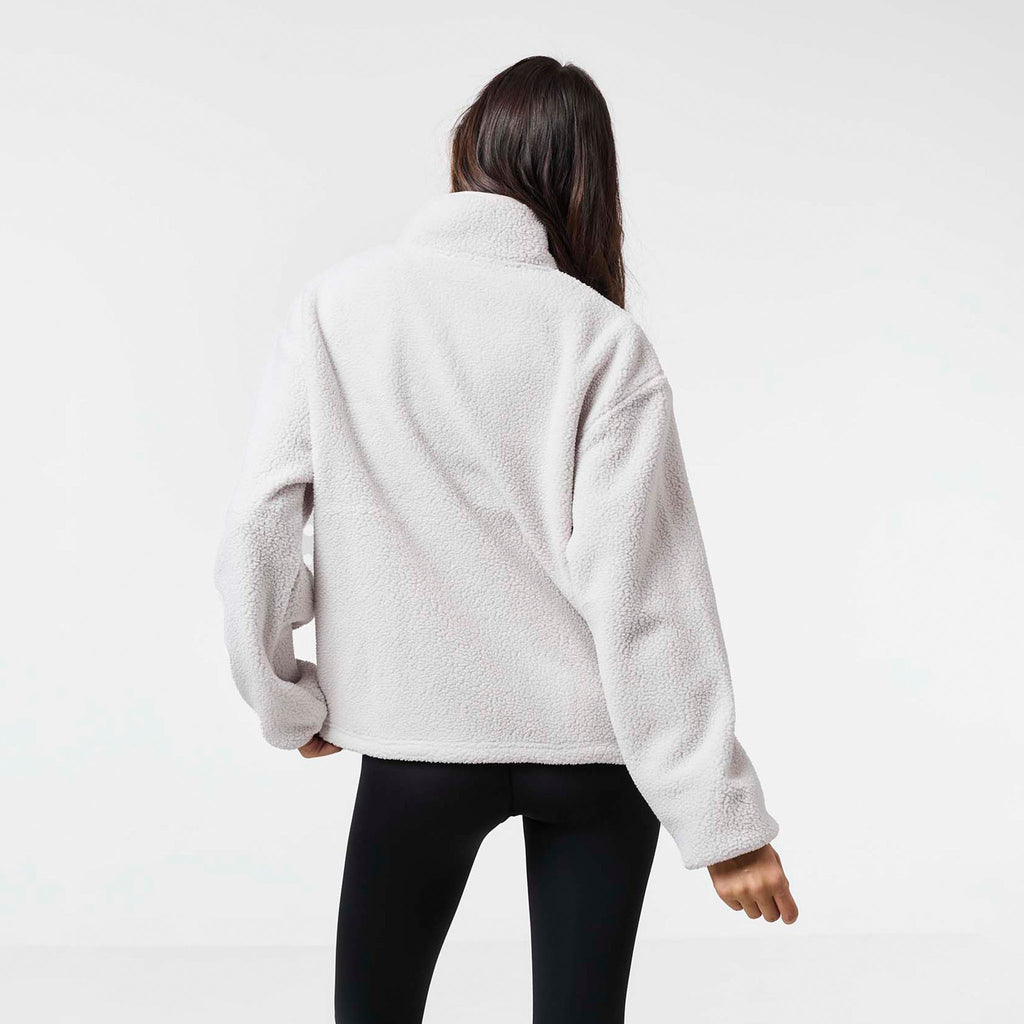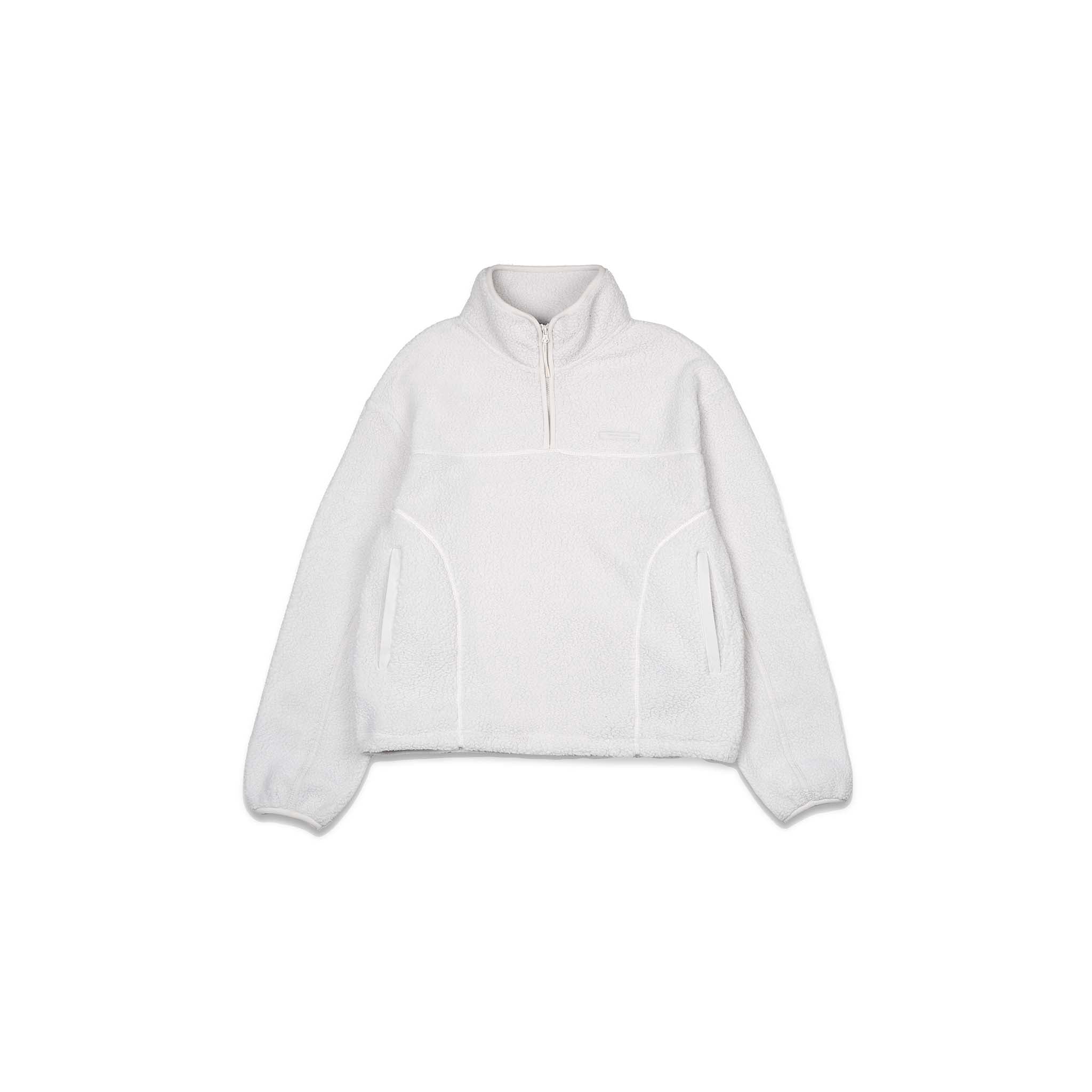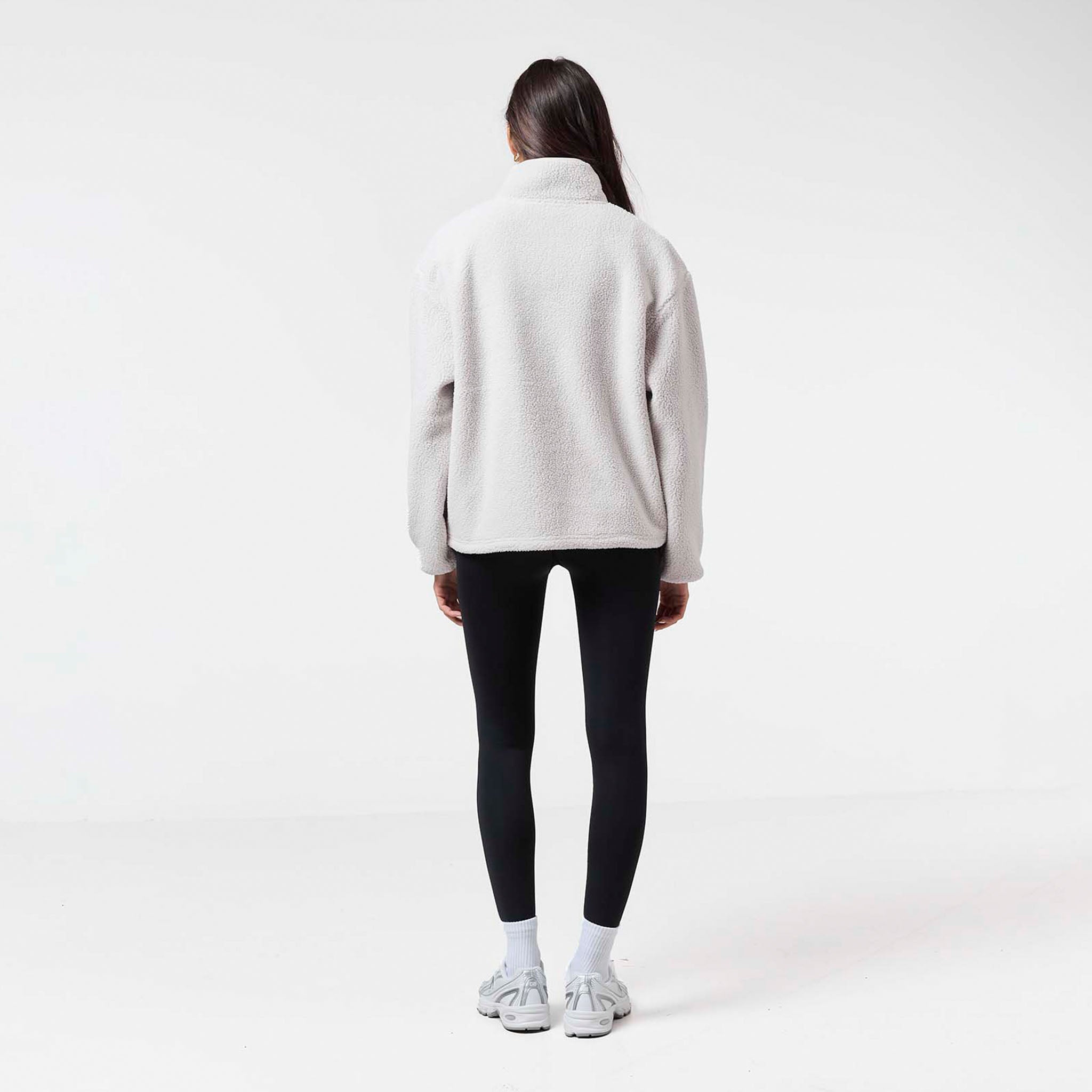 Introducing the Closure London Women's 1/4 Zip Borg Fleece in off white, your new go-to for cosy style. Crafted from sumptuously soft sherpa fleece, this piece is designed for ultimate comfort and warmth. It features a convenient 1/4 zip fastening and a refined self-fabric collar with binding. The distinctive front yoke and flat lock seams give it a modern edge, while contrast fabric welt zip pockets offer secure storage with a stylish flair. Adjust your fit easily with the toggle adjusters, and appreciate the added detail of contrast binding on the cuff and sleeve. Finished with a subtle yet authentic Closure London branded rubber badge, this 1/4 zip fleece is perfect for both lounging and venturing out.