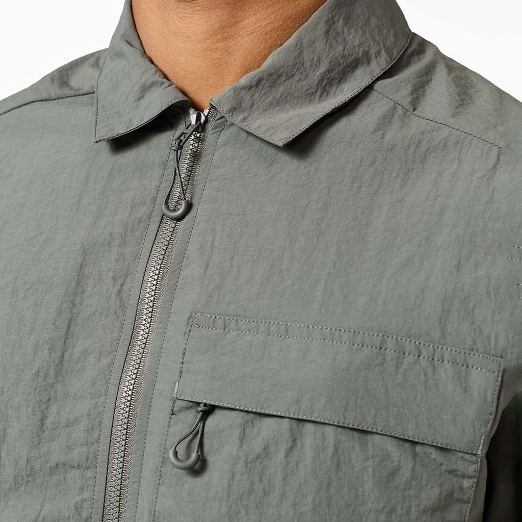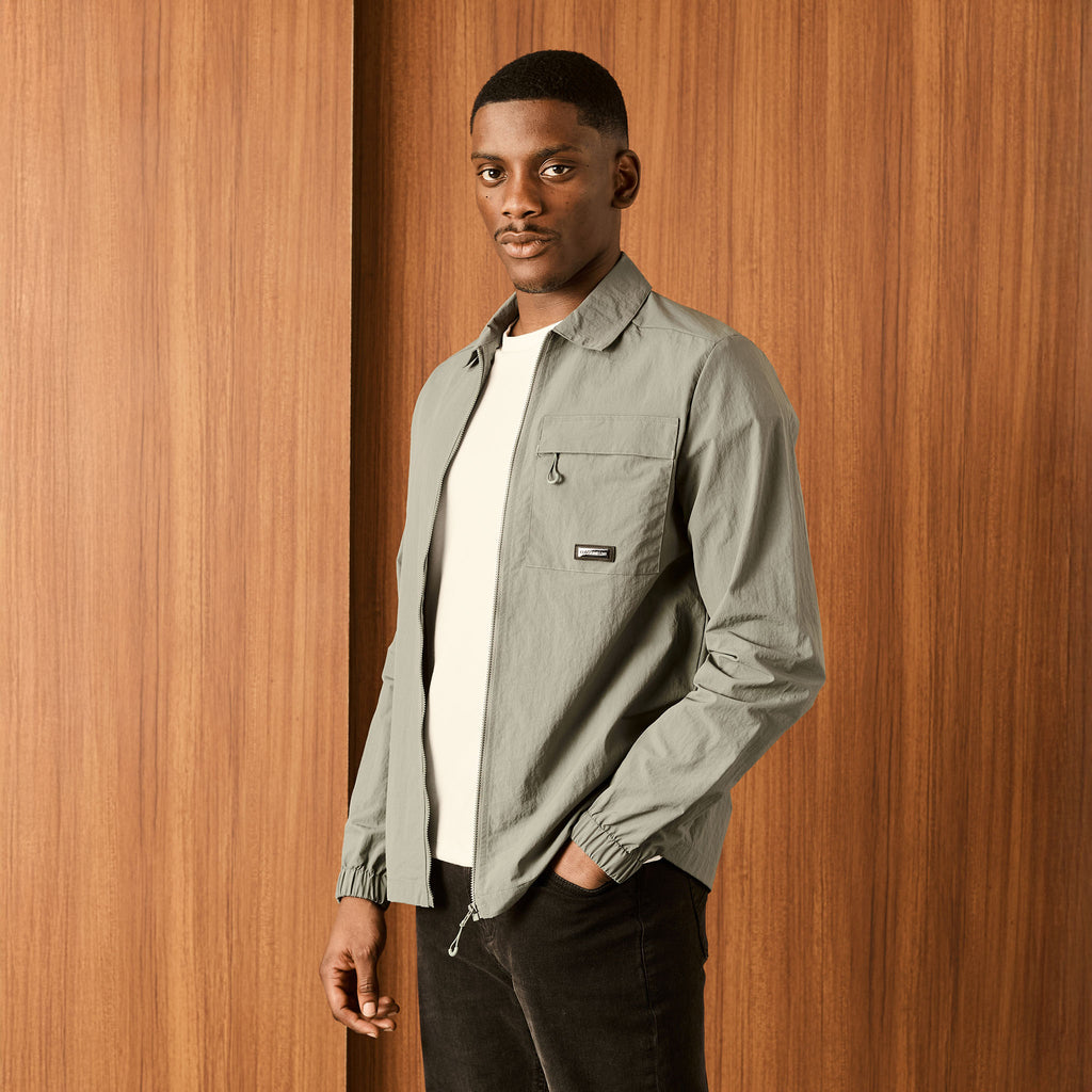 Introducing the Crinkle Nylon Tech Overshirt. This versatile overshirt features a relaxed fit and a distinctive crinkle nylon design that adds a unique texture and dimension. Crafted from 100% nylon, this lightweight overshirt is both durable and breathable, making it perfect for layering during transitional seasons.
