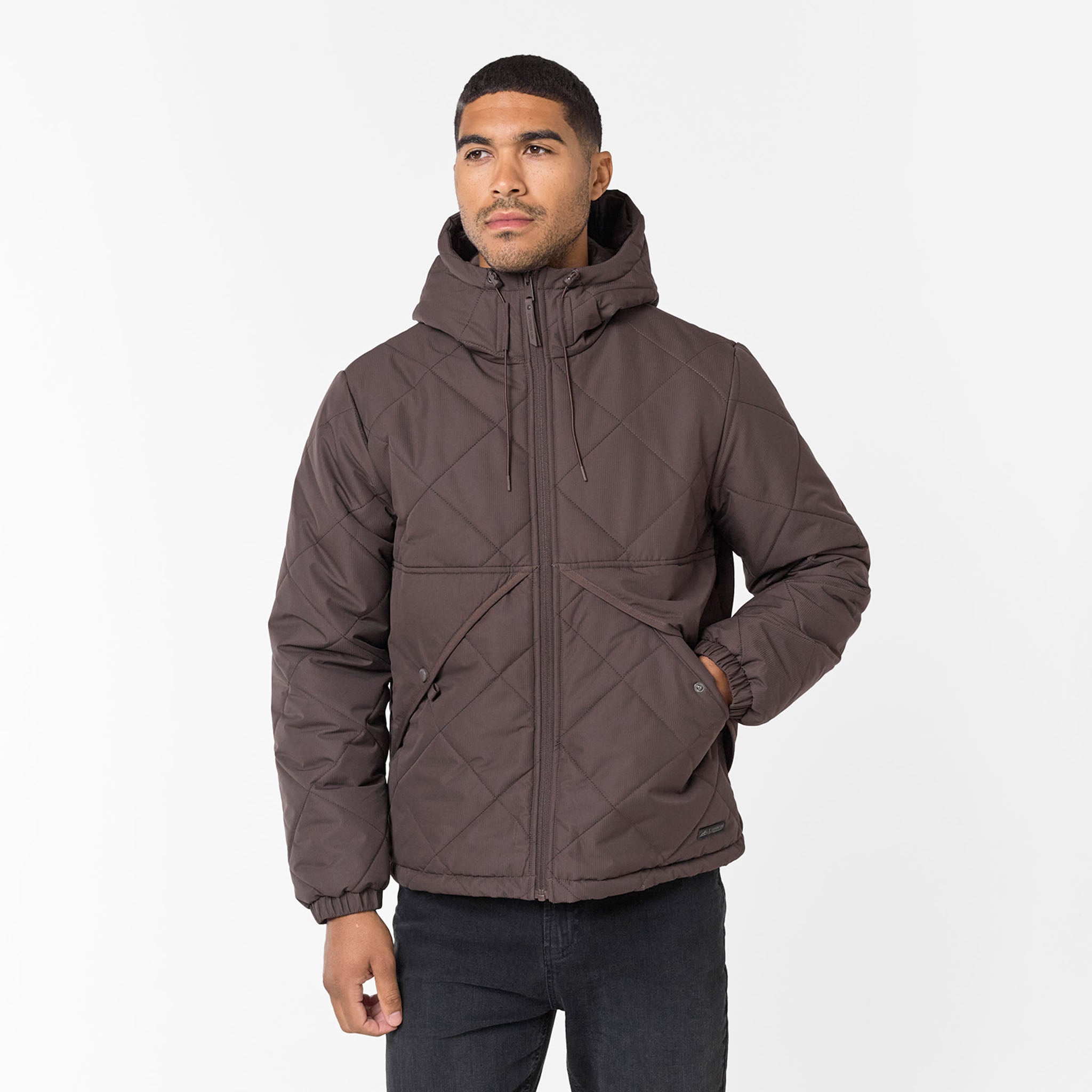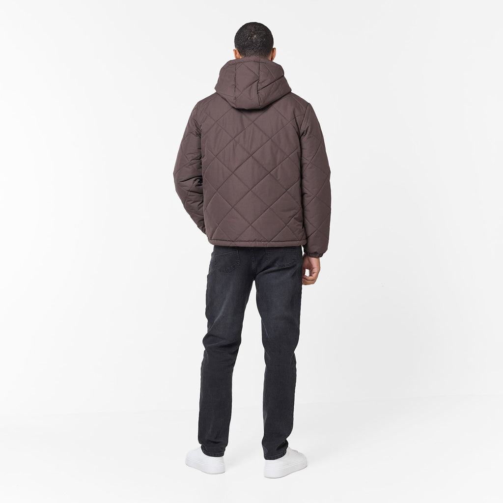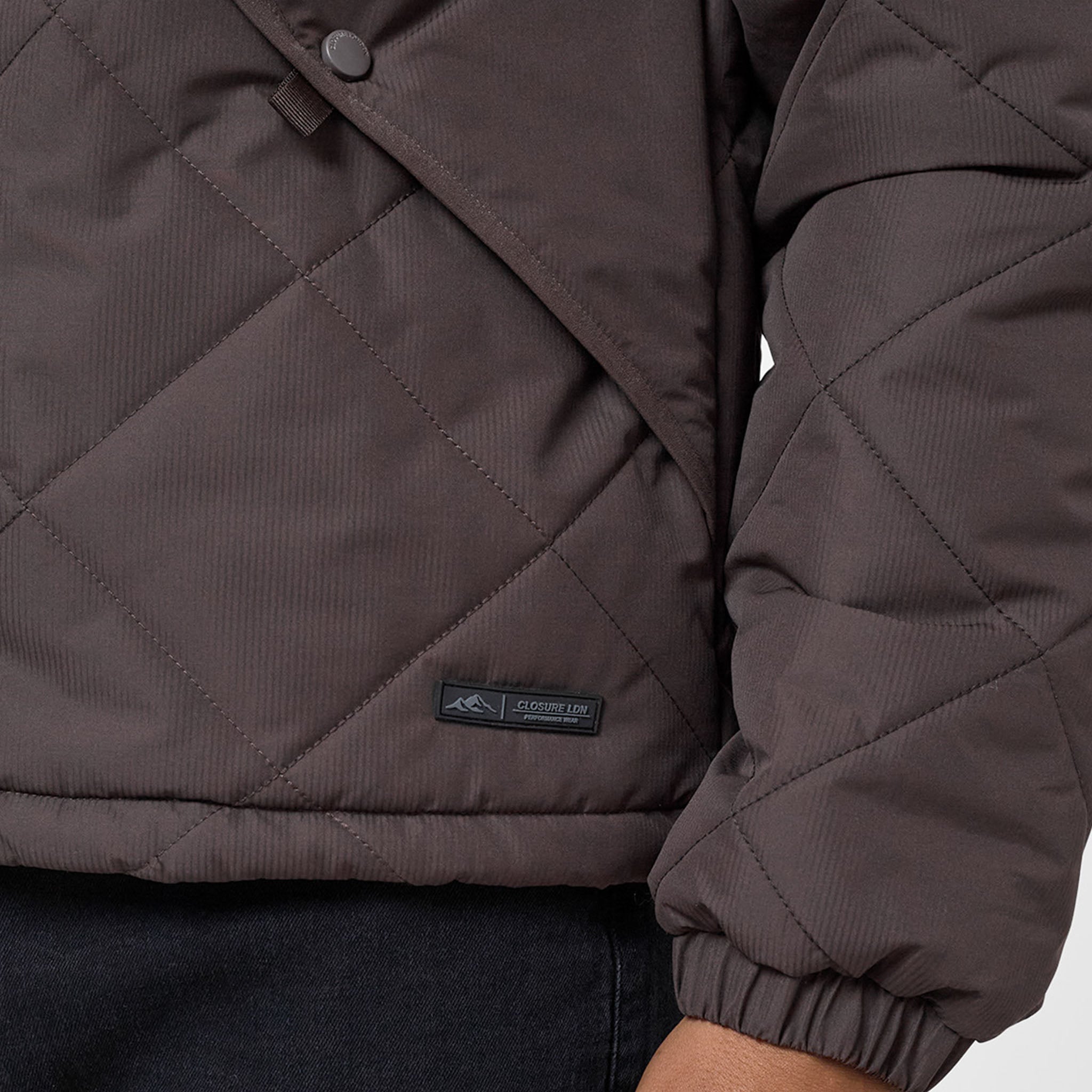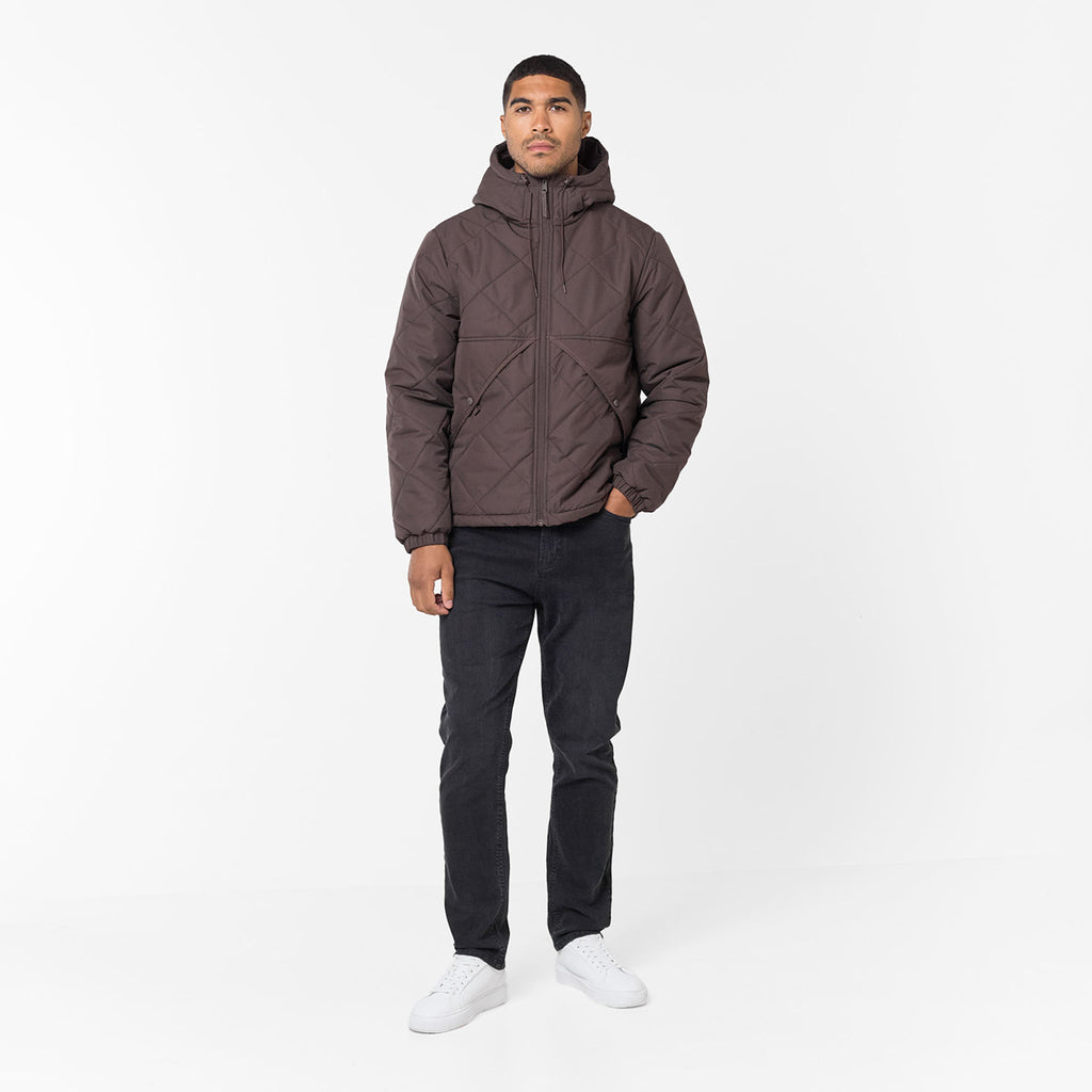 Discover the perfect blend of classic style and modern warmth with our men's diamond quilted puffer jacket in brown. It boasts a comfortable 3-piece panel lined hood and an eye-catching diamond quilted design that sets it apart. Every detail is crafted for quality and convenience, from the rubber zip puller with its high-build logo to the prominent Closure branded rubber badge at the hem. The sleek reverse nylon zip contributes to its refined look, while flap pockets with branded binding offer practical and secure storage. Customise your fit with the strap at the cuff featuring a branded press stud and the bungee cord with adjuster at the hem. An internal welt pocket provides a secure spot for essentials, and the self-turn hem adds a clean, polished finish.