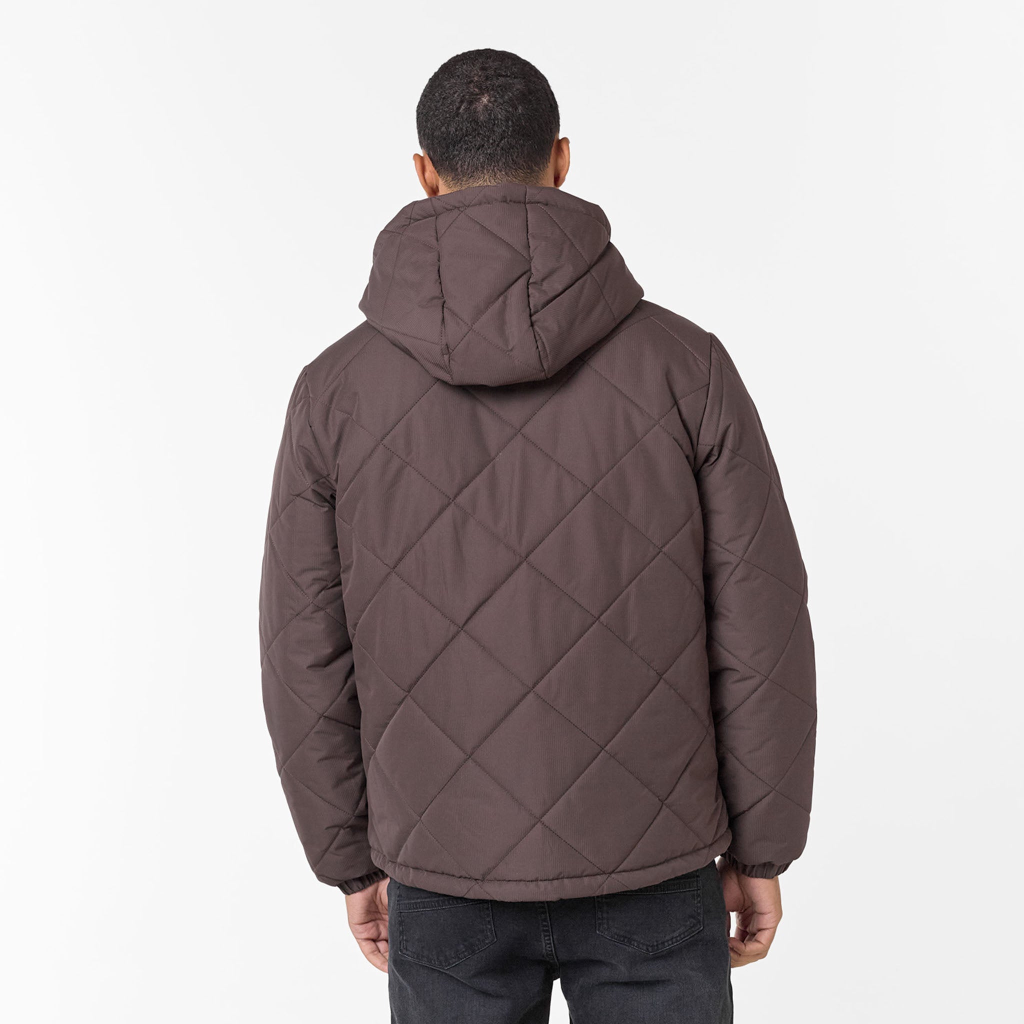 Diamond Quilted Pocket Puffer Jacket | Brown