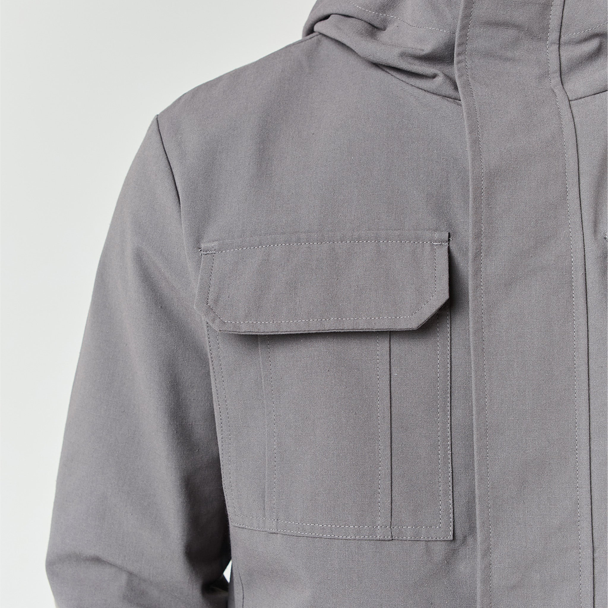 Introducing the Premium Ripstop Cargo Jacket. This modern take on a classic Parka design is a versatile and durable piece designed for everyday wear. Crafted from a robust poly-cotton ripstop fabric, this jacket offers a relaxed fit for comfortable layering. With its multiple pockets and functional details, it's perfect for those who value both style and practicality.