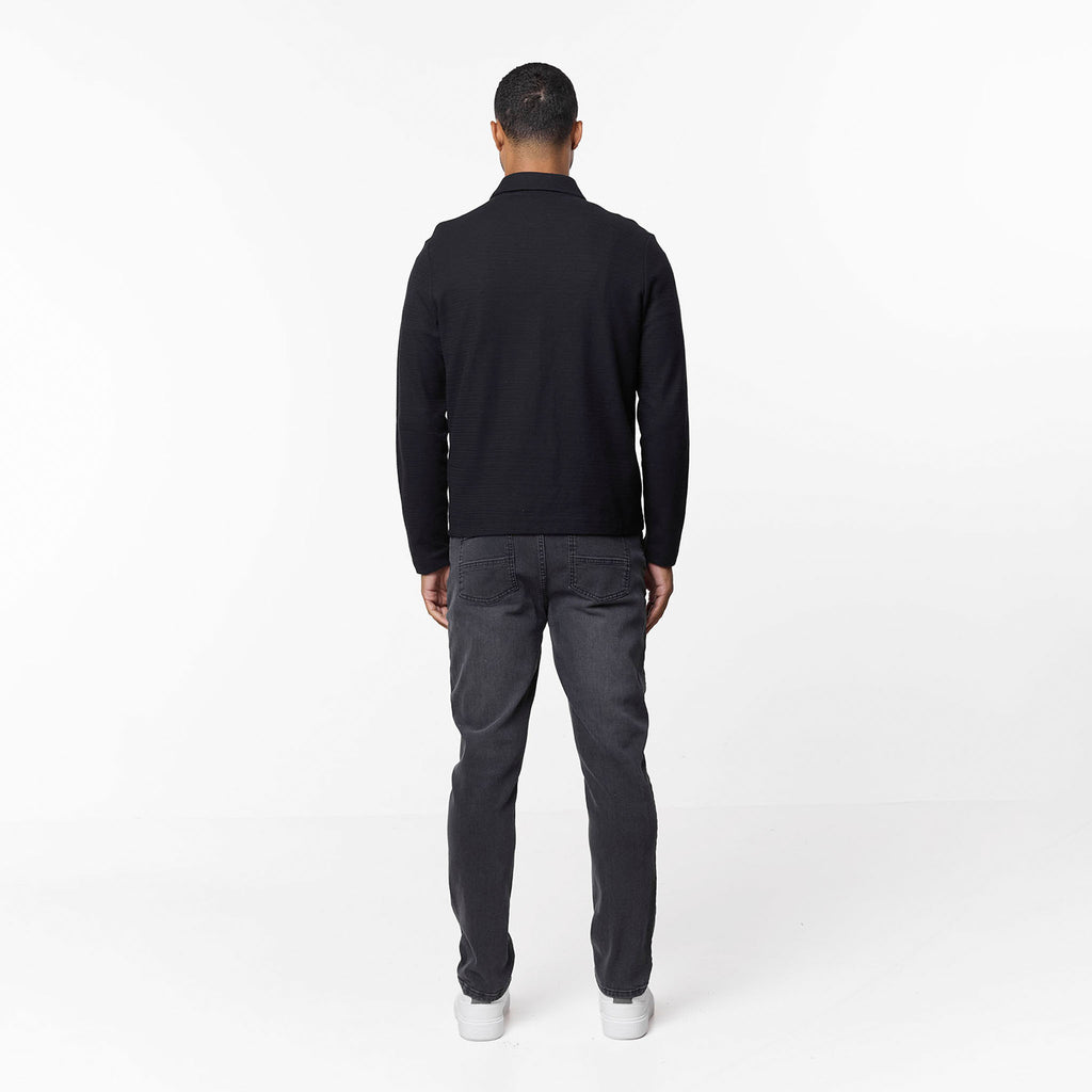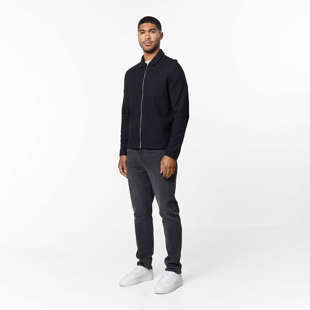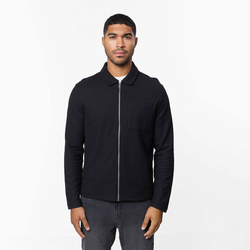 Tonal Knit Zip Overshirt | Black