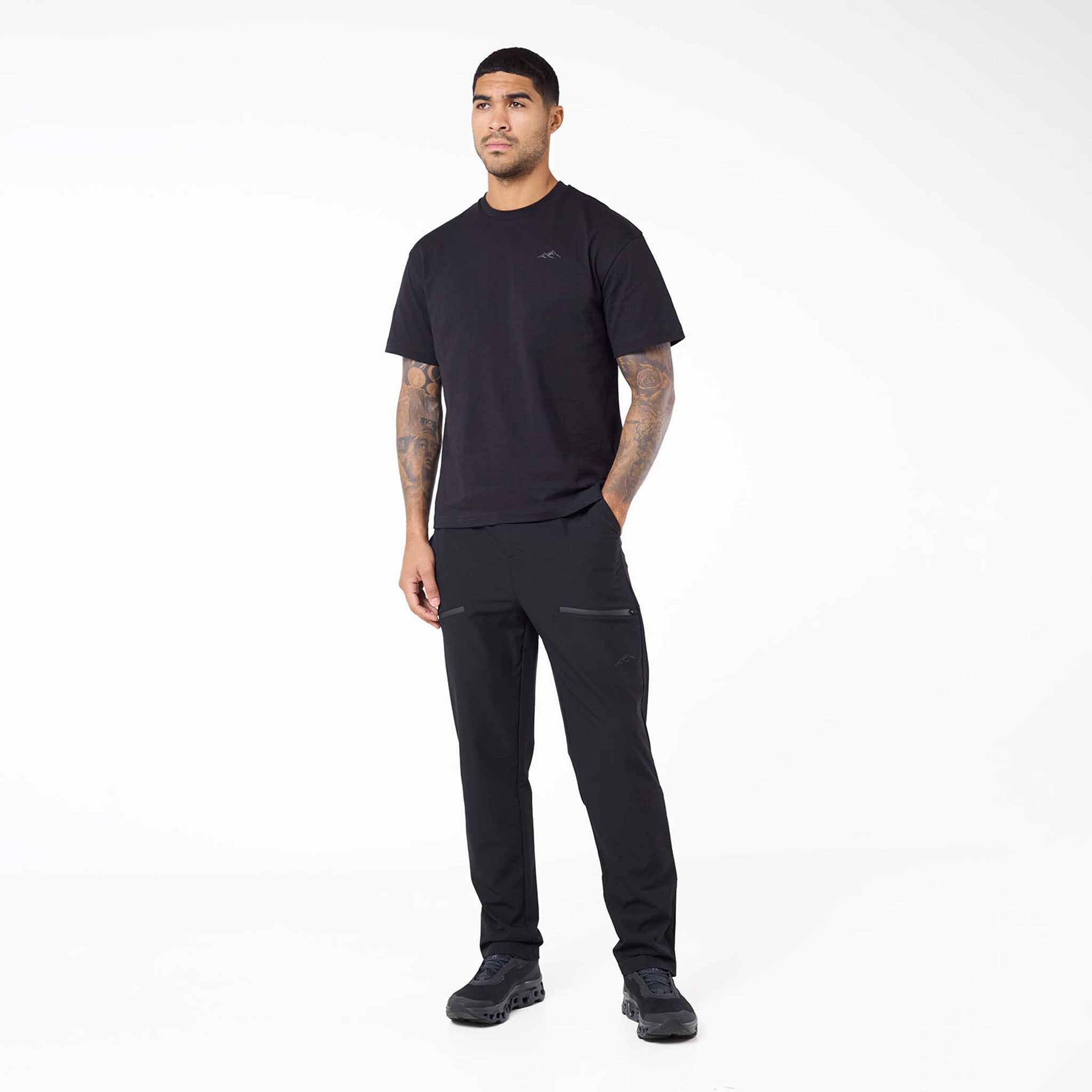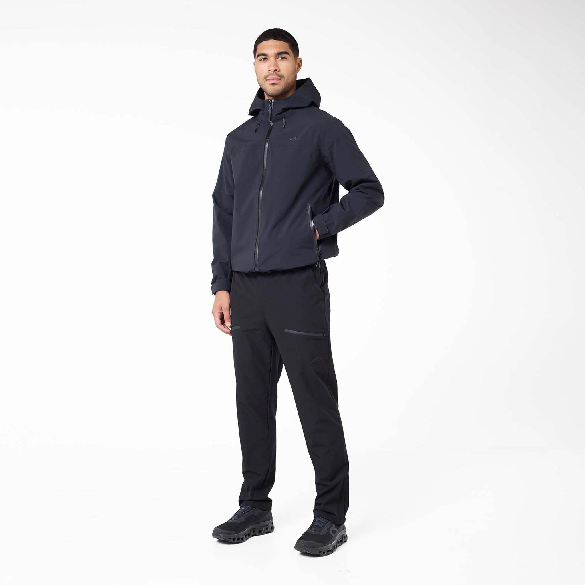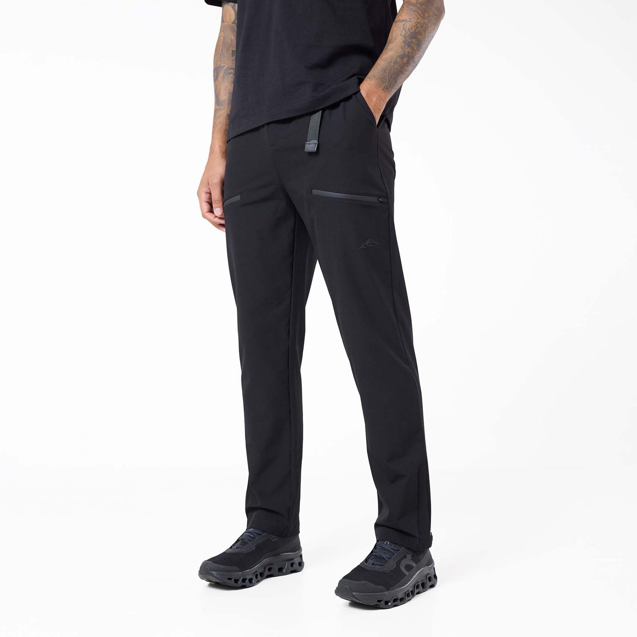 Gear up for your next adventure with our versatile Trail Outdoor Pants in black. Designed for both durability and comfort, these pants are your ideal companion for exploring. They feature a secure plastic buckle fastening and an integrated belt at the waistband with self-fabric belt loops for a perfect fit. You'll find ample storage with a self-fabric welt zip pocket, two spacious self-fabric cargo pockets completed with a Closure London branded logo, and convenient slanted pockets. A stylish cut and sew panel adds to their modern aesthetic. Keep your essentials safe in the self-fabric rear welt zip pocket. For easy on-and-off over footwear, the hems include zips with autolock zip pullers.