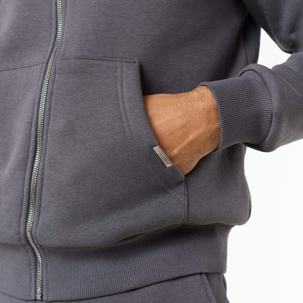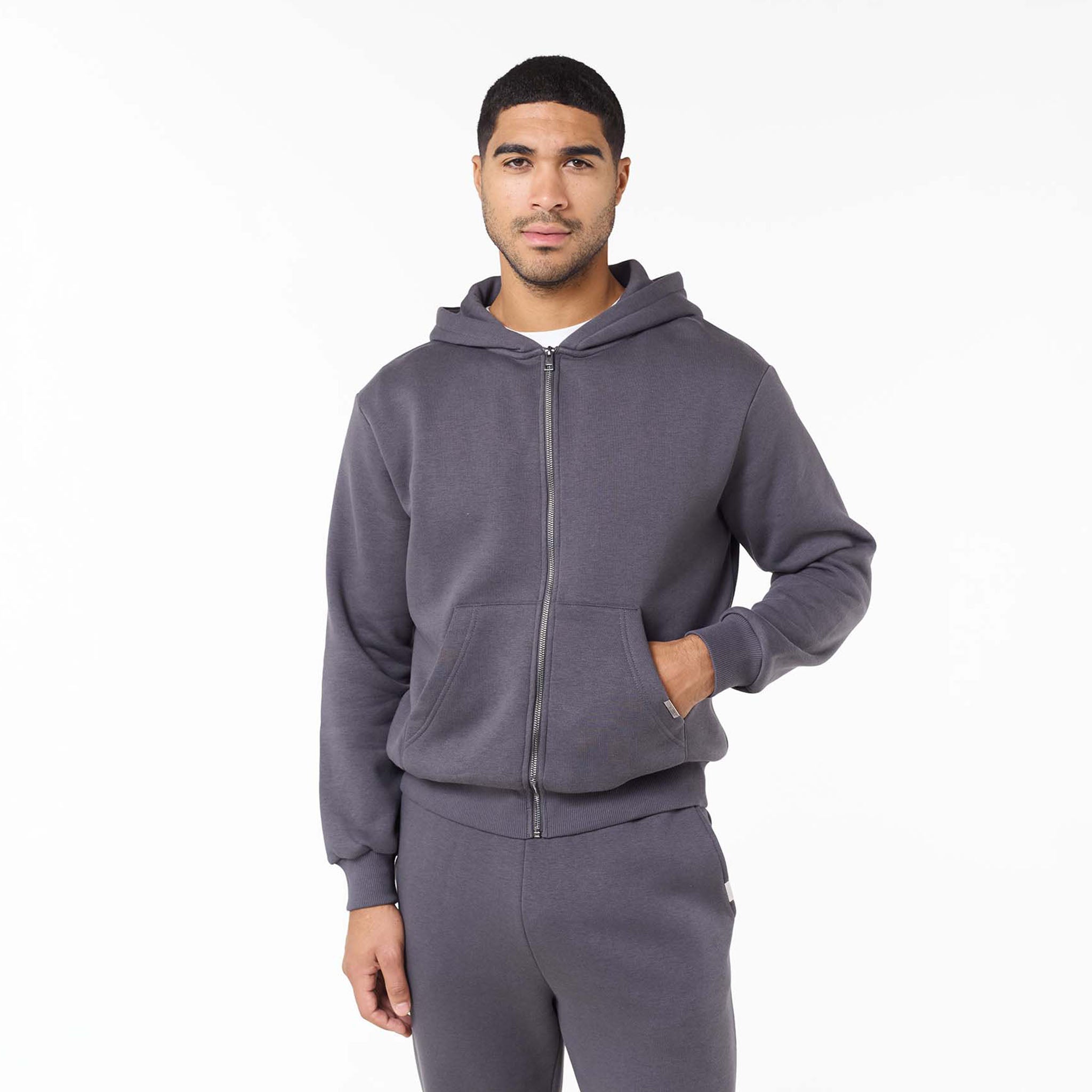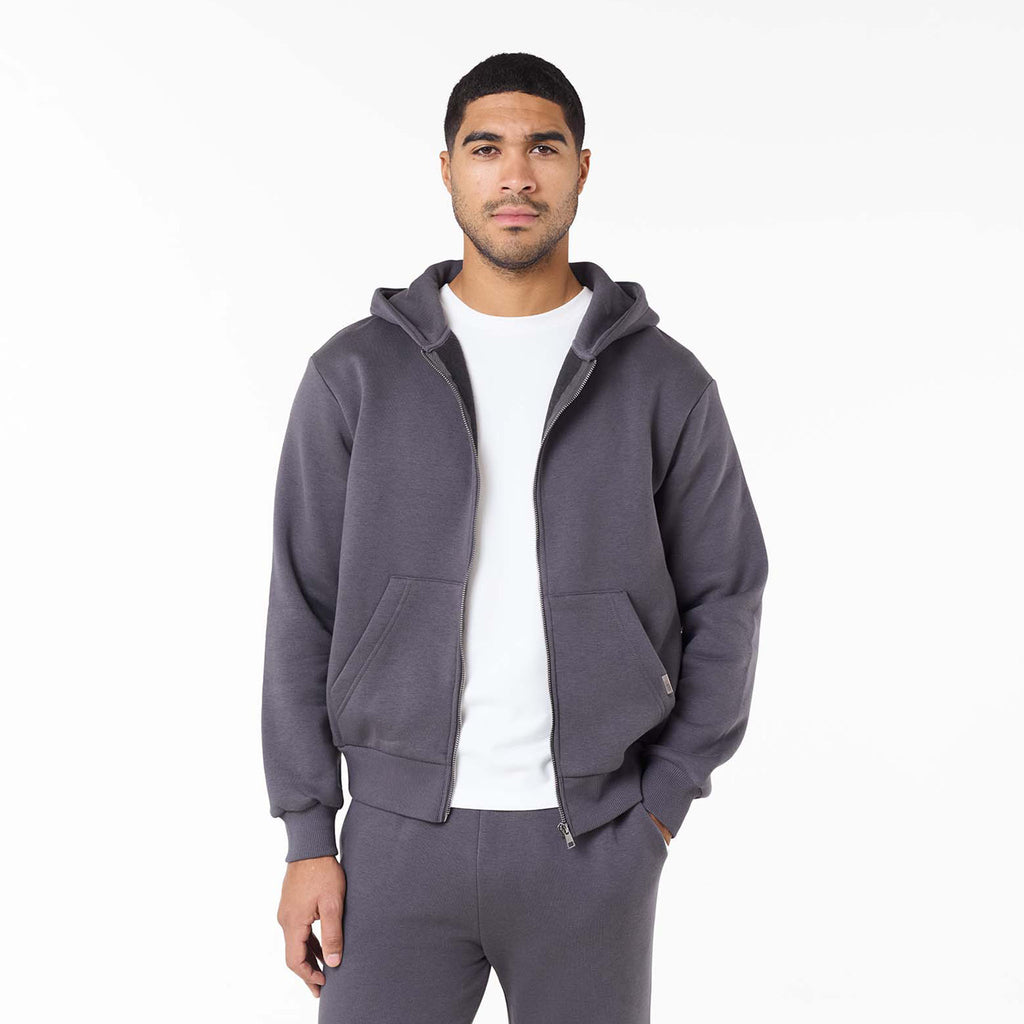 Introducing the Relaxed Full Zip Hoodie in an Iron Grey shade. Unwind in ultimate comfort and elevate your look with the Relaxed Full Zip Hoodie. This premium hoodie seamlessly blends contemporary design with luxurious materials, making it the perfect companion for relaxation, casual outings, or even hitting the gym.
