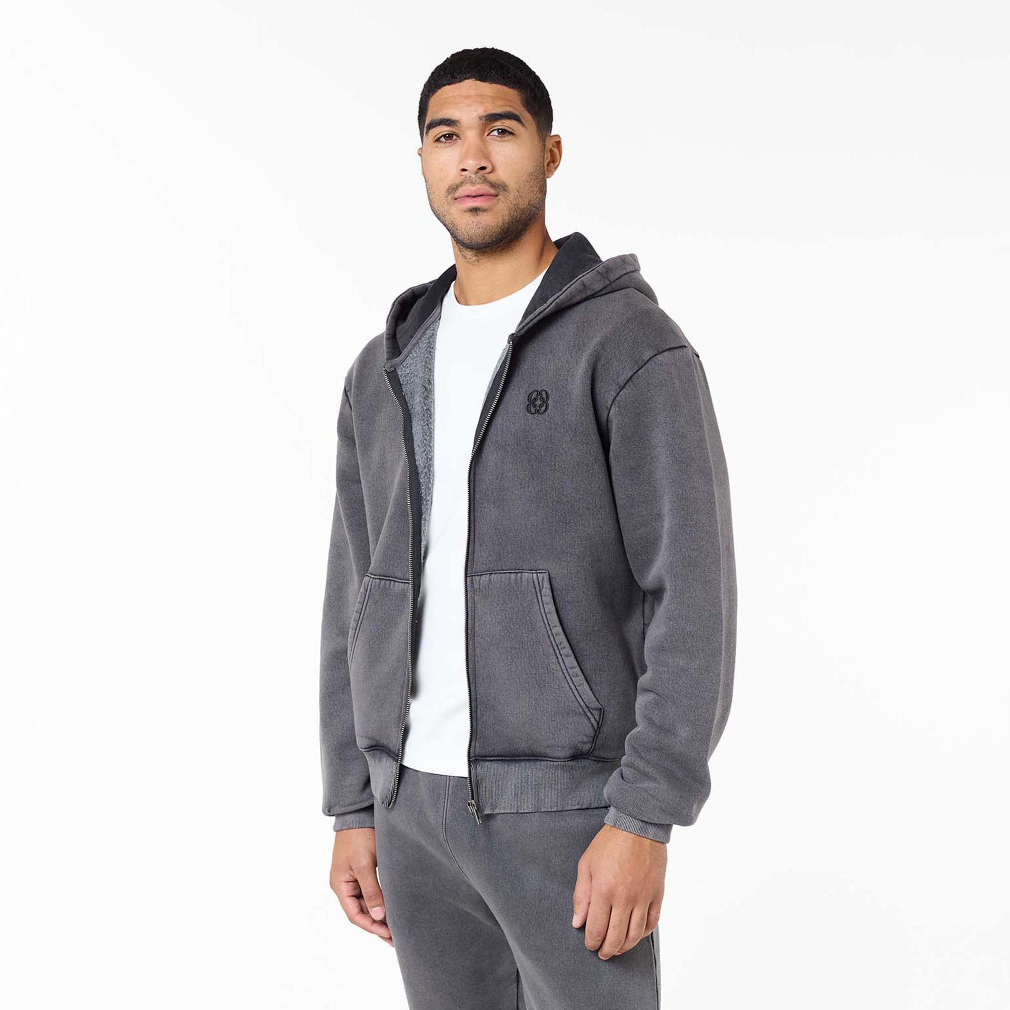 Relaxed Full Zip Icon Hoodie | Washed Black