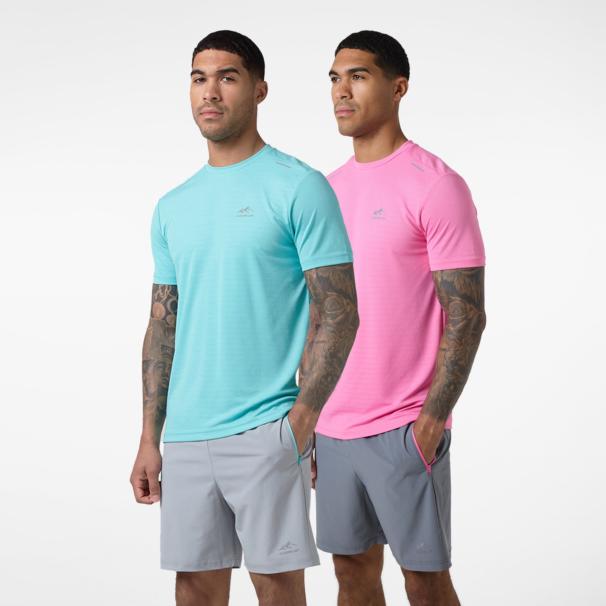 Be ready for your workout schedule with the Training Poly Twinset Duo. Featuring both the Training Twinset Aqua & Training Twinset Pink. Each training twinset includes a breathable poly t-shirt and matching shorts, ensuring you stay cool and comfortable from warm-up to cool-down. The crewneck tee features a forward-facing shoulder seam for effortless movement and reflective darts for visibility. The poly bi-stretch shorts offer unrestricted movement with an elasticated waistband and drawstring, a secure contrast zip pocket, and a stylish, flexible cut and sew panel.