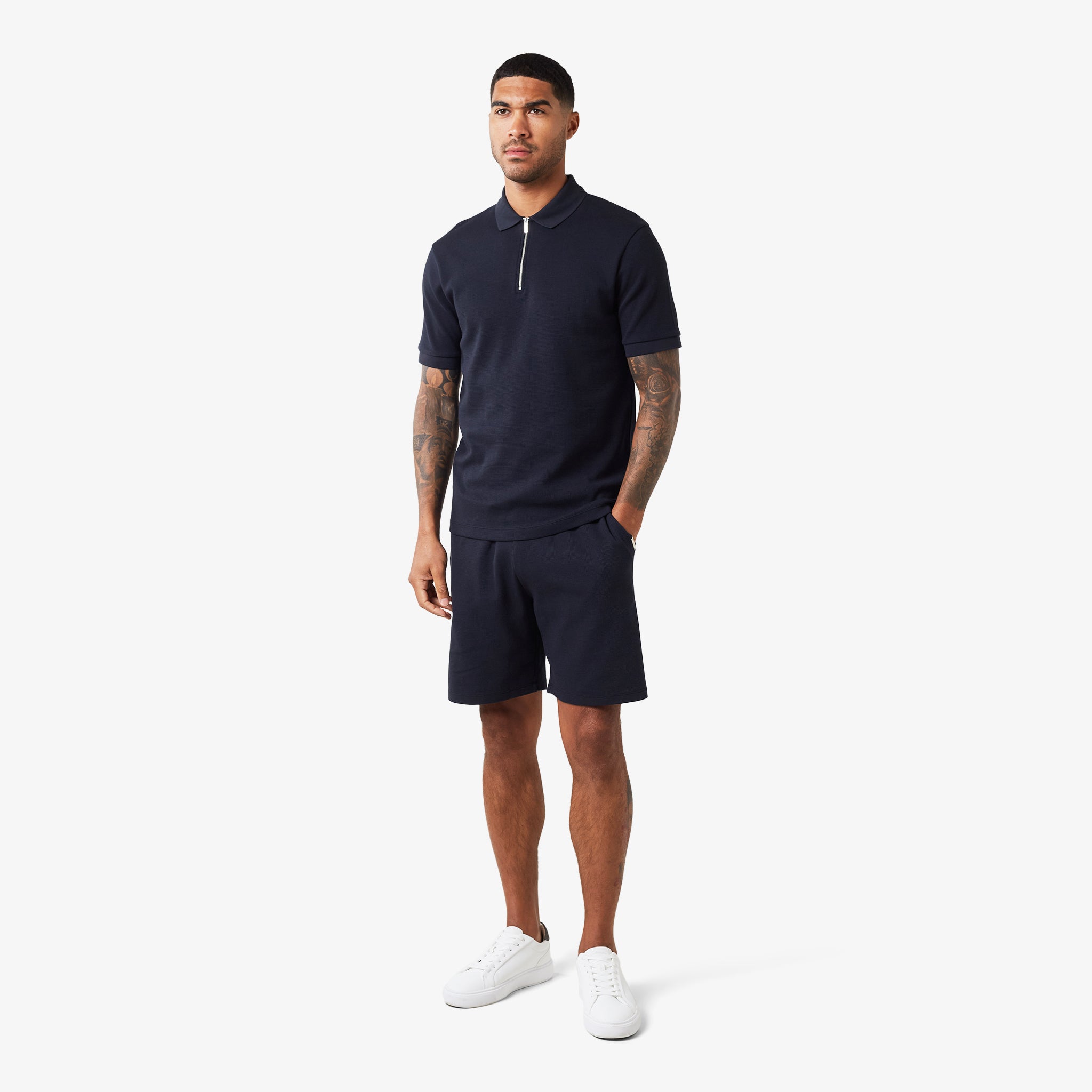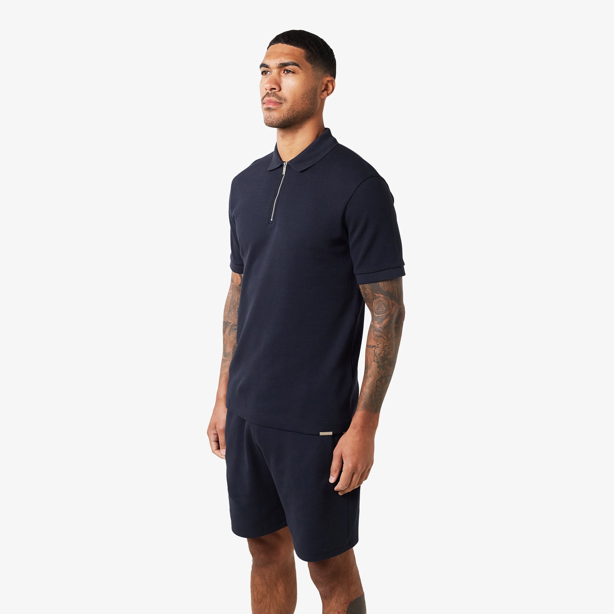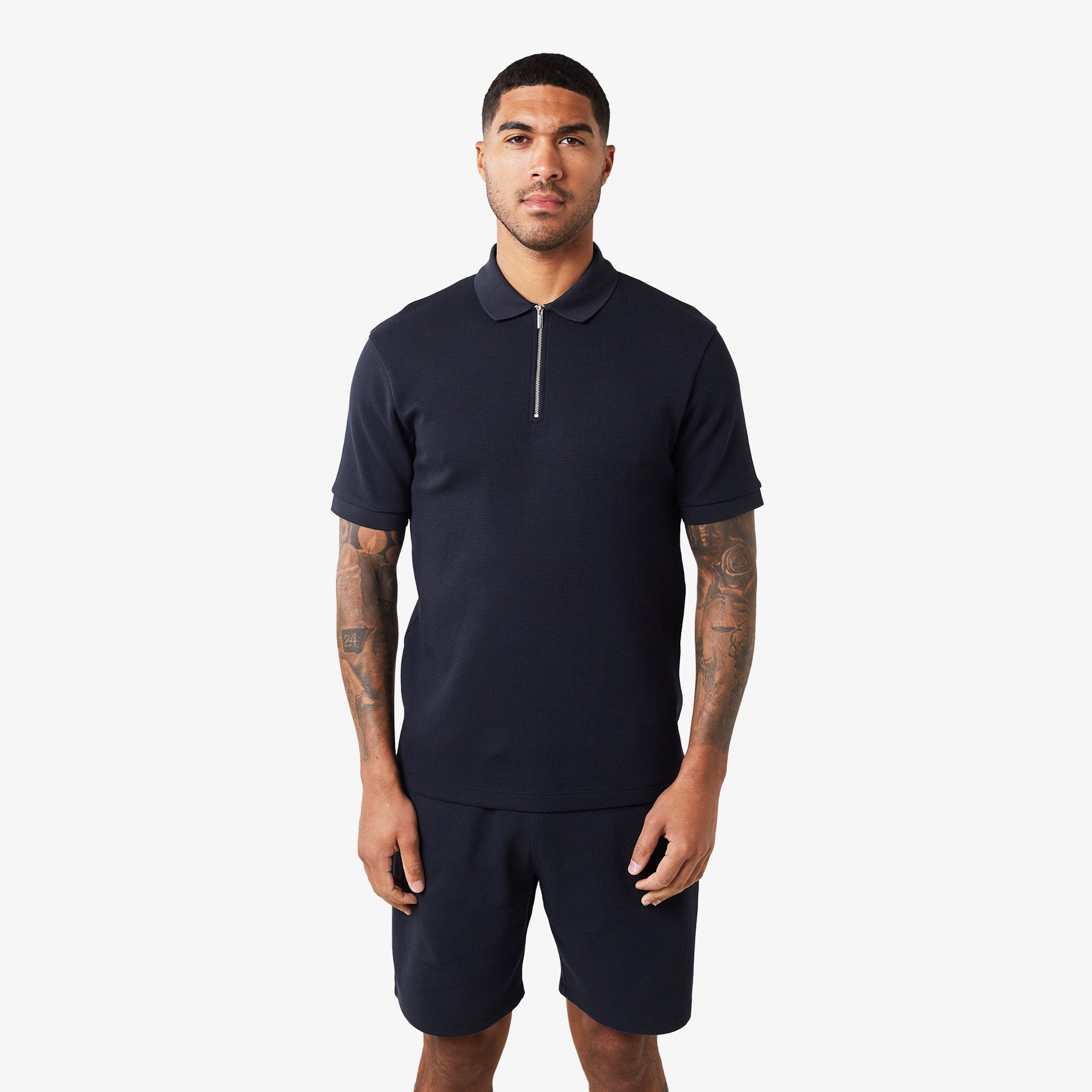 The Waffle Zipped Polo is a modern take on a classic style, combining comfort and functionality. Crafted from a premium waffle knit fabric, this polo offers a relaxed fit and a soft hand feel.