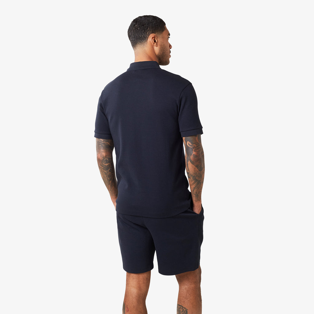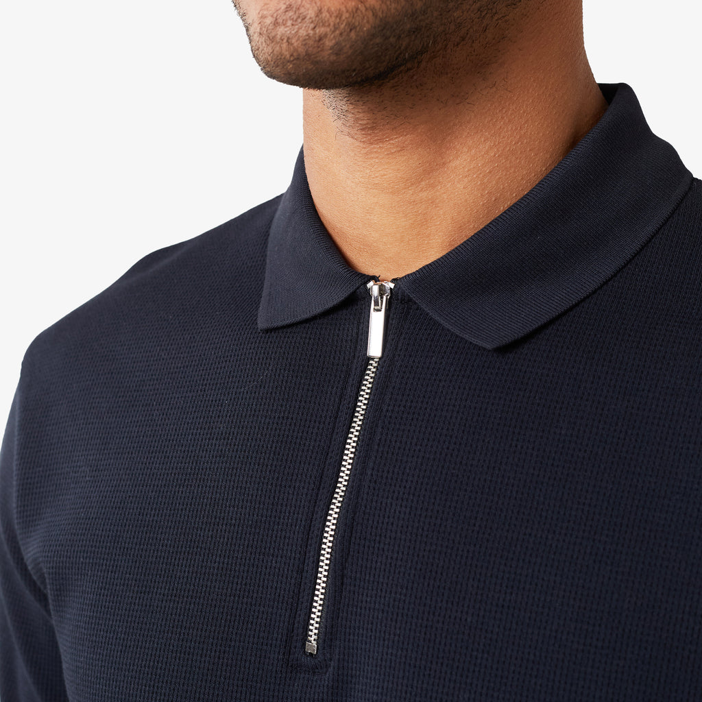 Waffle Knit Zip Polo | Dark Navy