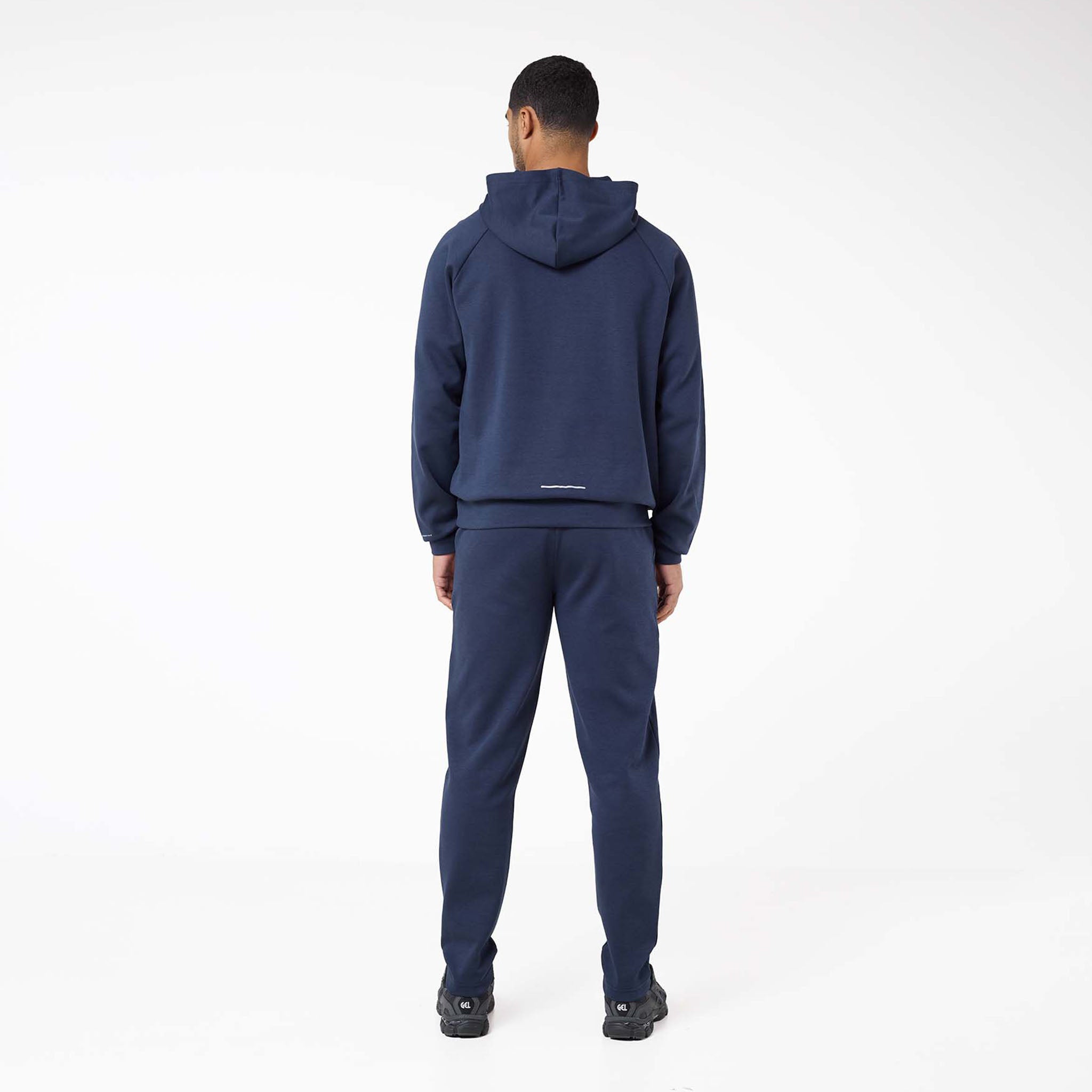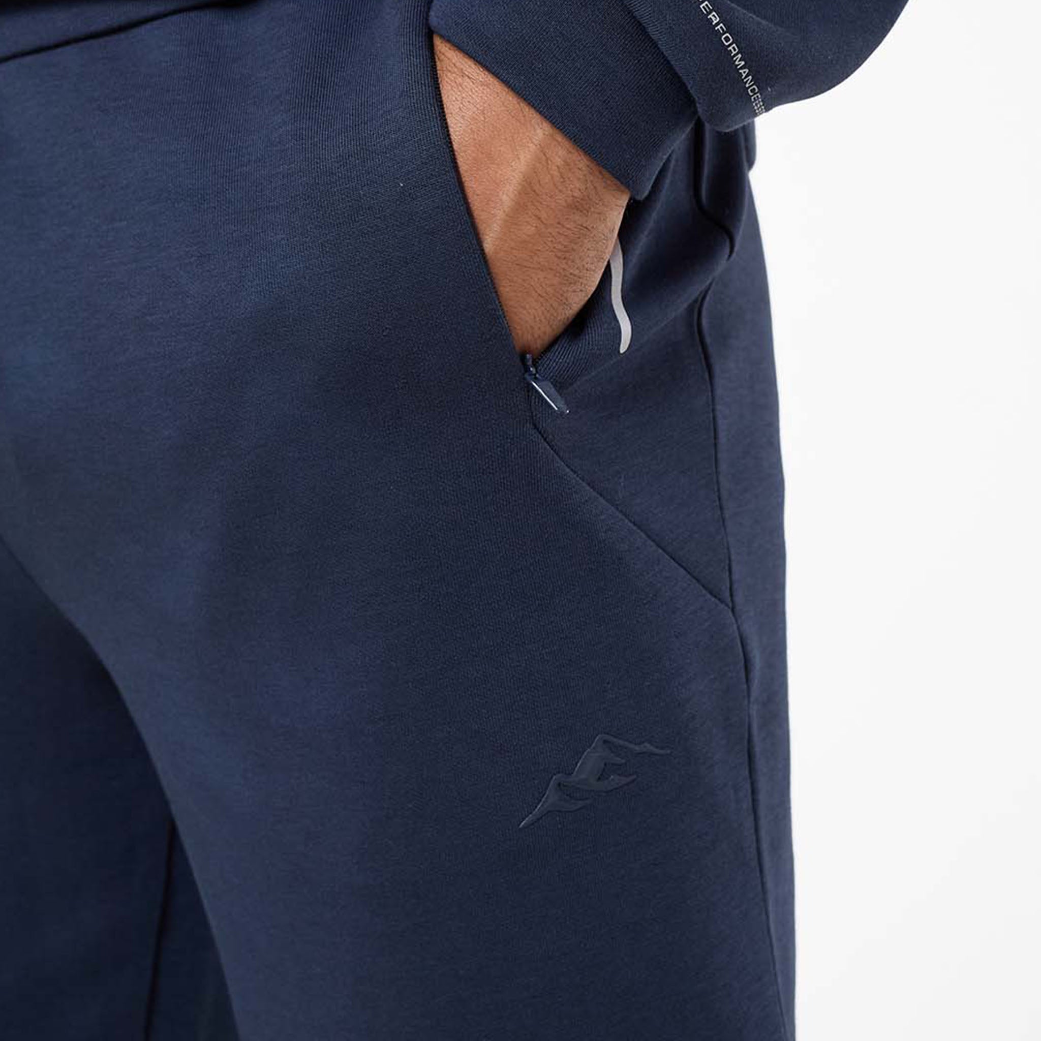 Discover the Apex Interlock Open Hem Pant in a modern navy shade. Made for comfort, these joggers feature a relaxed open hem fit, an elasticated waistband, and a concealed internal drawcord for a custom fit. They include practical side slanted pockets with concealed zips and a mini autolock puller to secure your belongings. A standout rubber high-build print logo on the leg offers a unique touch. Pair them with the matching hoodie for a complete and cohesive look.