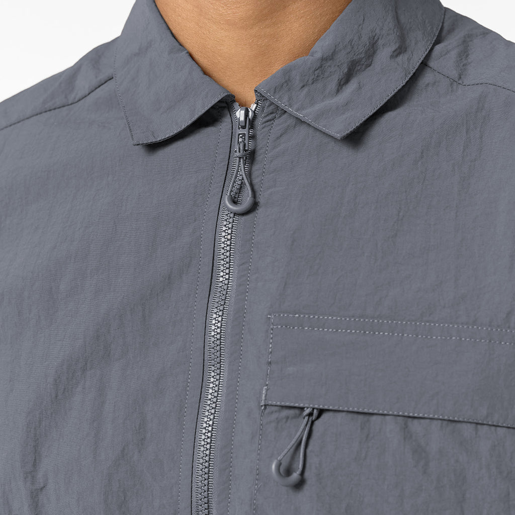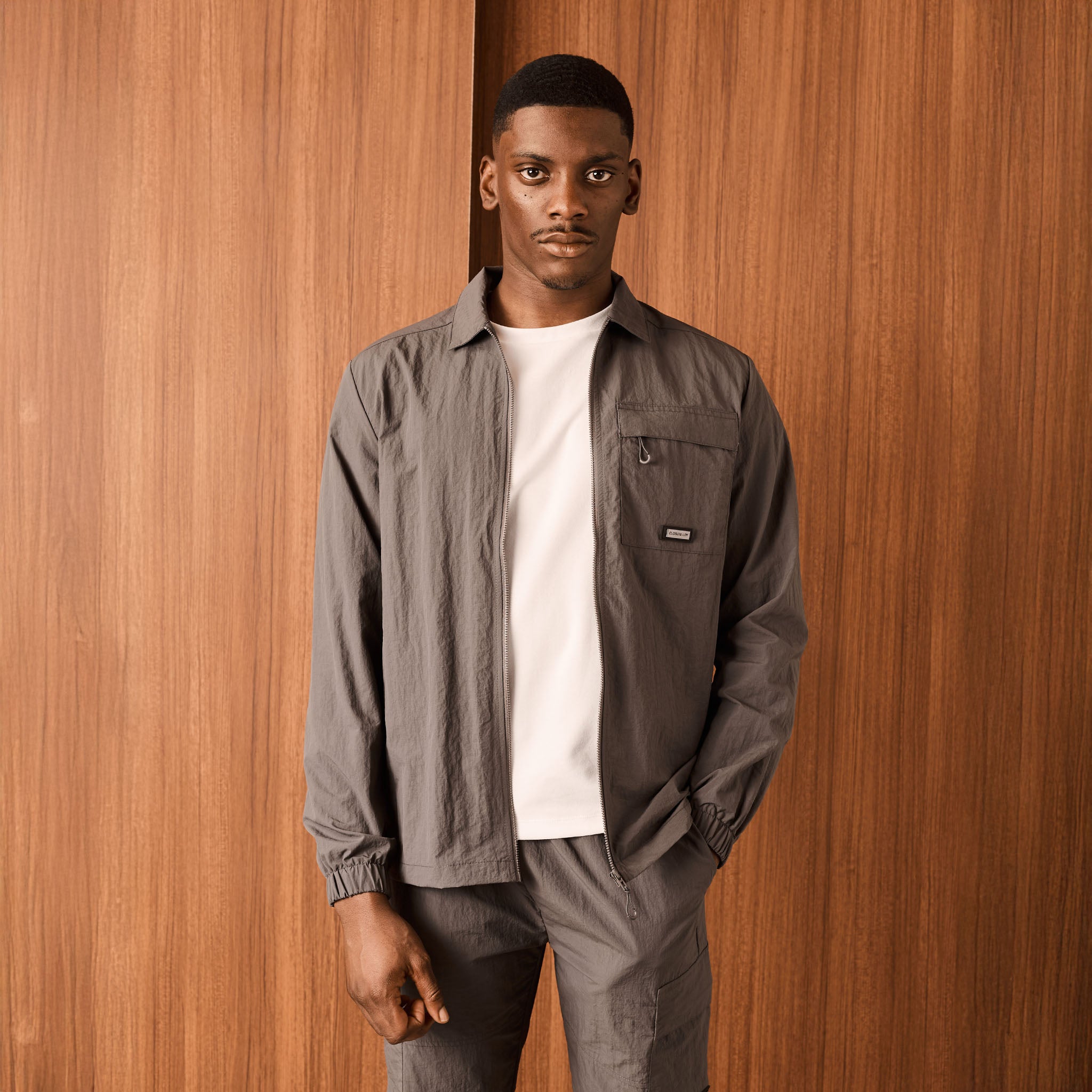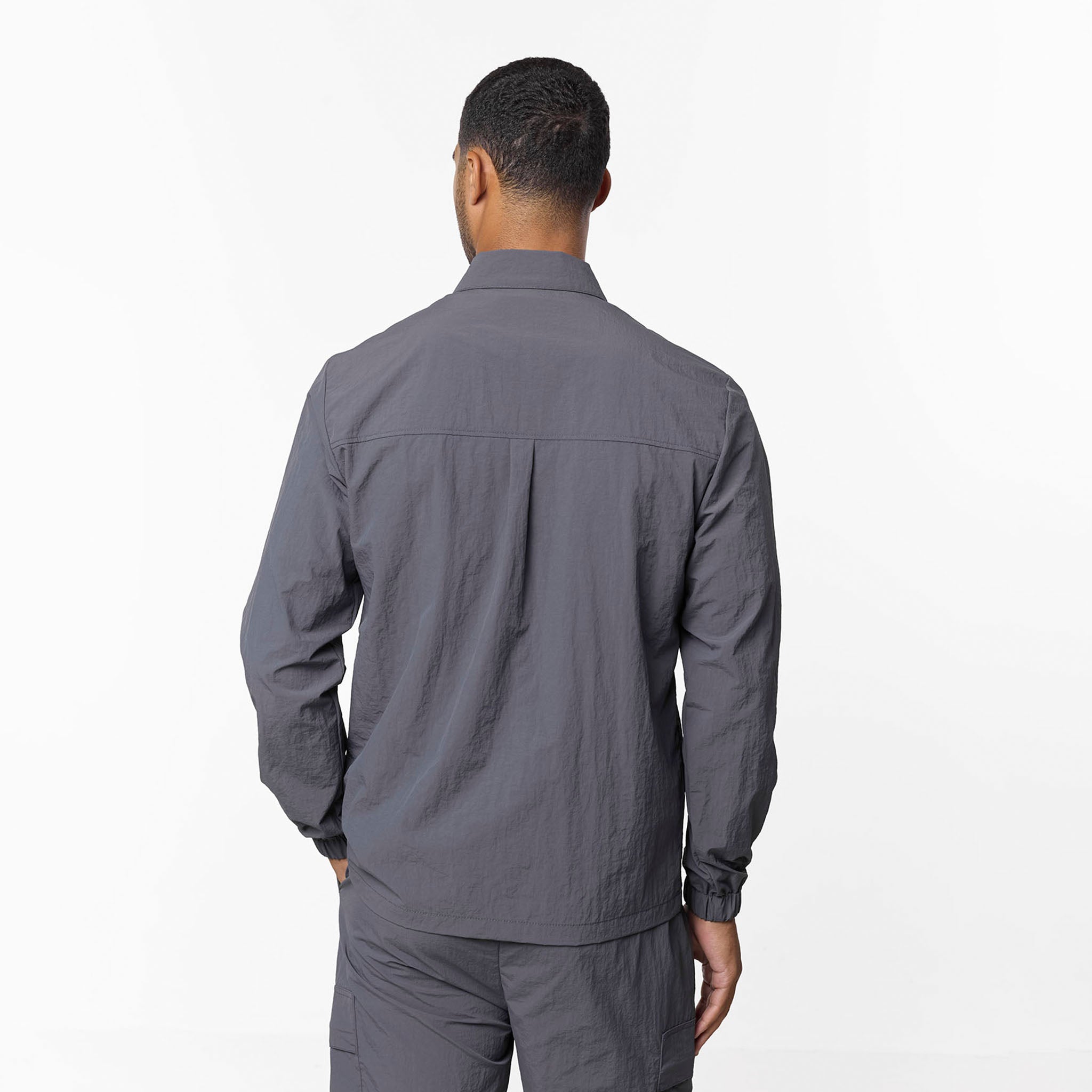 Introducing the Crinkle Nylon Tech Overshirt. This versatile overshirt features a relaxed fit and a distinctive crinkle nylon design that adds a unique texture and dimension. Crafted from 100% nylon, this lightweight overshirt is both durable and breathable, making it perfect for layering during transitional seasons.