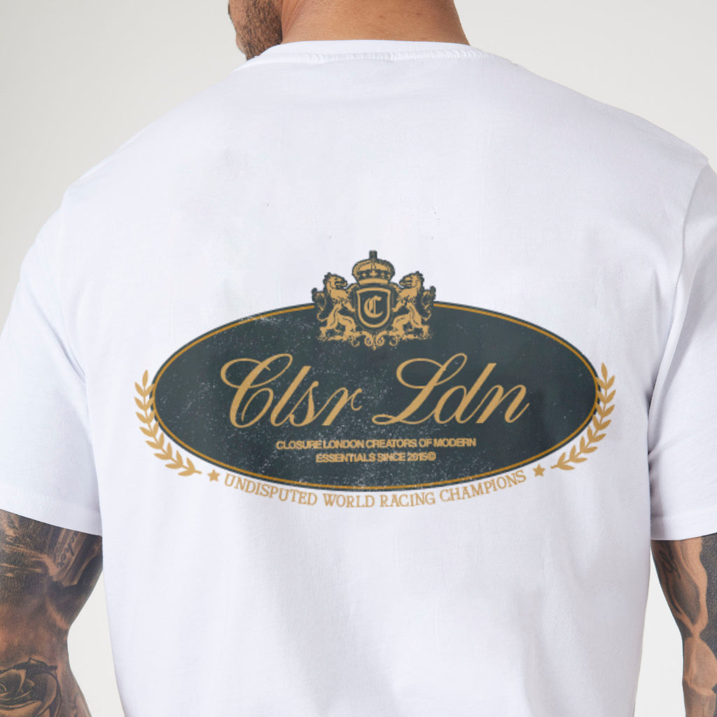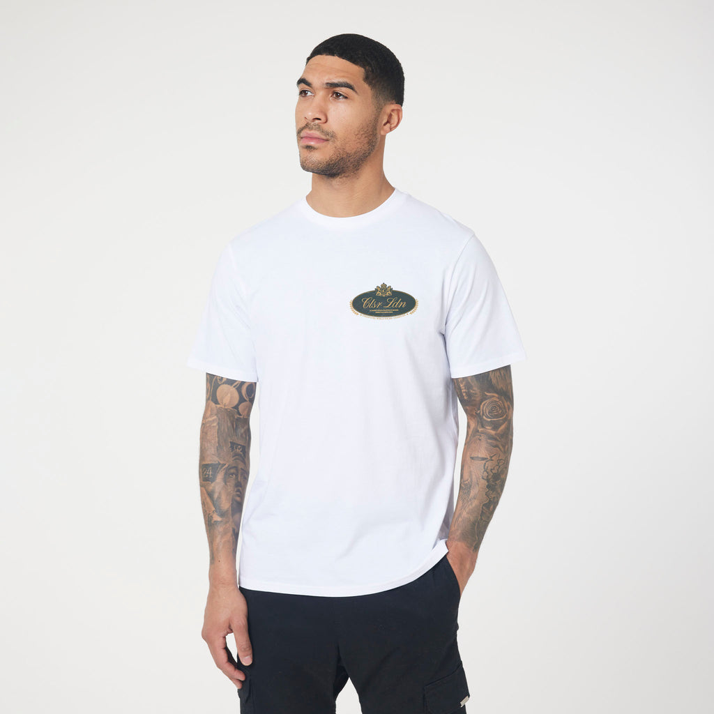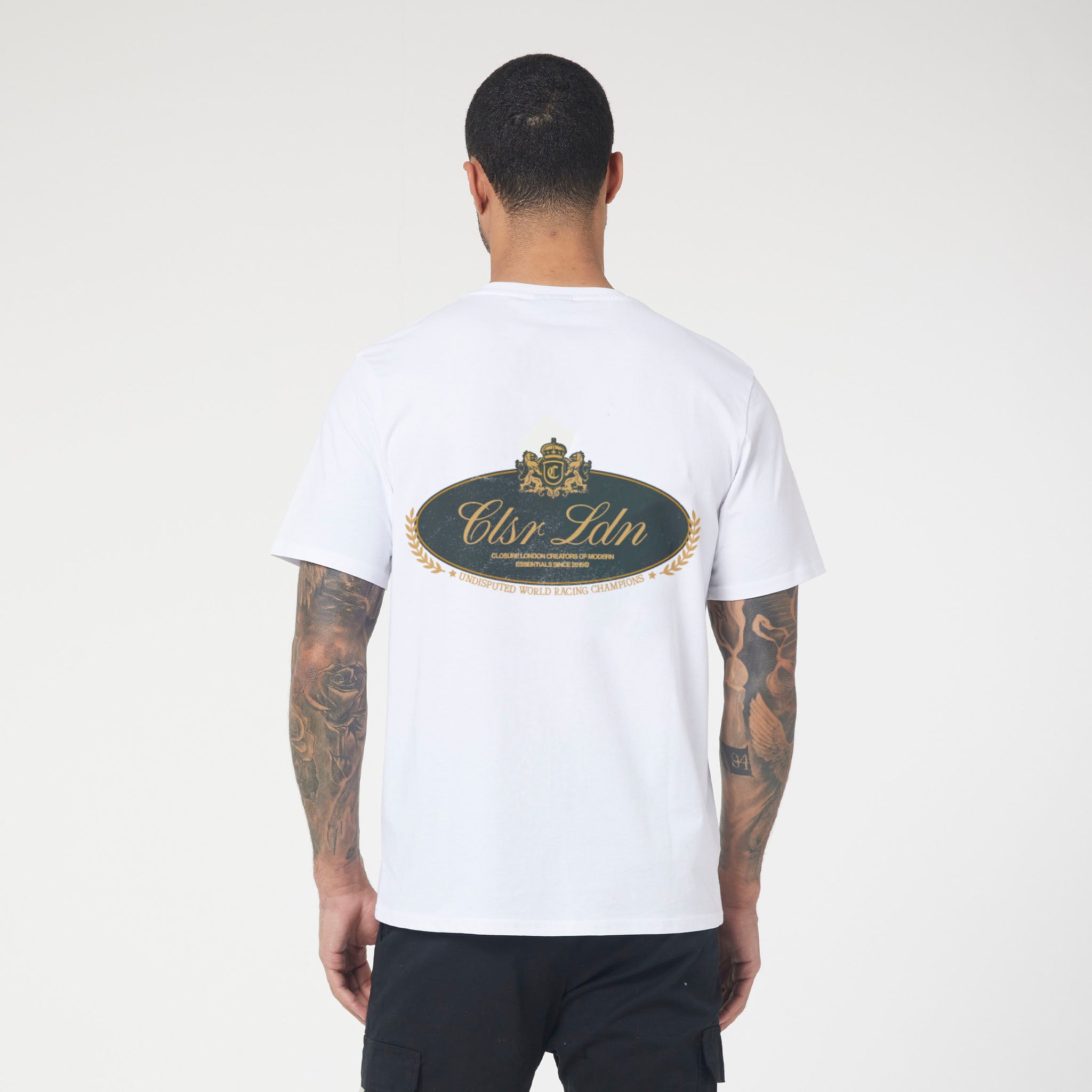 Discover elevated style made effortless with our Premium Oval T-Shirt in crisp white. This tee truly stands out, featuring a striking oval vintage design with a graphic and logo boldly displayed on both the front and back. It's built for ultimate comfort and a sharp finish, making it an indispensable addition to any wardrobe. Its timeless appeal and versatile white mean it's ready for anything – perfect with your favourite jeans and trainers for a laid-back vibe, or dressed up effortlessly with chinos for a more refined casual ensemble.