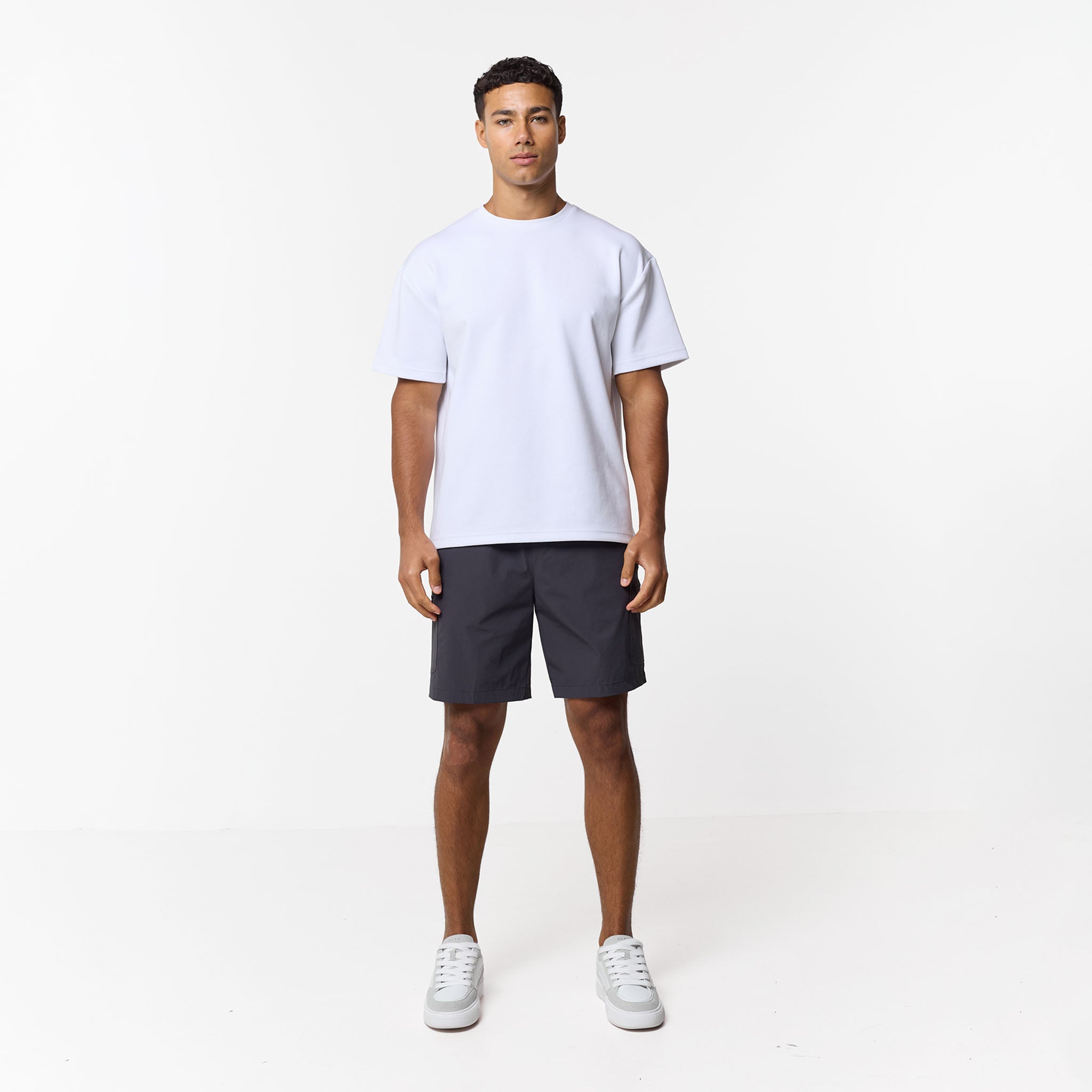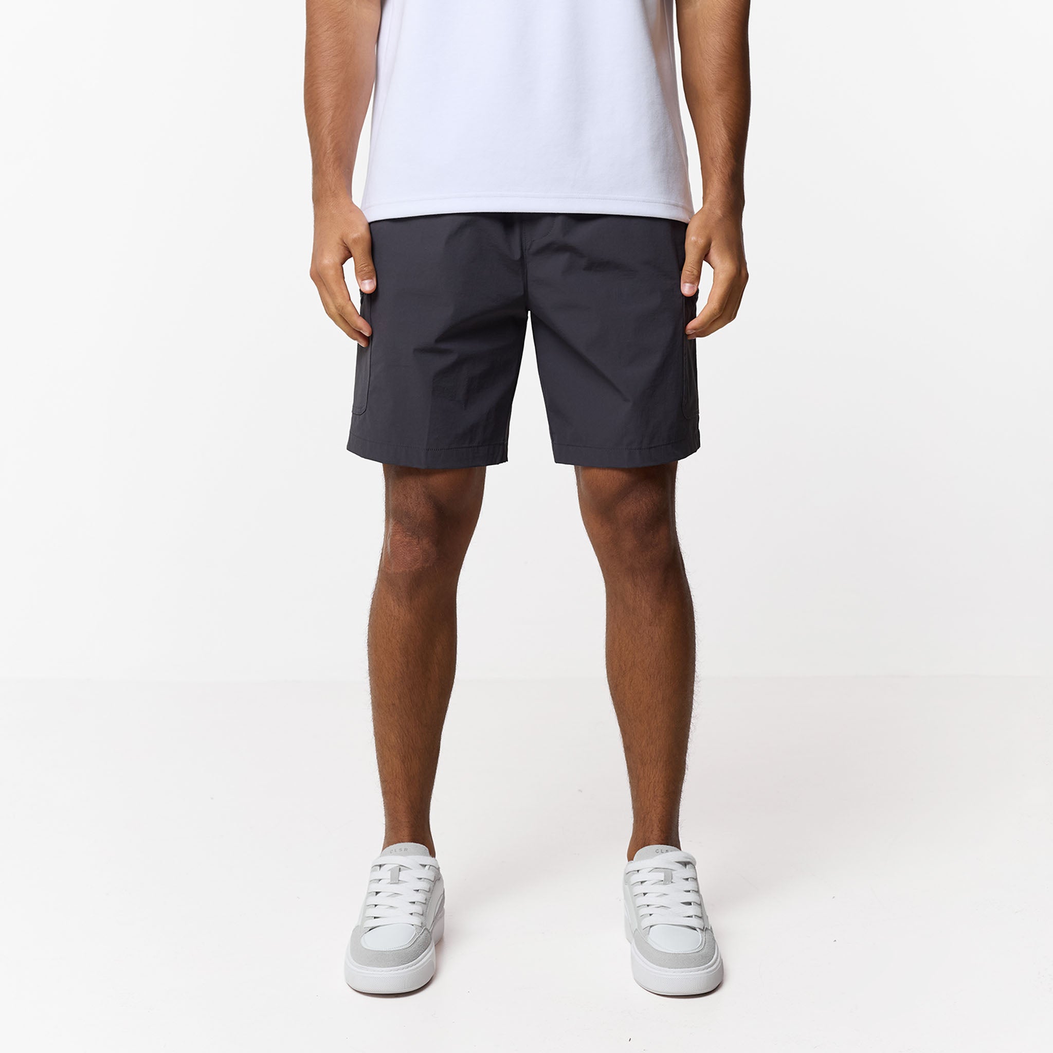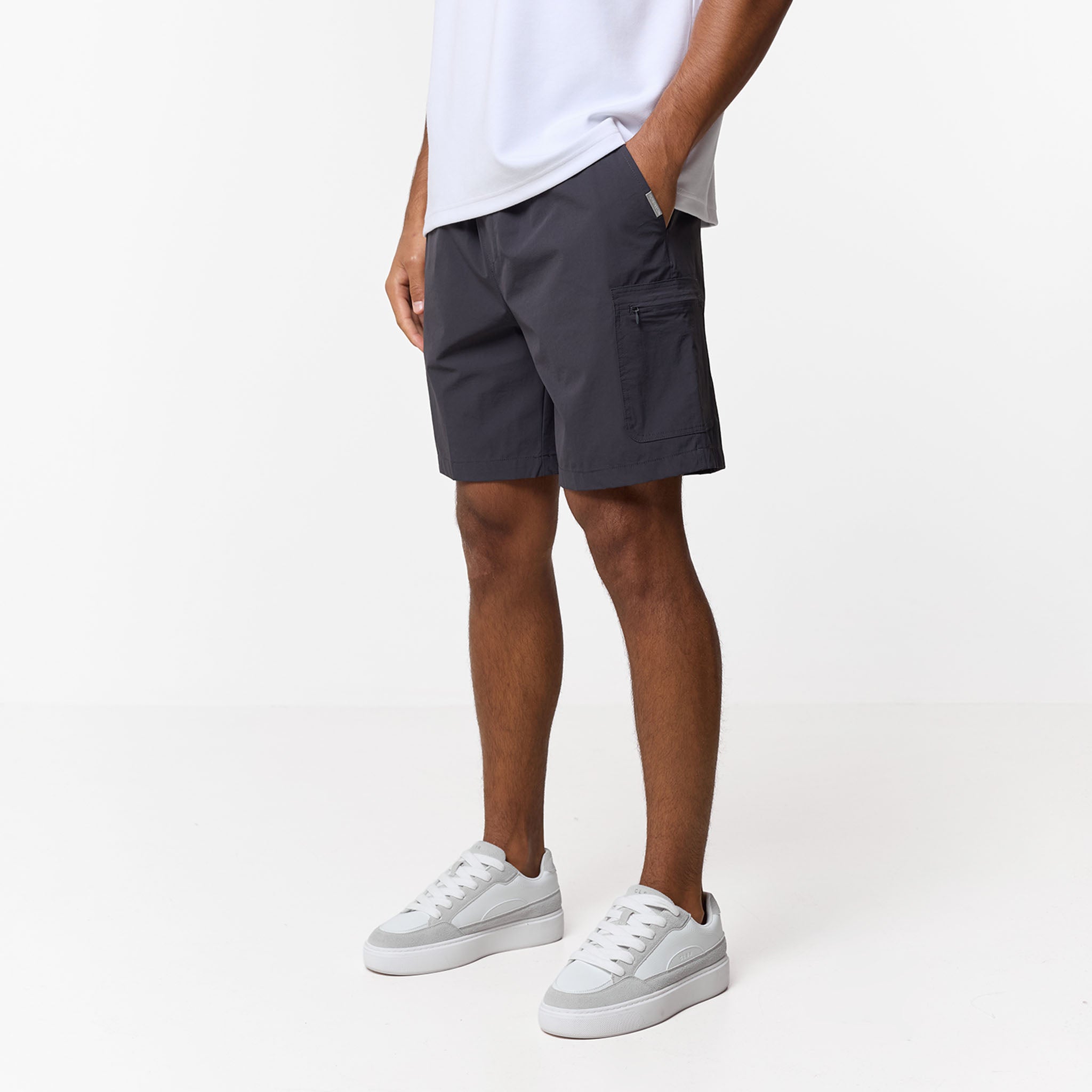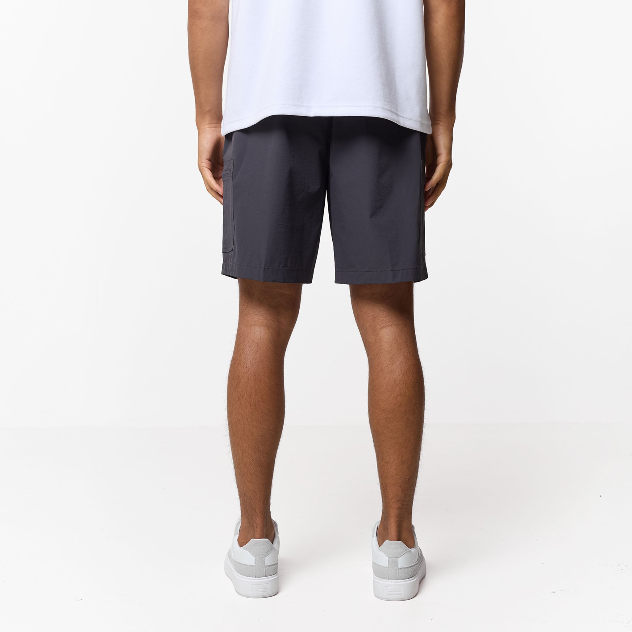 Introducing the new season Charcoal Premium Tech Cargo Shorts, a high-performance essential designed to bridge the gap between tactical functionality and wearable style. These versatile charcoal shorts feature an adaptable internal waistband with integrated eyelets and drawcords for a bespoke fit, while the faux fly stitching and clean self-turn hem provide a sharp, tailored profile. The design includes deep slanted side pockets accented by our signature Closure London metal hardware, alongside lower-leg utility compartments featuring jetted reverse nylon coil zips and ergonomic teardrop pulls for secure, weatherproof storage. To achieve an effortless contemporary look, layer these technical cargos with a premium essential t-shirt and classic low-profile skate shoes, creating a balanced silhouette that thrives in any environment.
