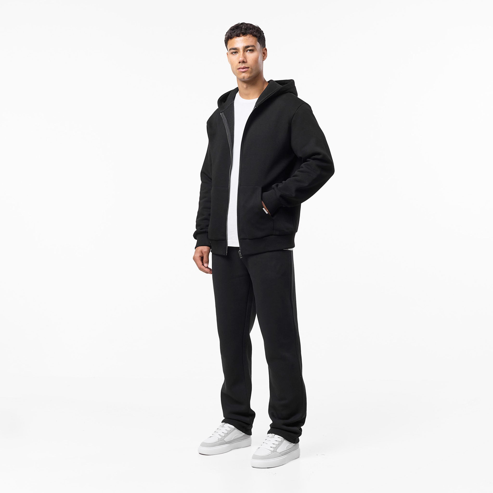Relaxed Fit FZ Open Hem Tracksuit | Black