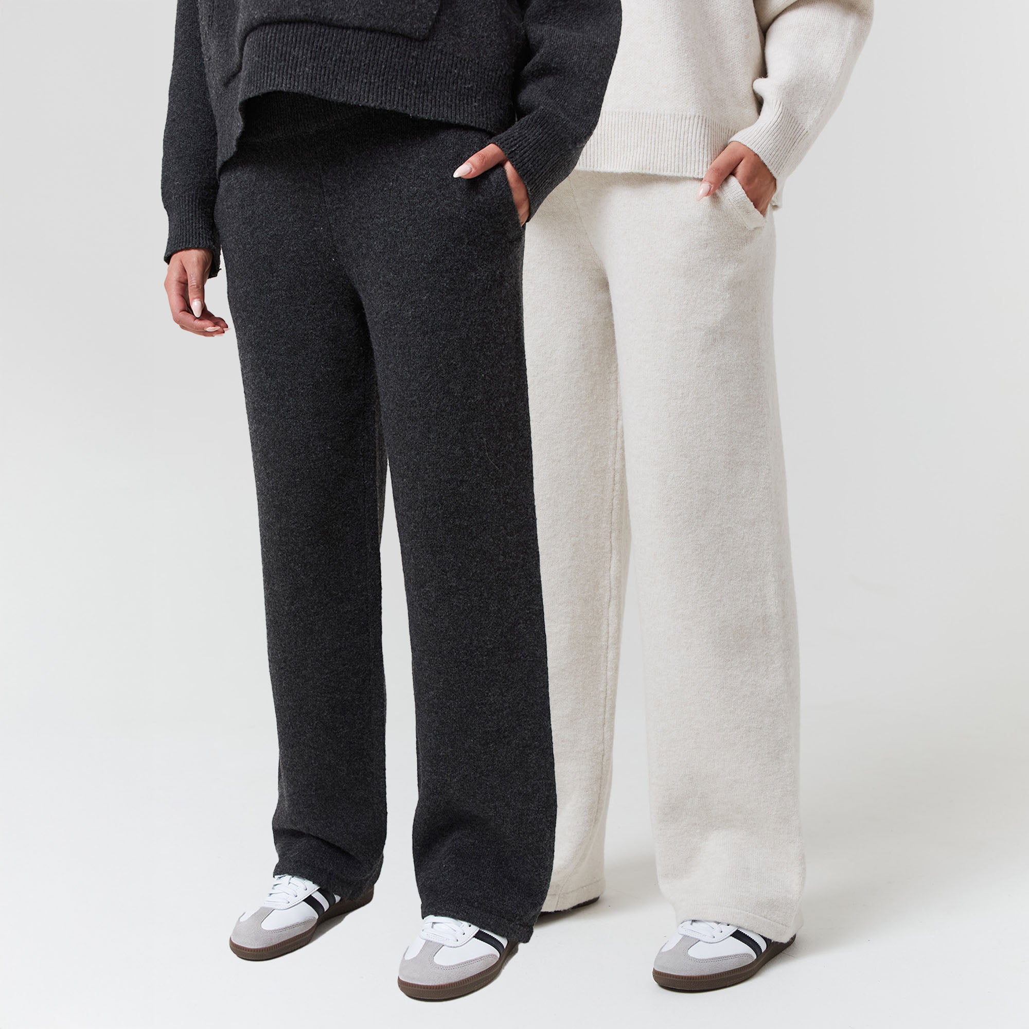 Indulge in ultimate comfort with the Soft Knit Open Hem Joggers Two-Pack. This essential duo features two versatile colours, charcoal marl and oatmeal, perfect for mixing and matching. Designed with a relaxed fit and a luxurious feel, the open hem creates a trendy, laid-back silhouette. For the complete sweatsuit look, pair them with the matching Soft Knit Hoodie.
