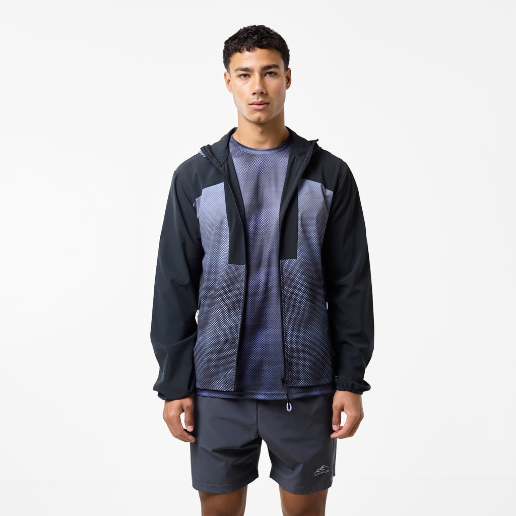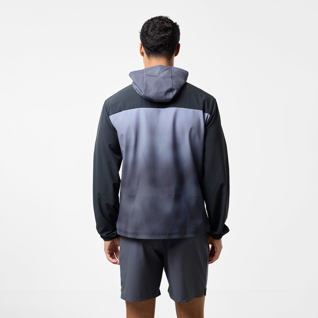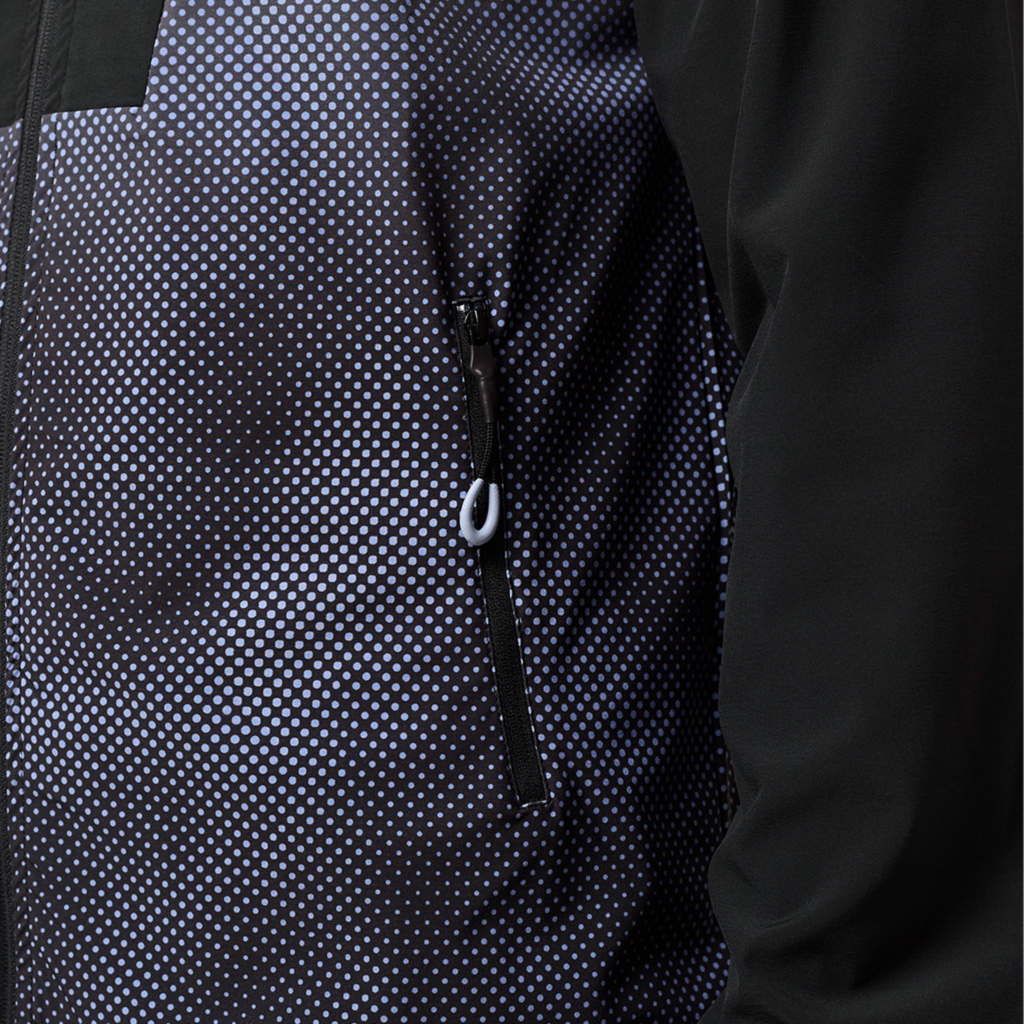 Elevate your active pursuits with the Bitmap Print Windbreaker in graphite/lilac, a sophisticated expression of performance and style. This lightweight and versatile jacket is designed to protect you from the wind and rain while keeping you looking sharp. Crafted from a durable, water-resistant fabric, it features a hood for added protection, zipped pockets with bungee pullers for secure storage, and a cut-and-sew panel for a contemporary aesthetic. The turn-up hem stitch adds a touch of refinement, while reflective branding on the chest ensures visibility in low-light conditions.