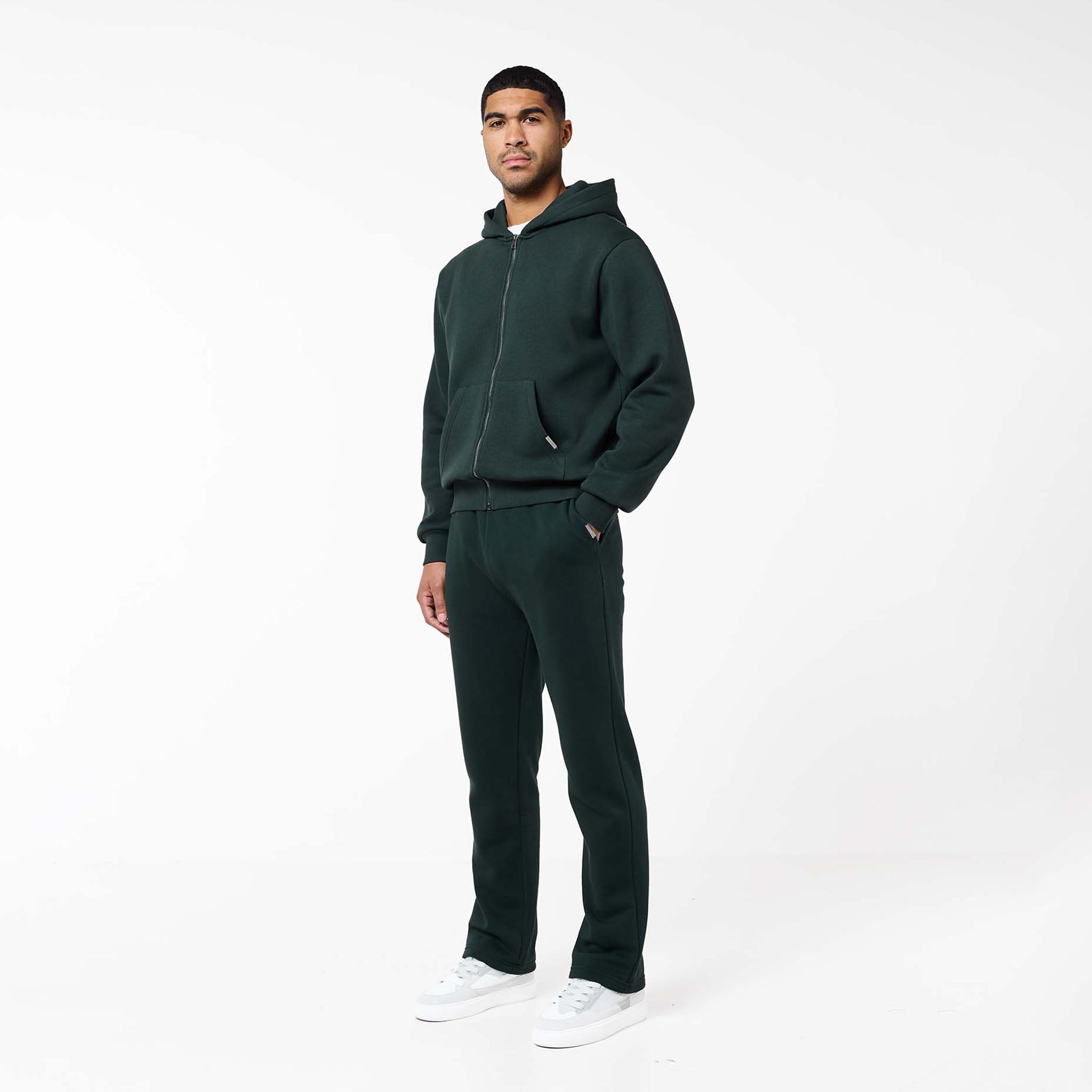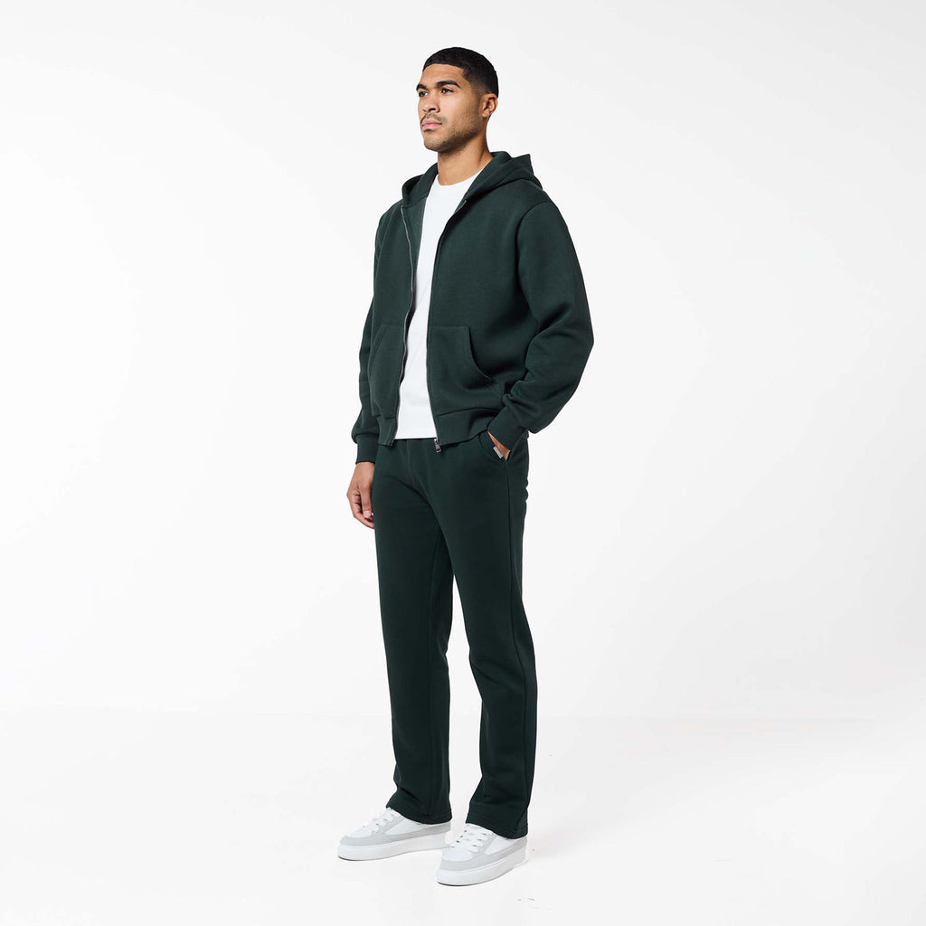 Relaxed Fit FZ Open Hem Tracksuit | Forest Green