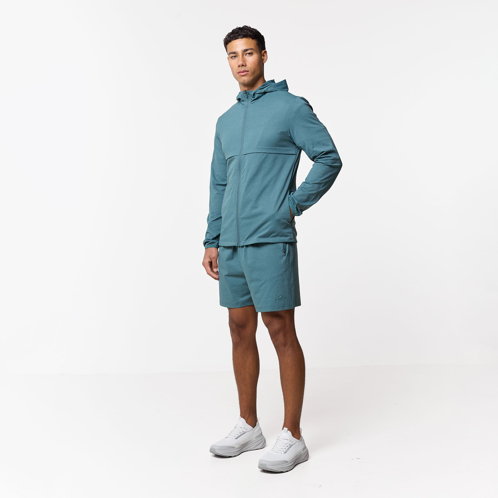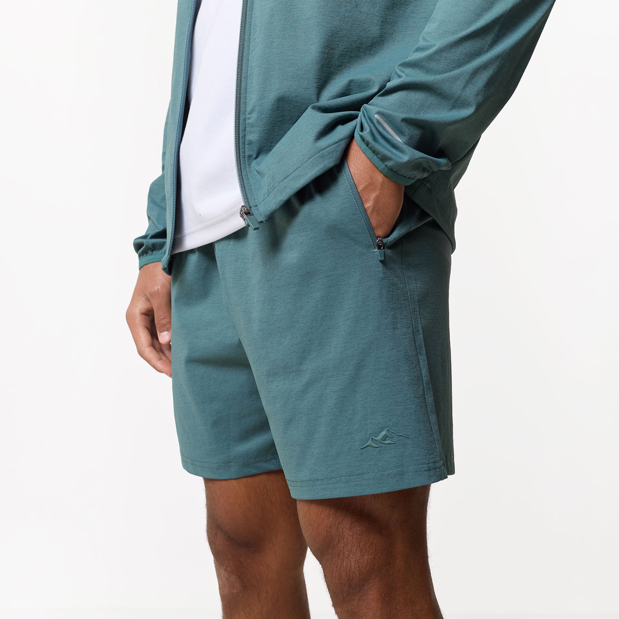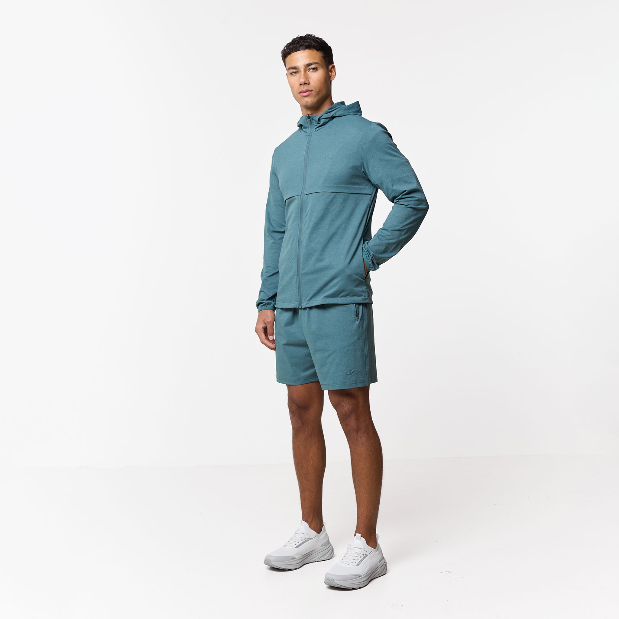 Push your training boundaries with the Endurance Shorts in a striking Teal. This new season shade delivers a bold, technical look designed for high-intensity versatility. The silhouette is built for a stable, personalised fit with a supportive elasticated waistband and internal drawcords. For maximum functionality, these shorts feature secure zip pockets and every detail is considered, from the durable twin-needle hem stitch to the signature high-build Closure branding. Create the ultimate performance look by pairing these shorts with the matching hoodie for a seamless, head-to-toe twinset.