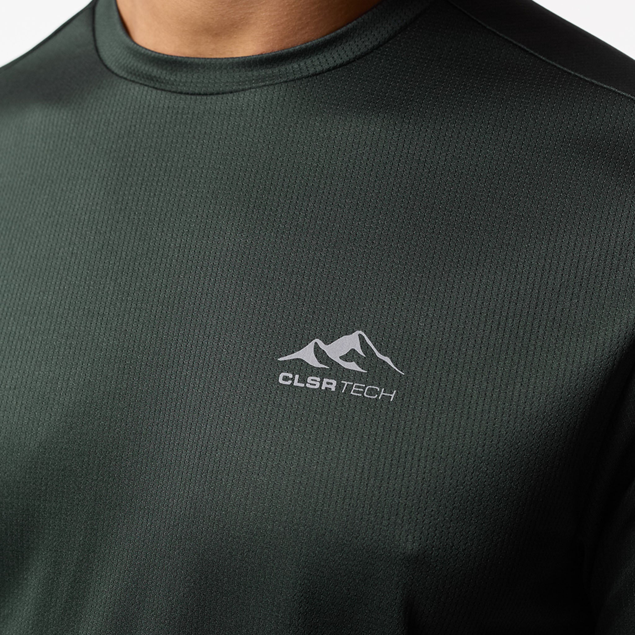 Engineered for the athlete who demands more from their basics, the Pace Performance T-Shirt in Forest Green is a high-performance essential designed to handle your most intense sessions. Crafted from a premium, lightweight poly fabric, this tee prioritises maximum breathability and air circulation to keep you cool when the heat rises. Featuring advanced moisture-wicking and quick-drying technology, it efficiently draws sweat away from the skin, ensuring you stay dry and focused from start to finish.The regular fit and classic crew neck provide a versatile, athletic silhouette that offers a natural range of motion without distraction. Finished with the signature CLSR Tech logo on the chest, this tee combines technical innovation with a clean, modern aesthetic.