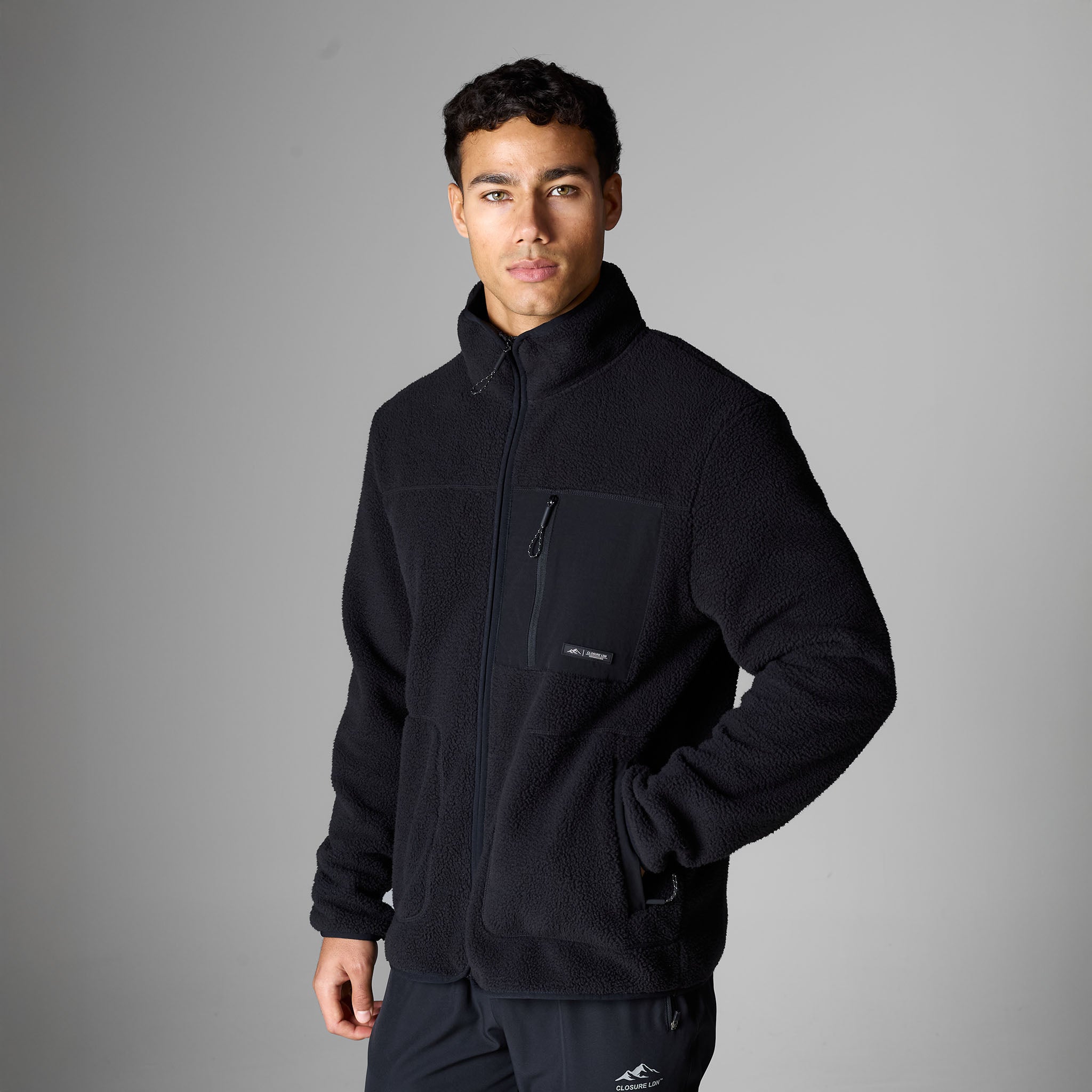 Indulge in the sophisticated comfort of the black Borg Tech Zip Through Jacket. Its sumptuously soft borg fabric provides a luxurious feel, perfectly balanced by the clean lines of its contrast standing collar and the smart detail of the overlay patch pocket with a branded badge. Essential zip welt pockets, refined elastic binding, and modern bungee zip pullers combine for an effortlessly stylish and comfortable experience.