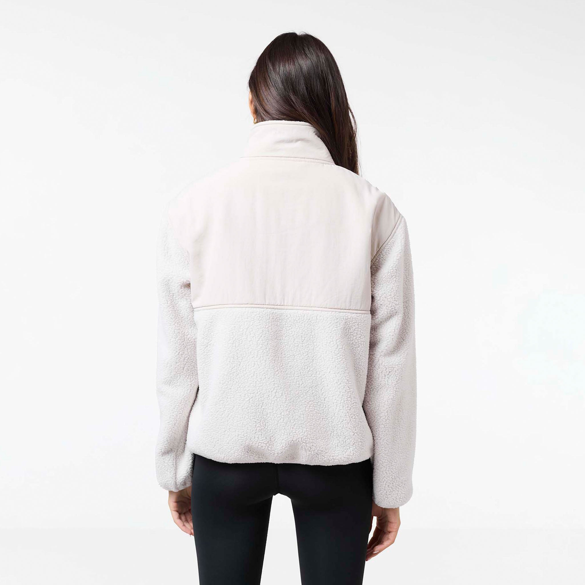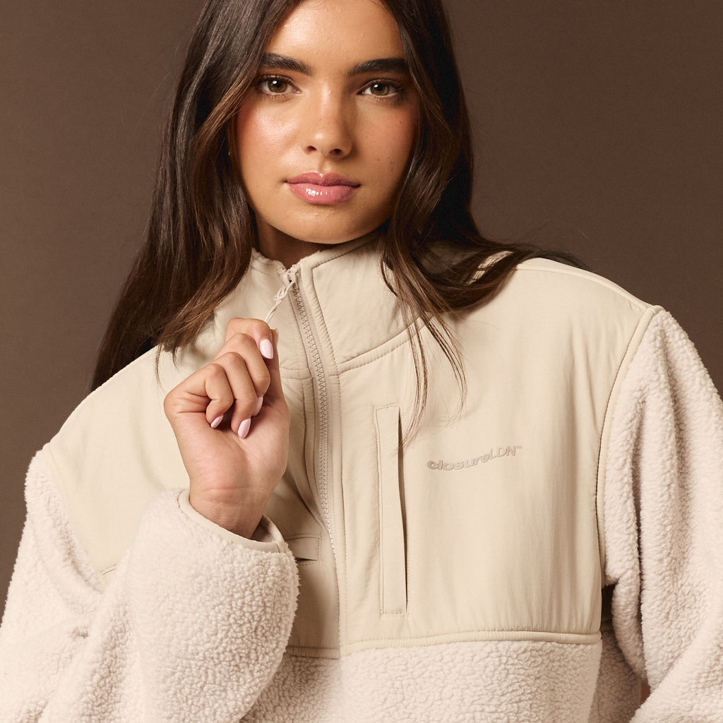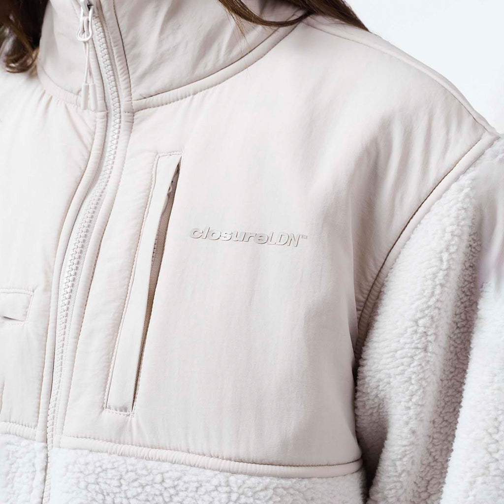 Experience style and function with the Borg Fleece Tech Jacket in a versatile stone shade. This innovative jacket combines the warmth of borg fleece with the durability of matte poly nylon for a unique look that's perfect for transitional weather. Contrast fabric panelling provides a modern aesthetic. The combination of borg fleece and matte poly nylon creates a unique textural contrast, offering both warmth and weather resistance.