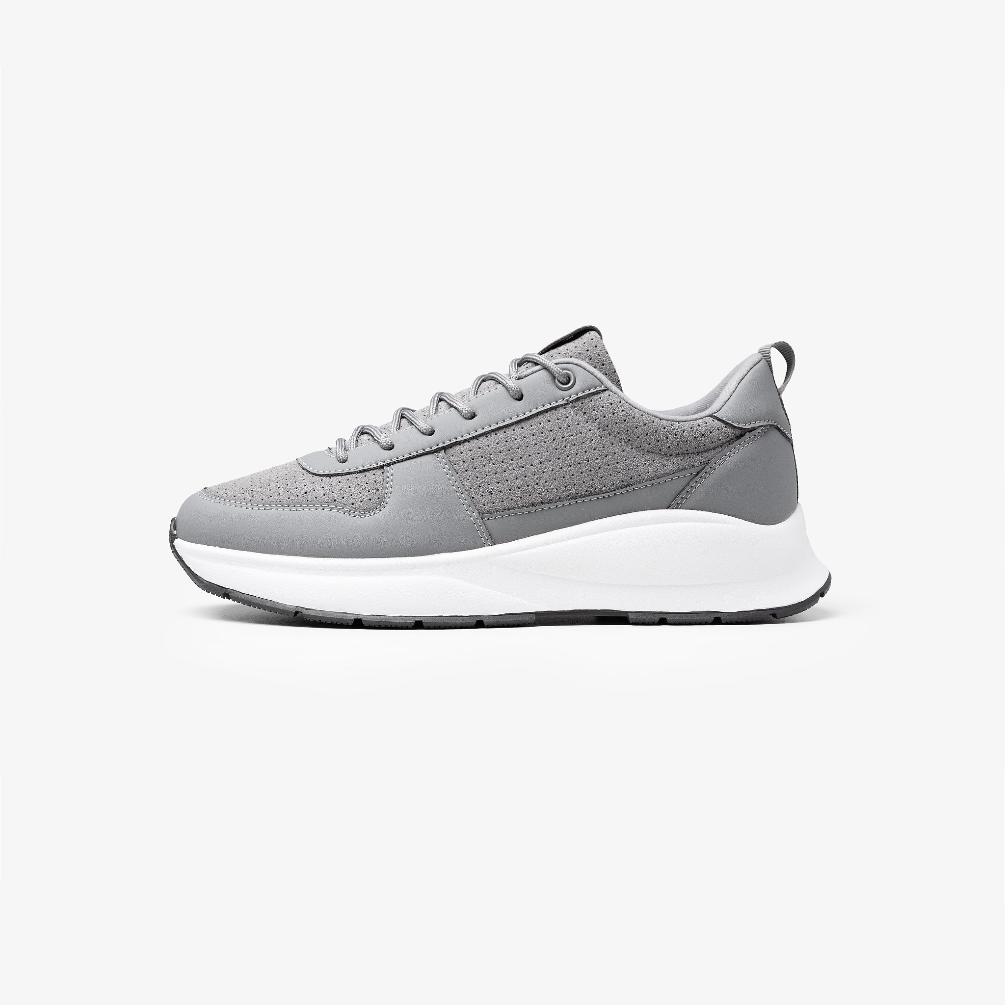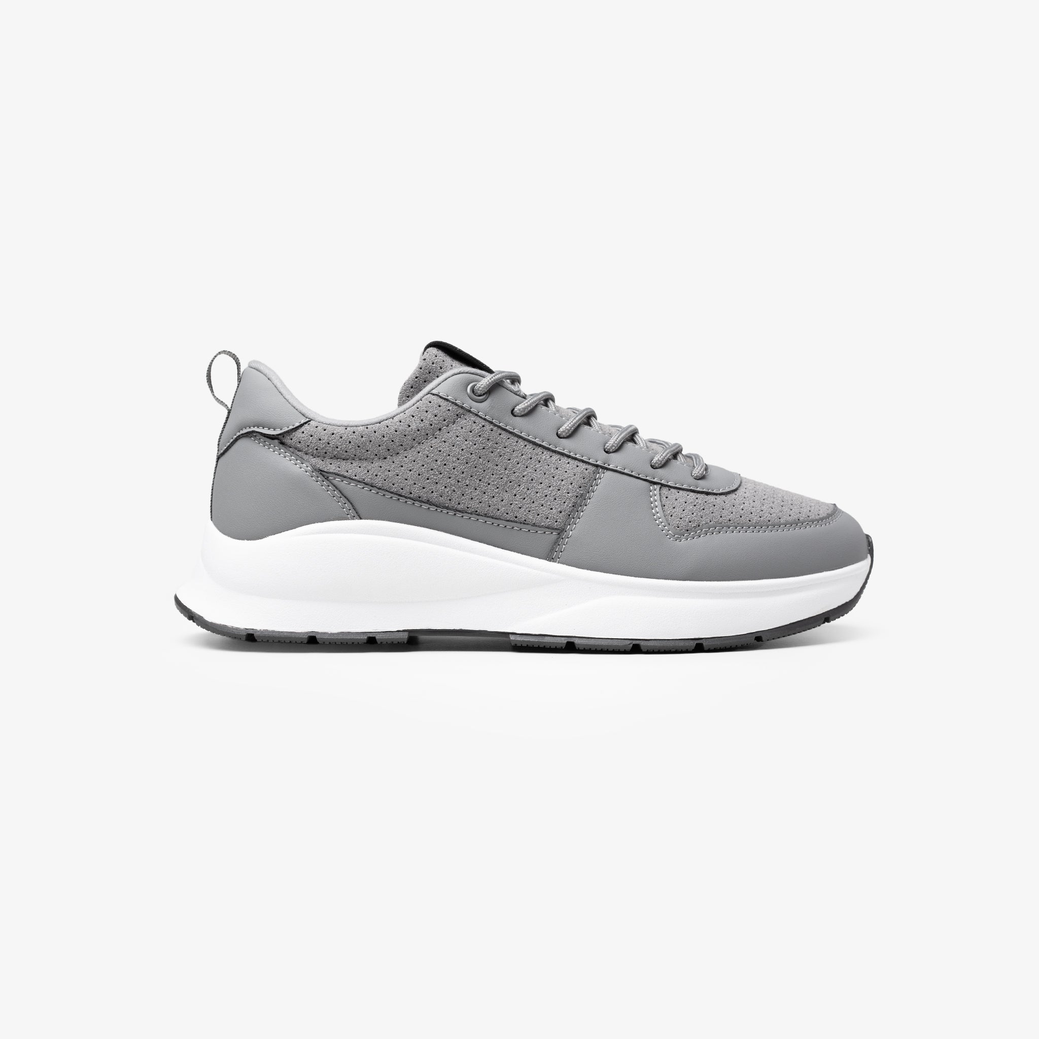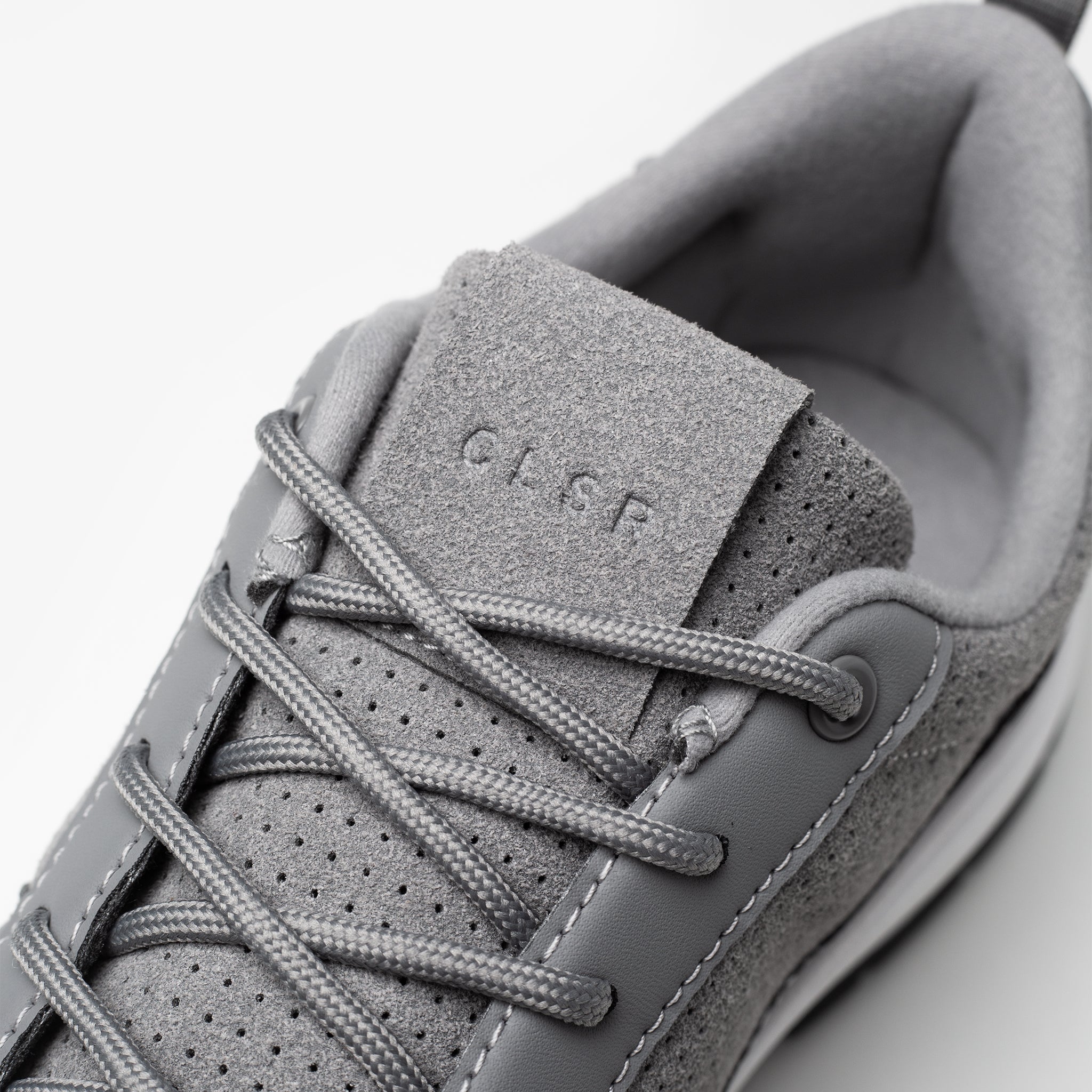 Introducing the Casual Runner in grey/white, a versatile trainer designed for your everyday style. This shoe offers a fresh take on a classic silhouette, featuring sophisticated faux leather detailing on the heel and tongue. Crafted with premium perforated suede detailing, it adds a touch of refined texture to your look. Our debossed signature Closure logo subtly graces the tongue, highlighting its quality. With lace-up fastening for a secure fit and Insole Closure LDN branding for an elevated internal finish, The Casual Runner is the perfect choice for effortlessly completing any relaxed or smart-casual outfit.