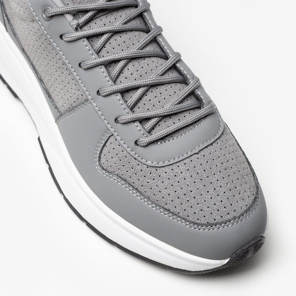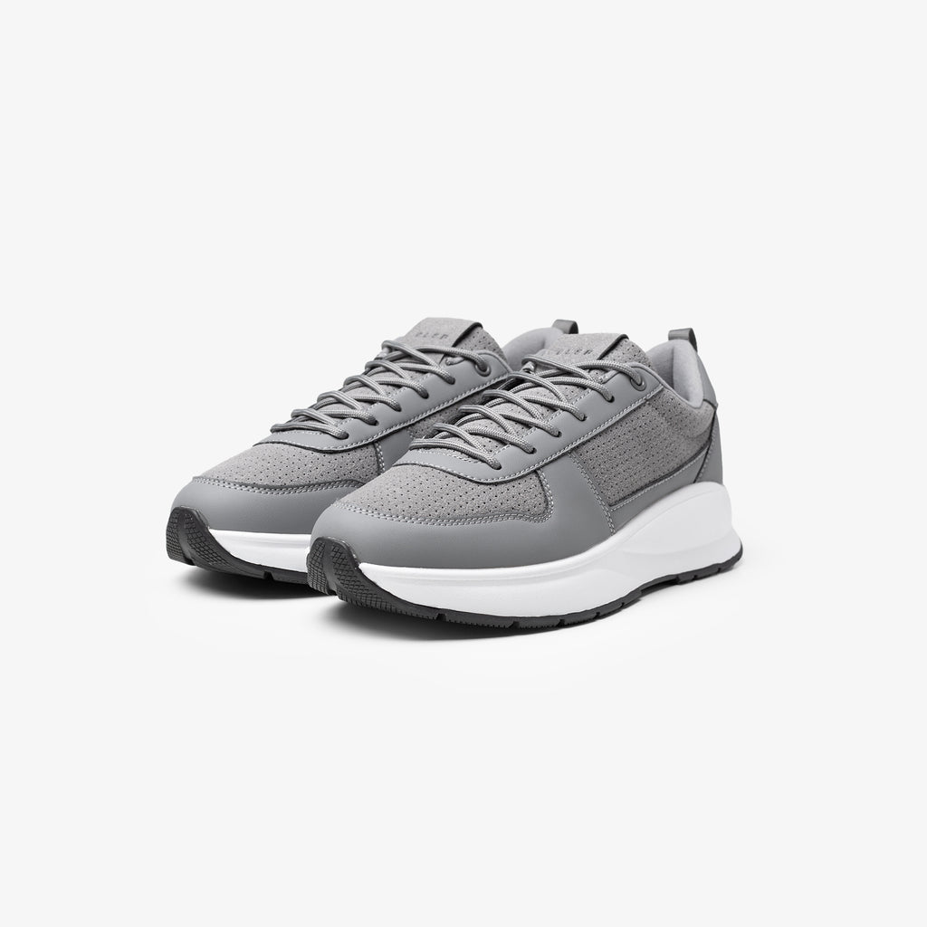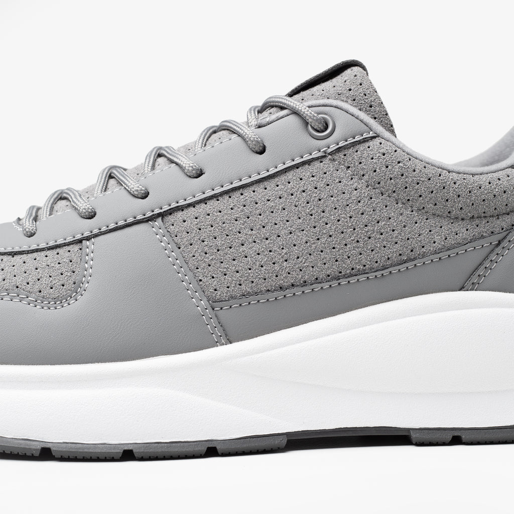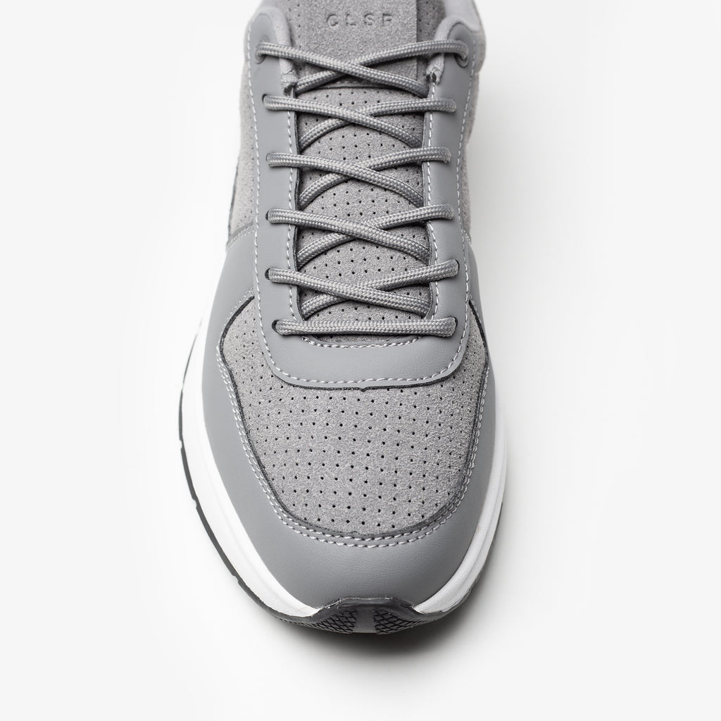 Introducing the Casual Runner in grey/white, a versatile trainer designed for your everyday style. This shoe offers a fresh take on a classic silhouette, featuring sophisticated faux leather detailing on the heel and tongue. Crafted with premium perforated suede detailing, it adds a touch of refined texture to your look. Our debossed signature Closure logo subtly graces the tongue, highlighting its quality. With lace-up fastening for a secure fit and Insole Closure LDN branding for an elevated internal finish, The Casual Runner is the perfect choice for effortlessly completing any relaxed or smart-casual outfit.